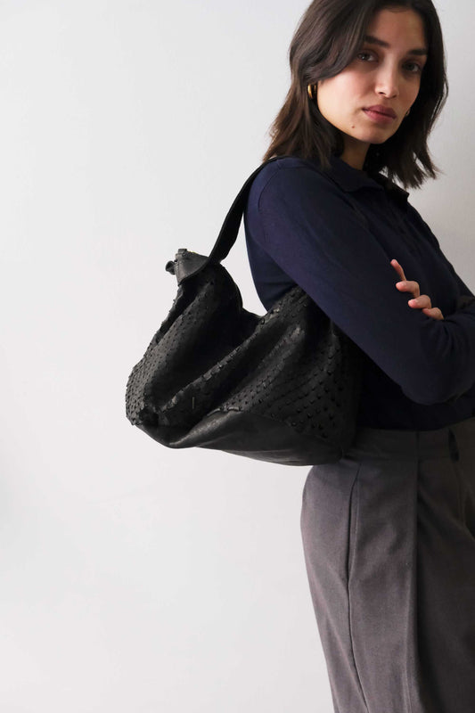 Riri tote bag in soft nappa lomé black - Made in Italy -