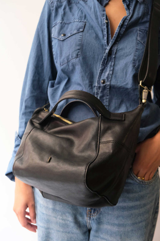 Chicca Media hobo bag in black nappa vegetable leather - Made in Italy -