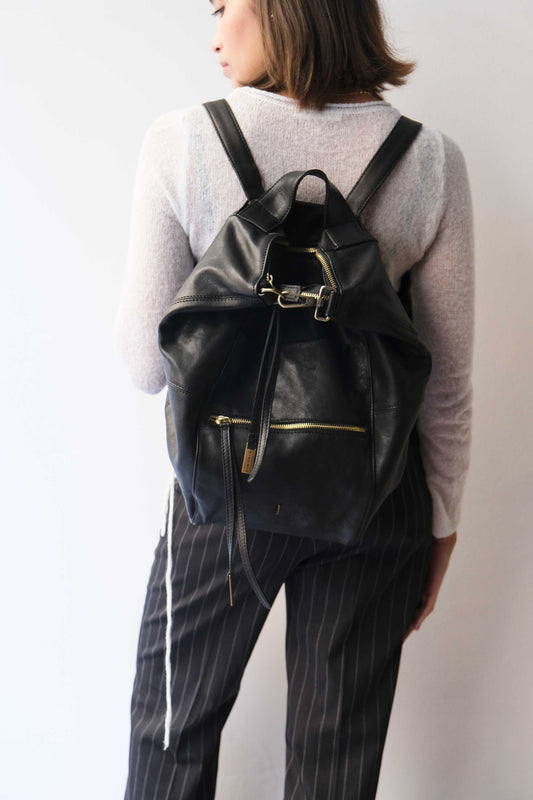 Vicky backpack in black vegetable-tanned nappa leather, - Made in Italy -