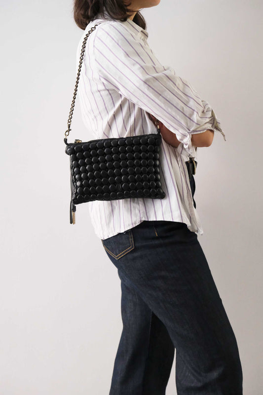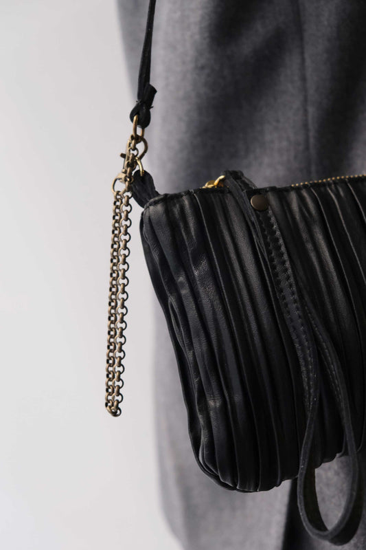 Tina pochette in black pleated leather - Made in Italy -