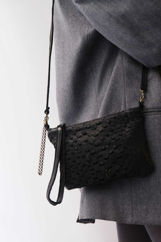 Tina pochette in black perforated leather - Made in Italy -