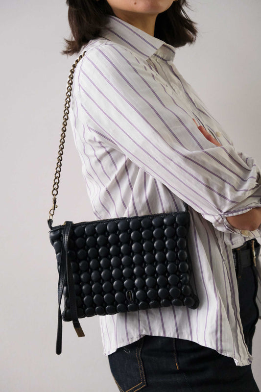 Mikin in pleated bubble black soft leather - Made in Italy -
