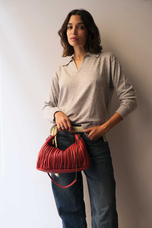 PRE ORDER discount 15%- Mikin pochette in red pleated leather - use code PREORDER15 - ESTIMATED DELIVERY END SEPTEMBER - Made in Italy -