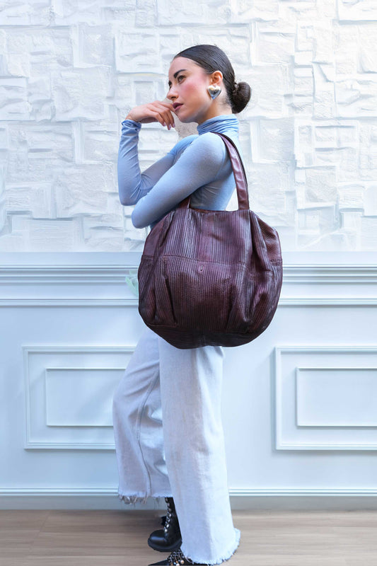 Riri tote bag in soft nappa lomé plum - Made in Italy -