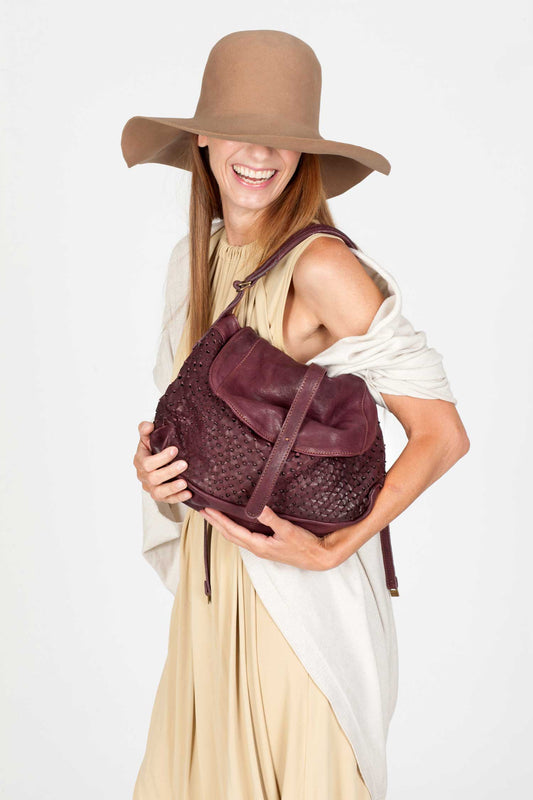 Do saddle bag in plum perforated leather - Made in Italy -