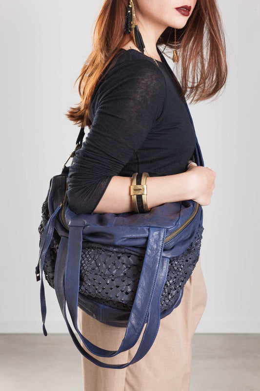 Riri tote bag cobalto in perforated leather - Made in Italy -