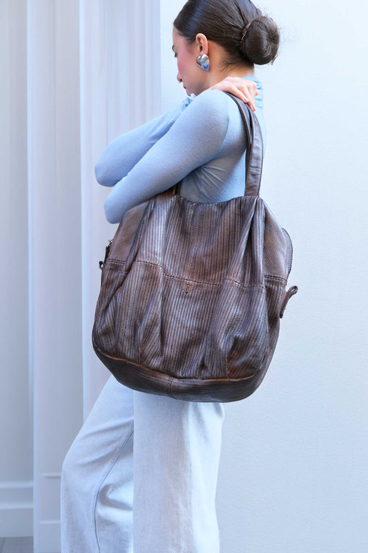 Riri tote bag in caffè turner calf soft leather - Made in Italy -