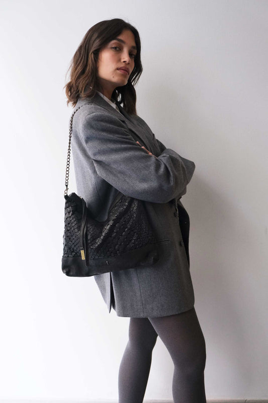 Mikin in pleated bubble black soft leather - Made in Italy -