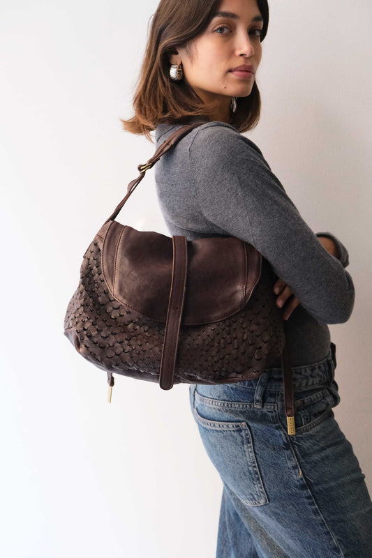 Do borsa a spalla in pelle moro traforata - Made in Italy -