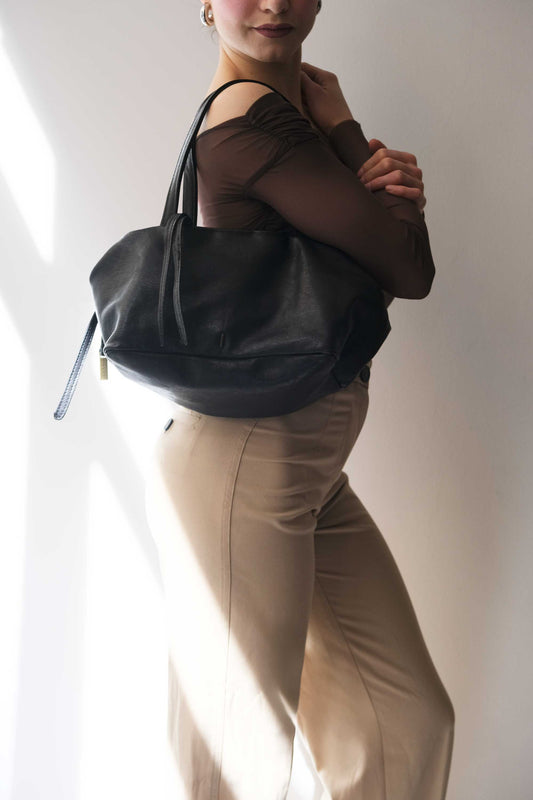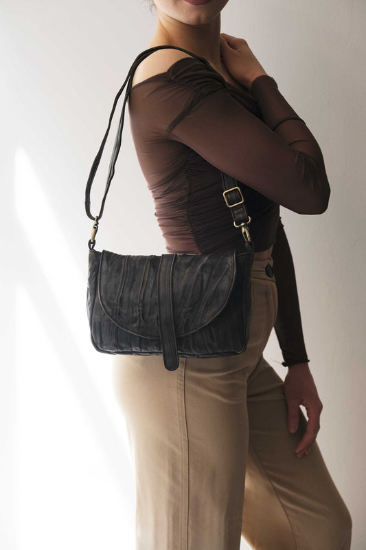 LAUNCH PRICE €306 UNTIL APRIL 30 - Maribè in black nappa vegetable leather - Made in Italy -