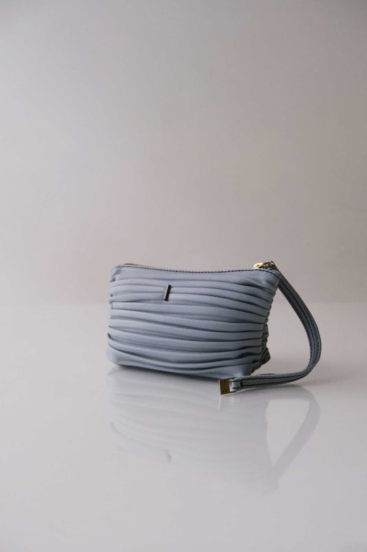 Dream stretch pochette in sky blue pleated leather - Made in Italy -