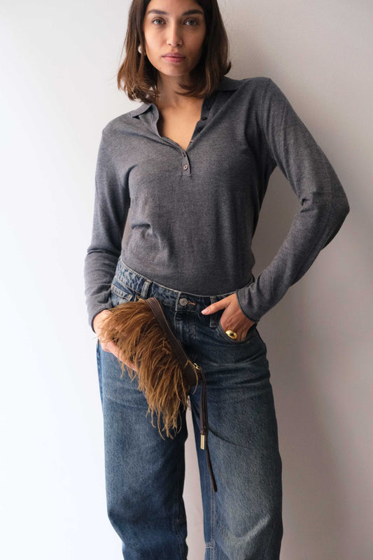 Olga pochette in nappa marrone con piume di muschio - Made in Italy -