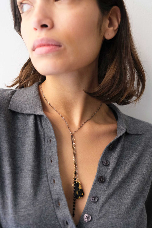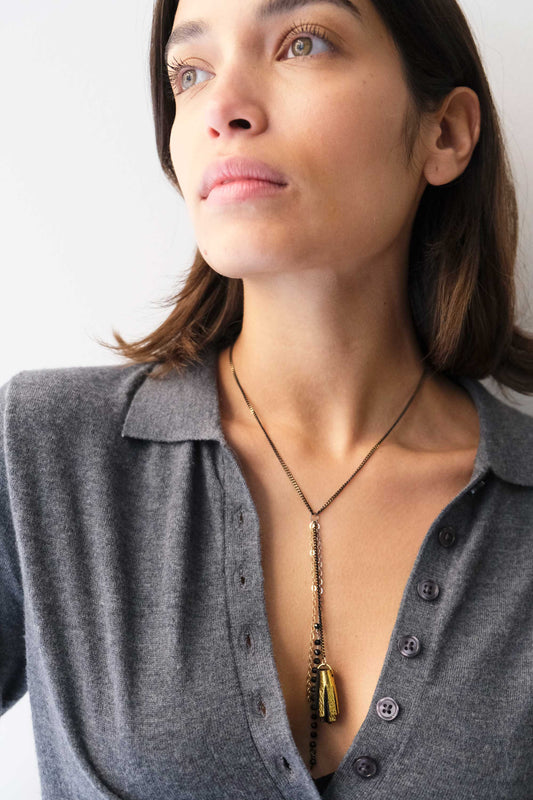 Afrodite micro collana in pelle nero e oro - Made in Italy -