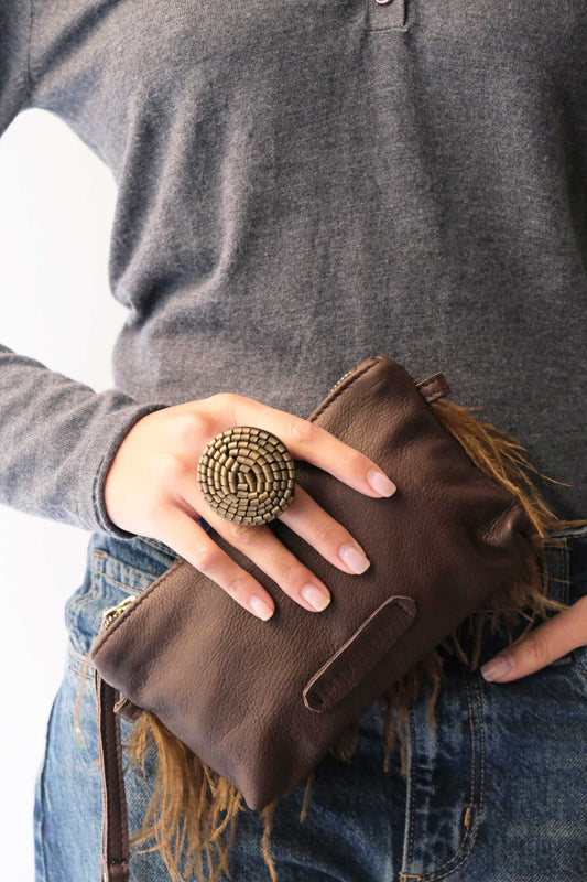 Gabrielle anello in pelle oro scuro - Made in Italy -