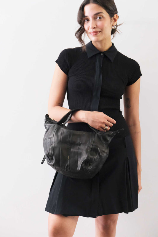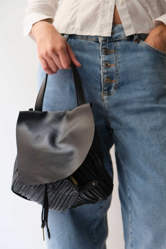 PREORDINE sconto 15% - Minu in pelle plissettata colore nero - usa il codice PREORDER15 - LA CONSEGNA E' STIMATA 30 GIORNI DALL'ORDINE- Made in Italy -