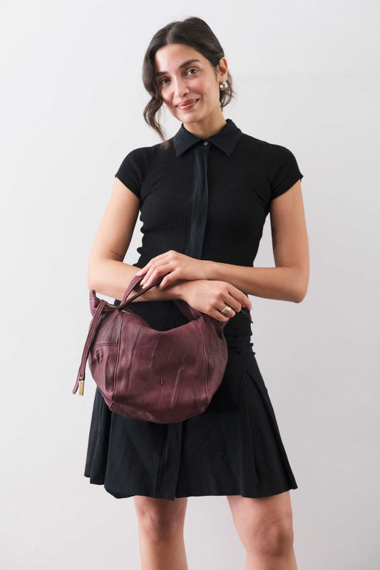PREORDINE sconto 15% - Minu in pelle plissettata colore prugna - usa il codice PREORDER15 -LA CONSEGNA E' STIMATA 30 GIORNI DALL'ORDINE- Made in Italy -