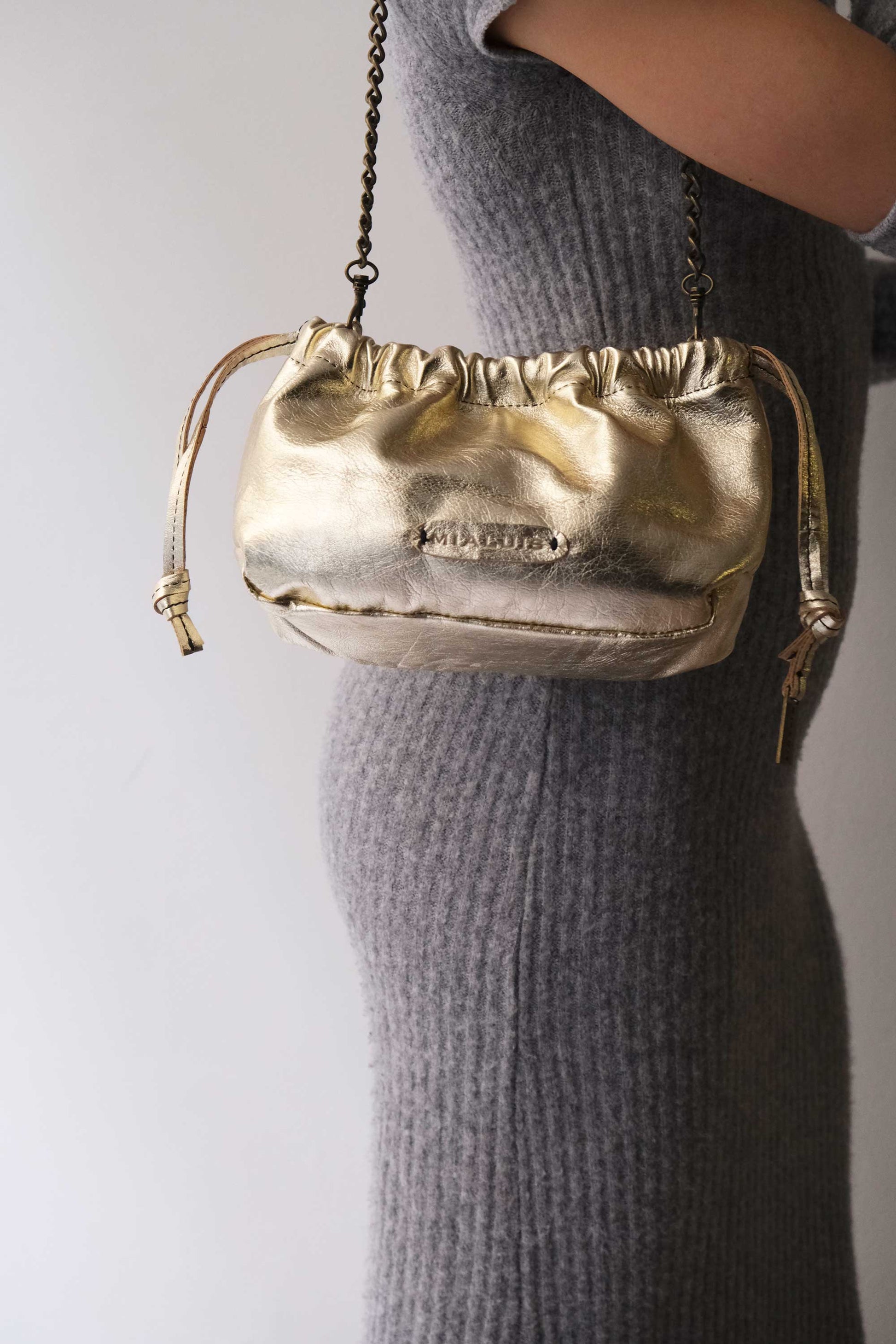 Agnes Mini in gold laminated calf leather – Made in Italy -