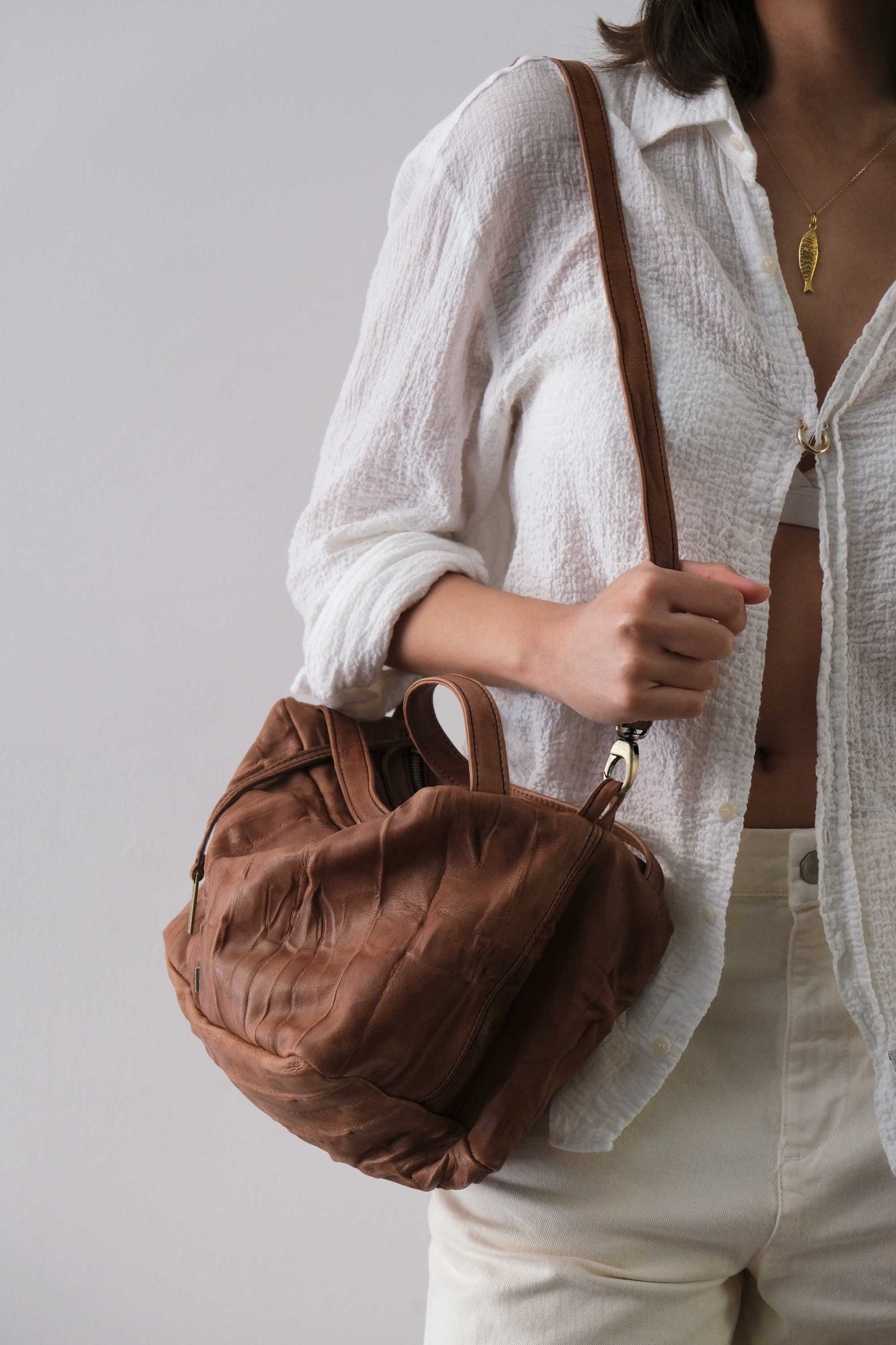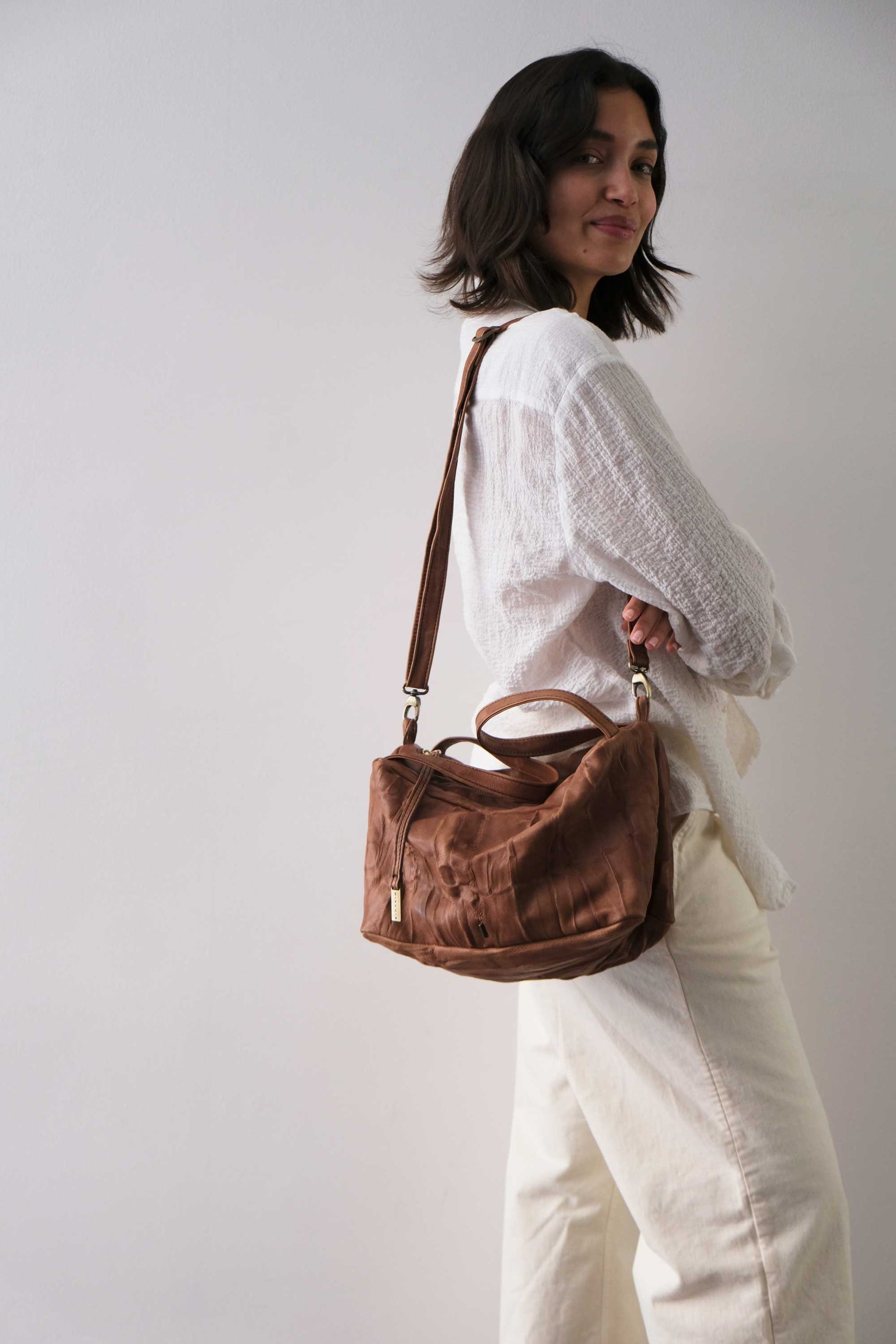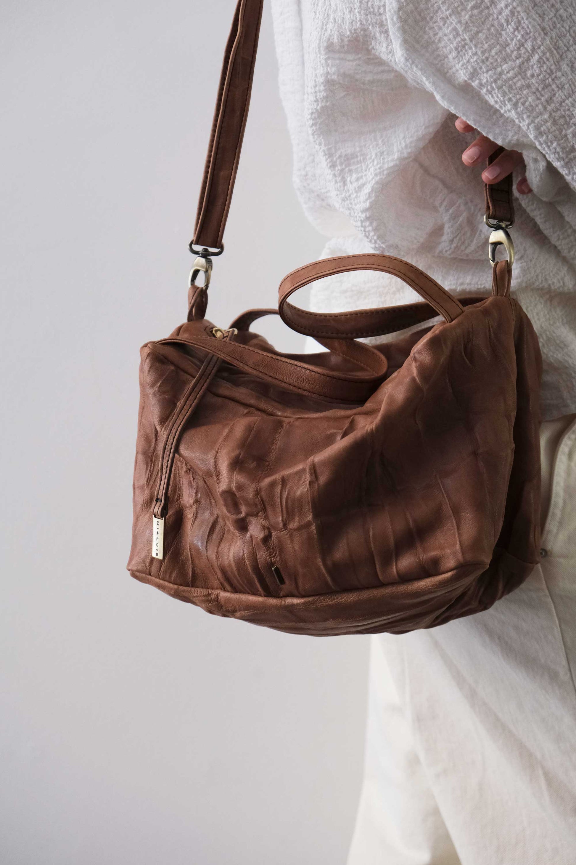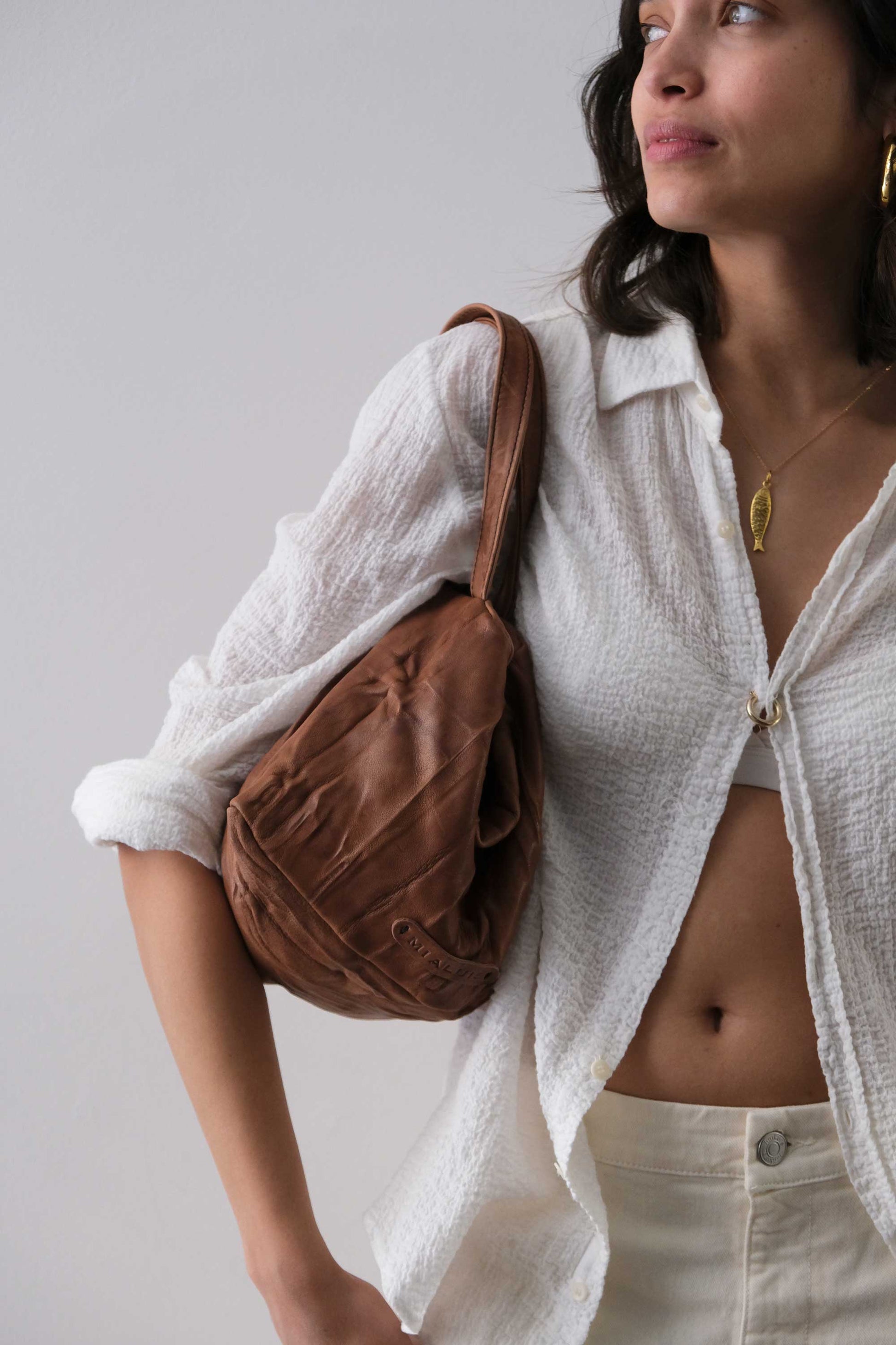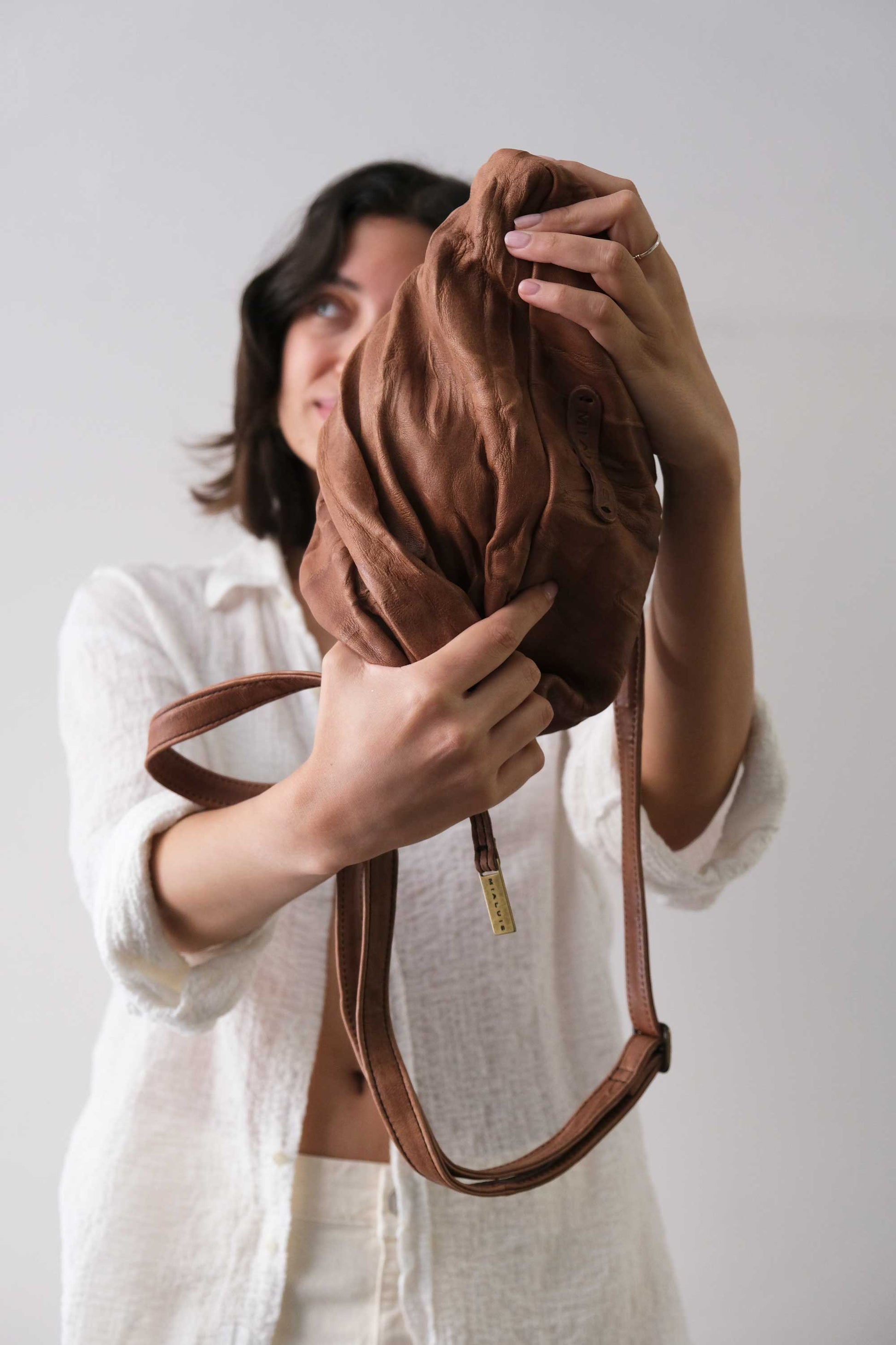 Bobo a tracolla cioccolato in morbida nappa lomè - Made in Italy -