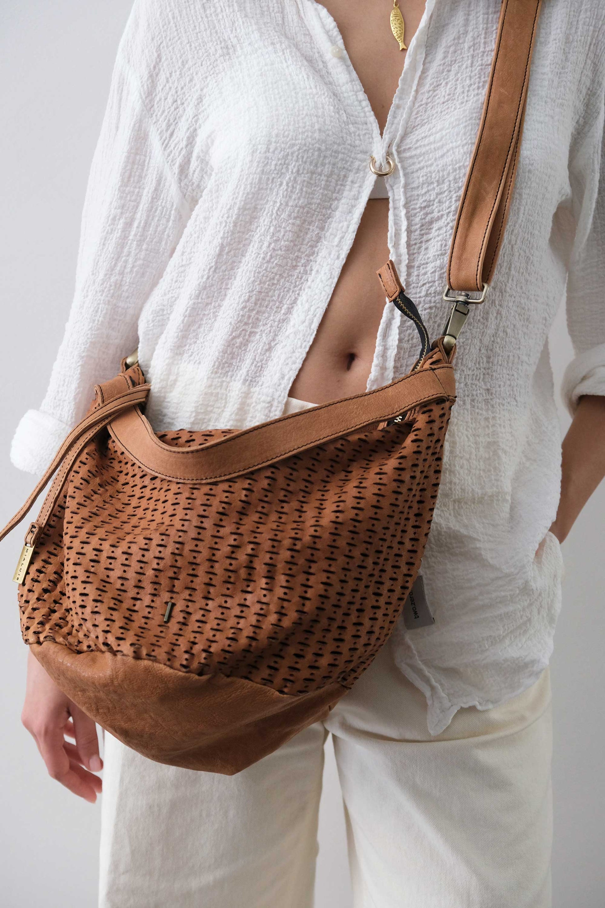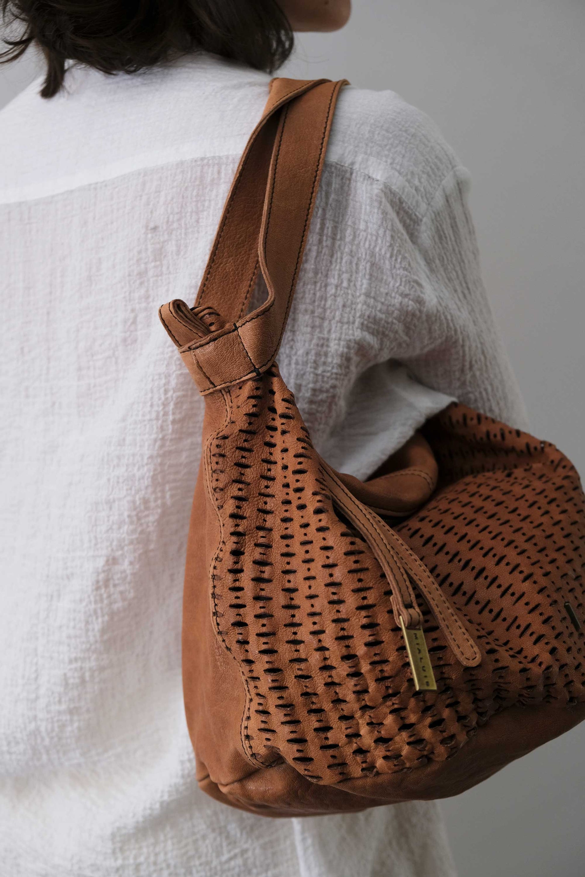 Carola bag cognac in morbida nappa traforata giunco - Made in Italy -