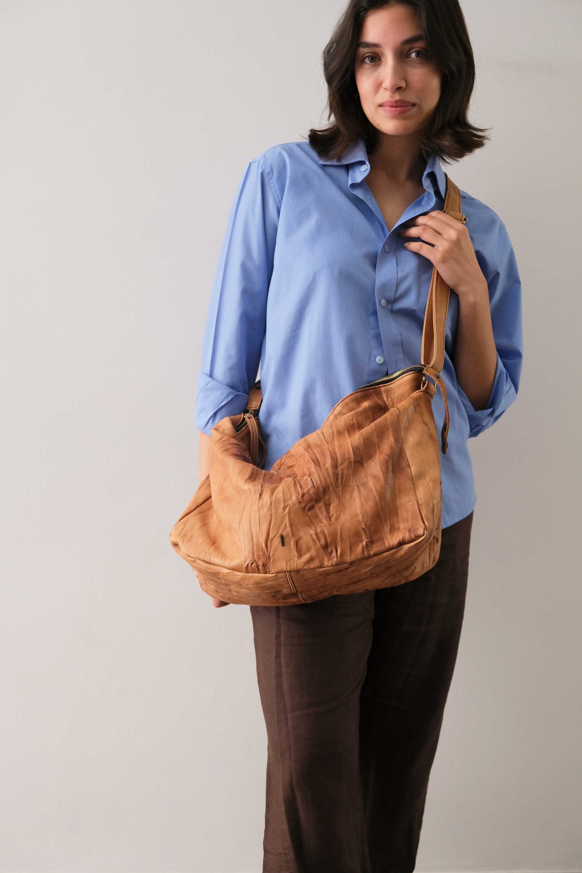 Chicca hobo bag in morbida nappa lomé cognac - Made in Italy -