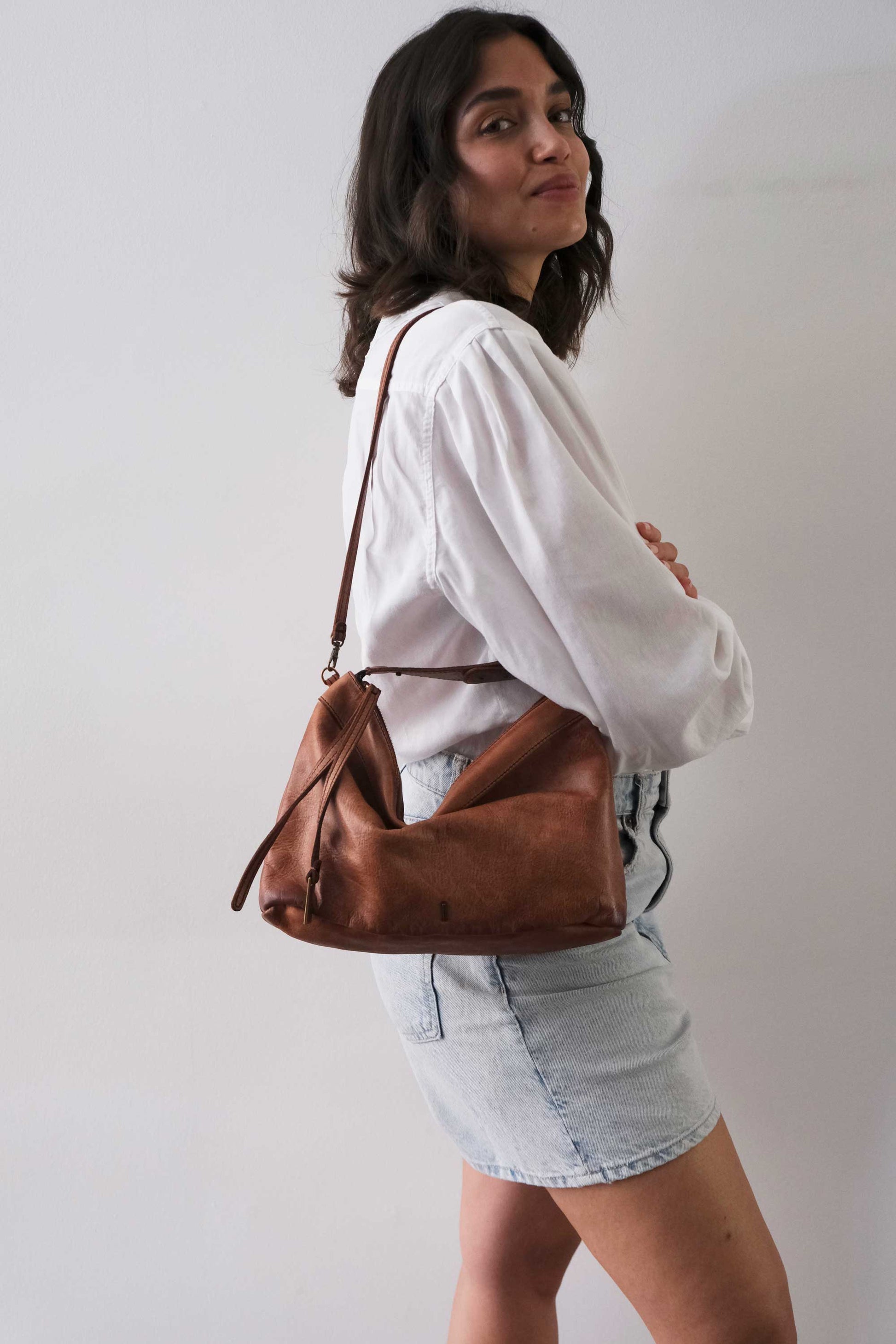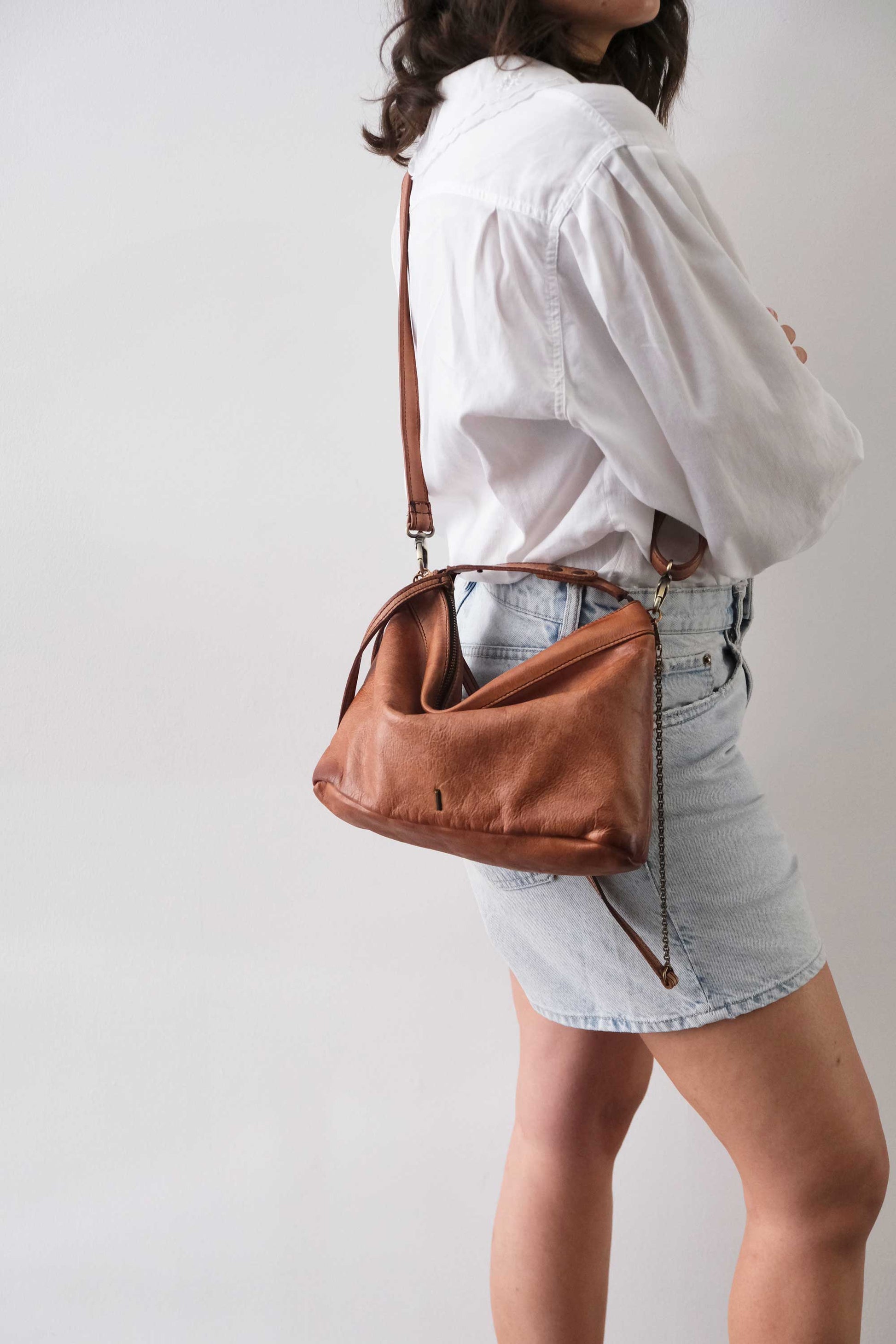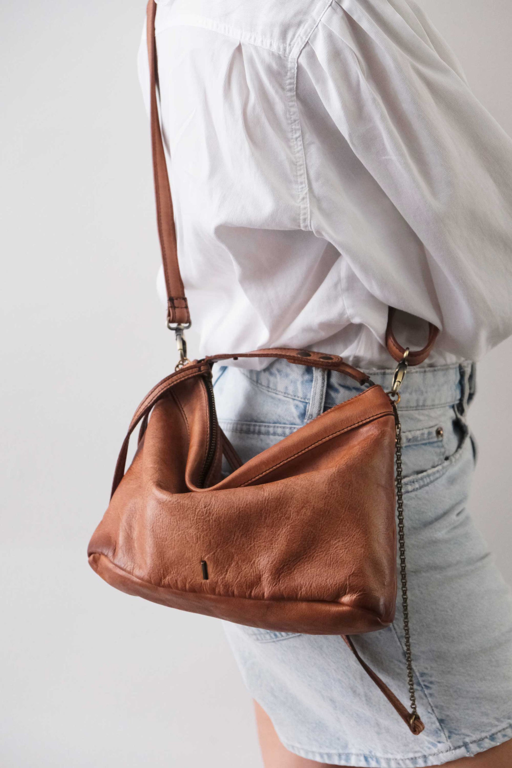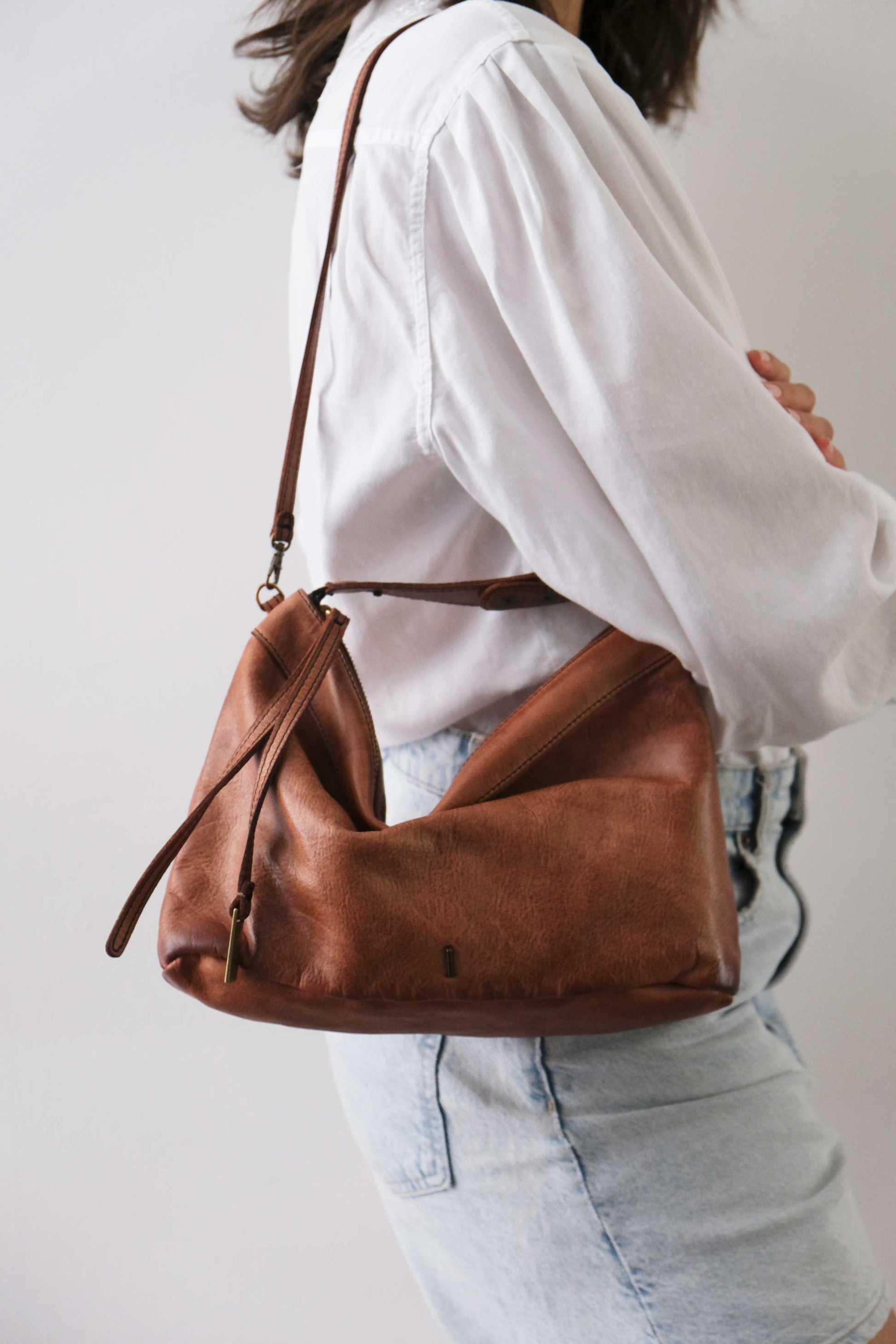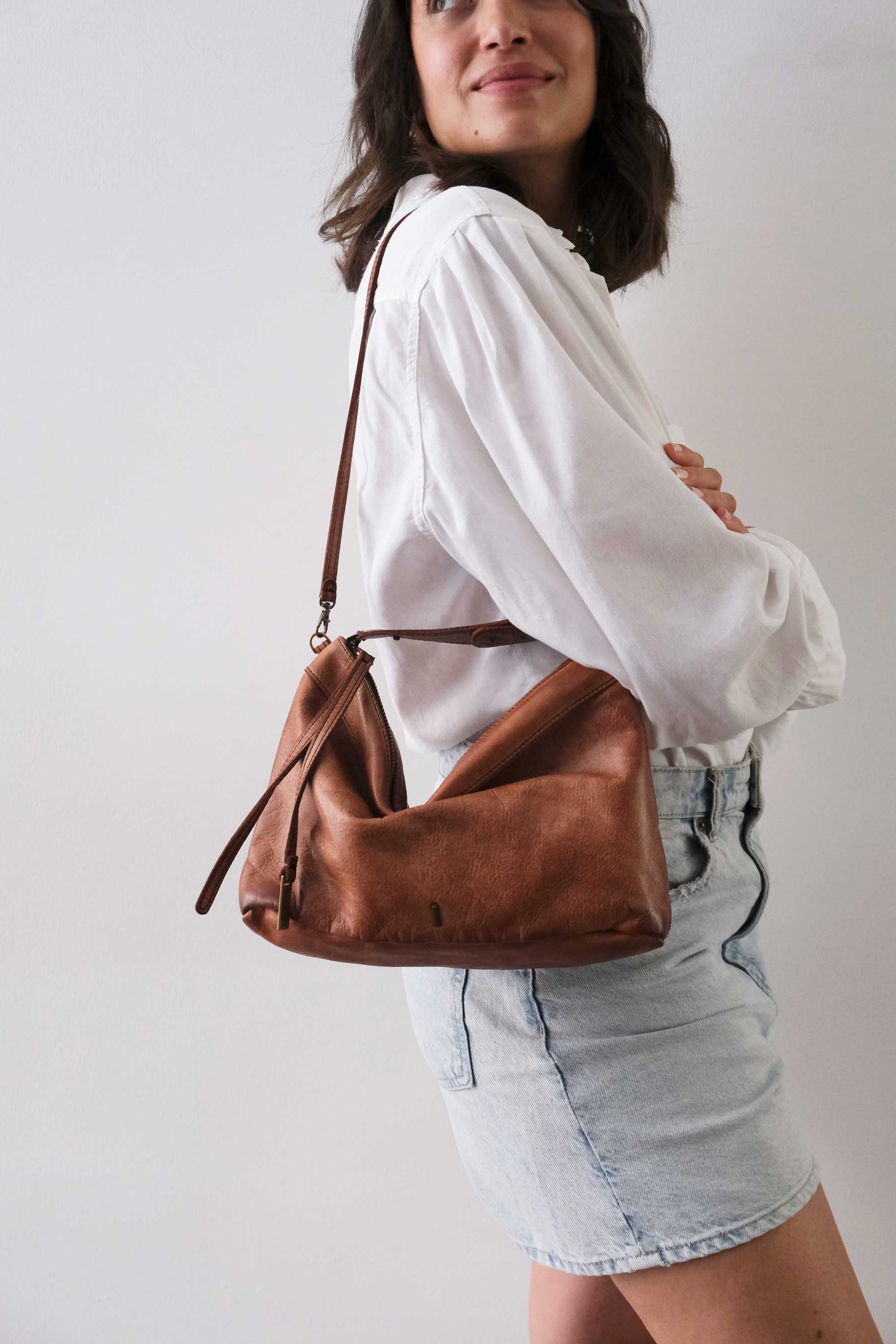 Chicca Media hobo bag in pelle cognac turner - Made in Italy -