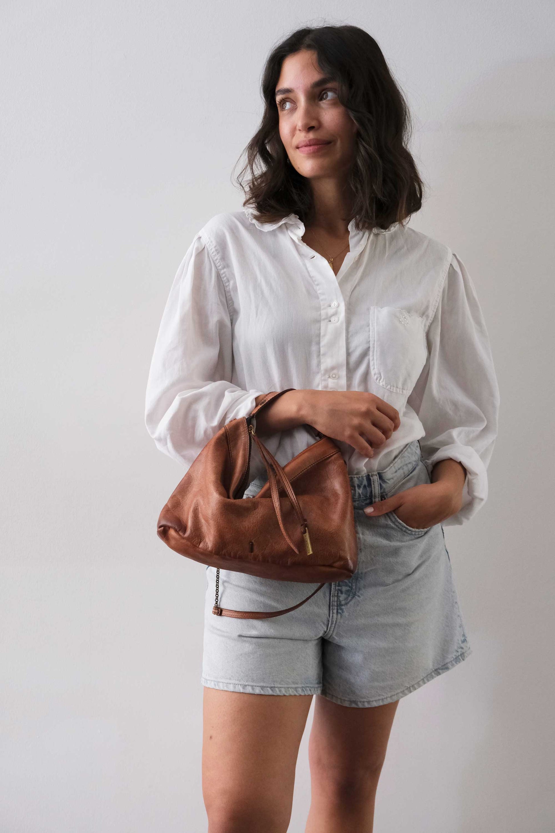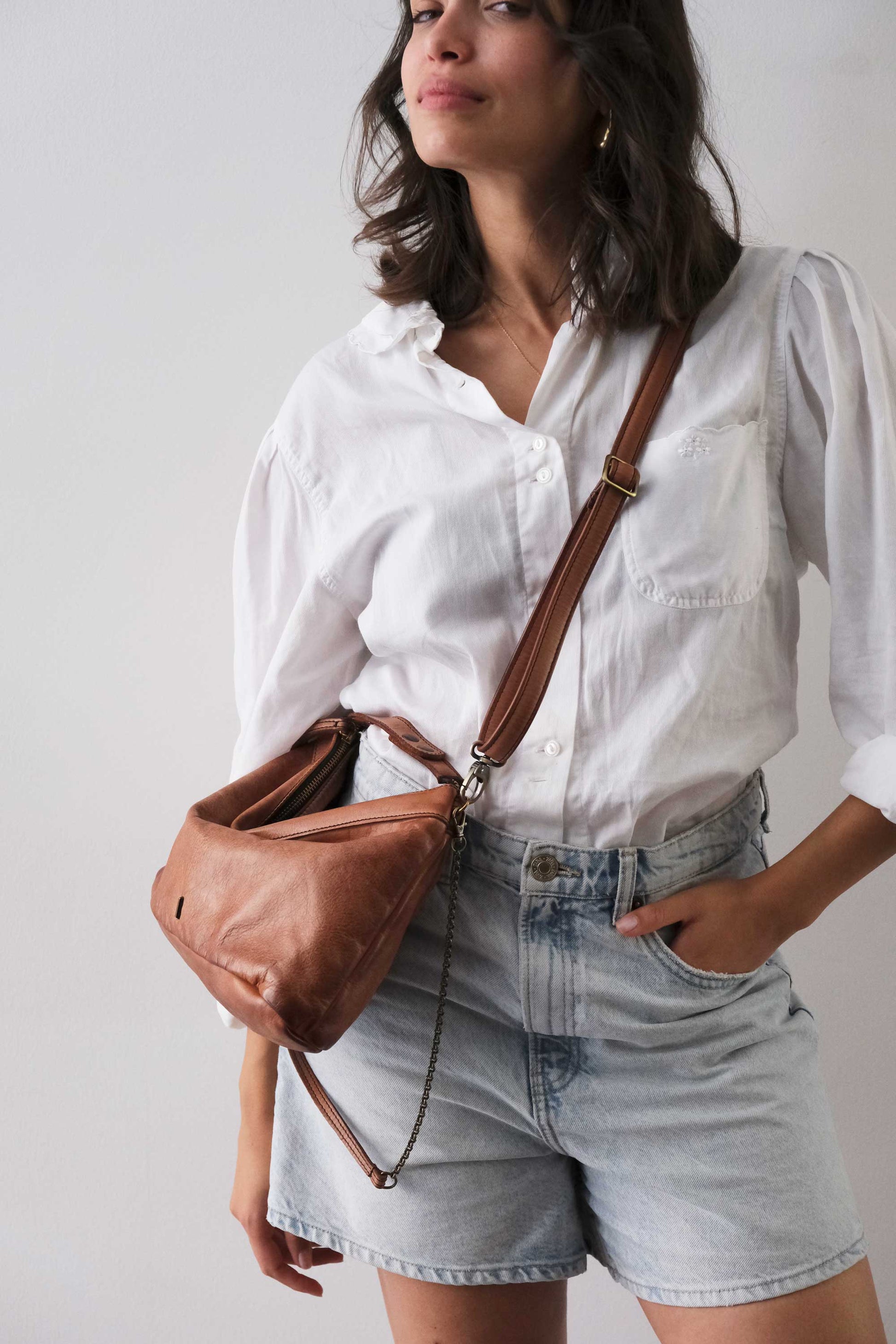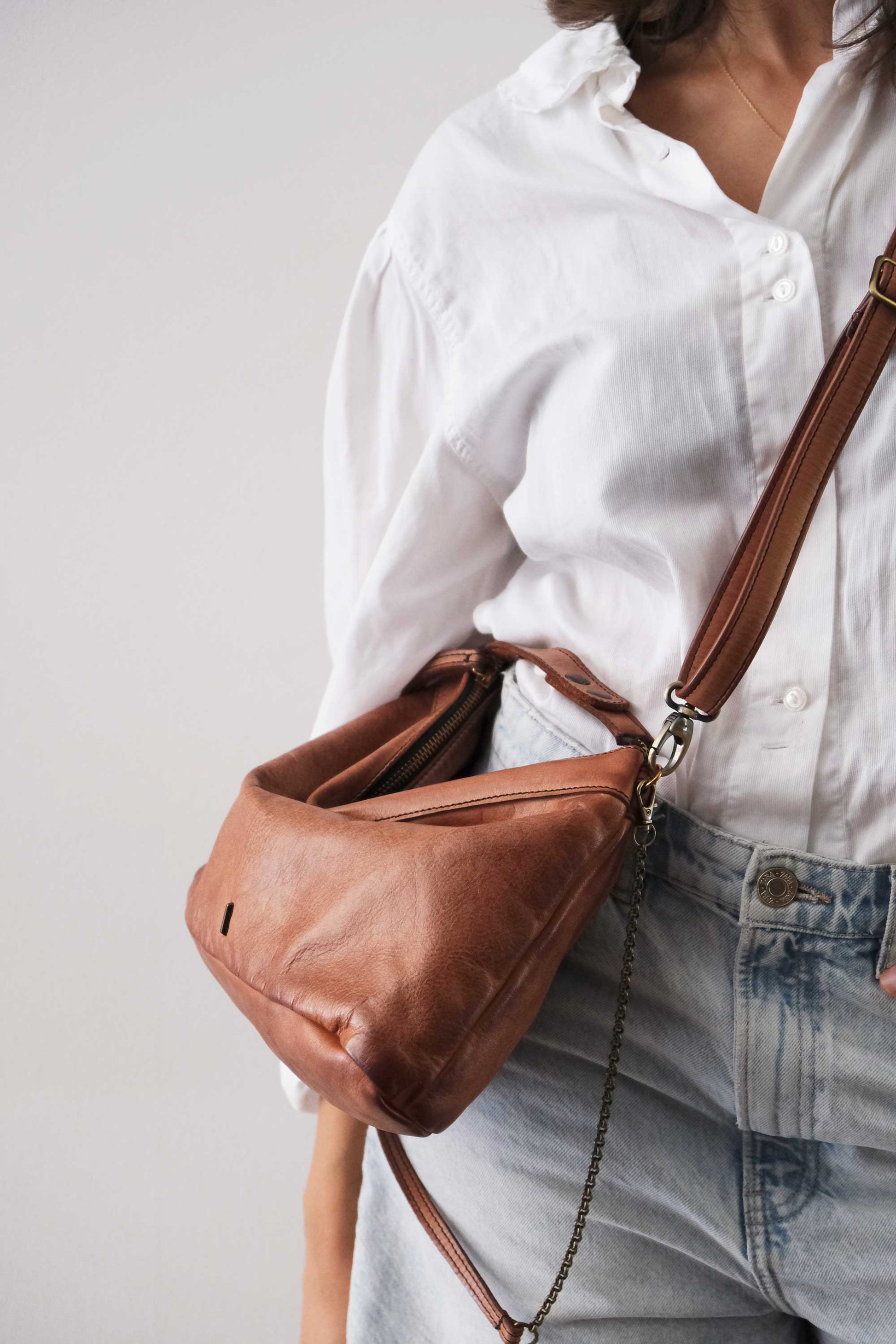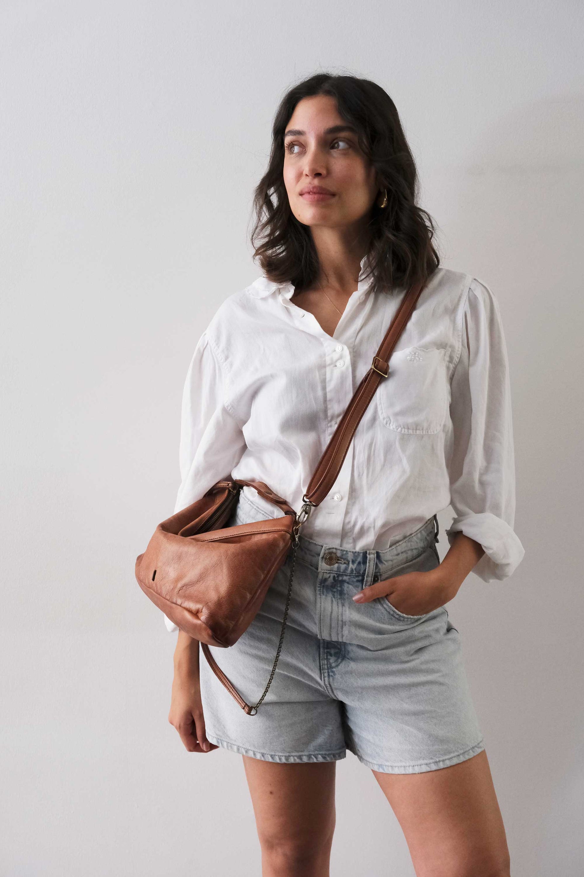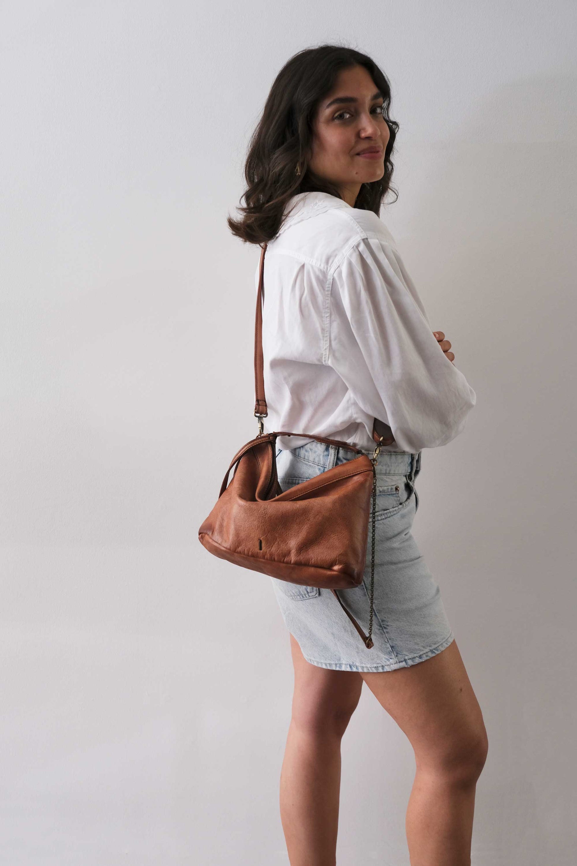 Chicca Media hobo bag in pelle cognac turner - Made in Italy -