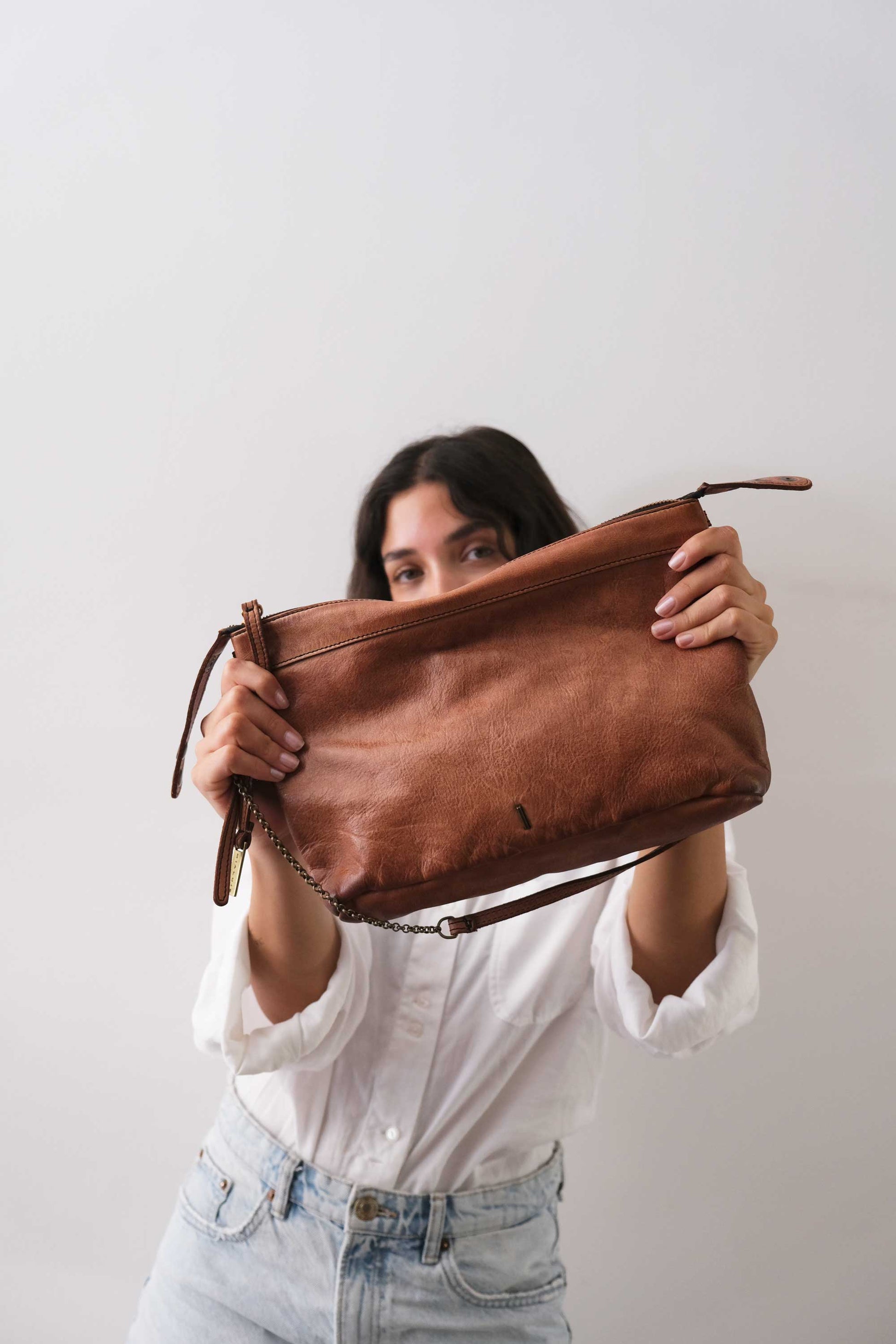 La pelle non subisce trattamenti chimici e nocivi, mantiene le sue caratteristiche naturali che includono anche variazioni di sfumature di colore nelle venature. Queste variazioni non costituiscono un difetto della pelle, ma rendono ogni borsa unica proprio come chi la indossa.