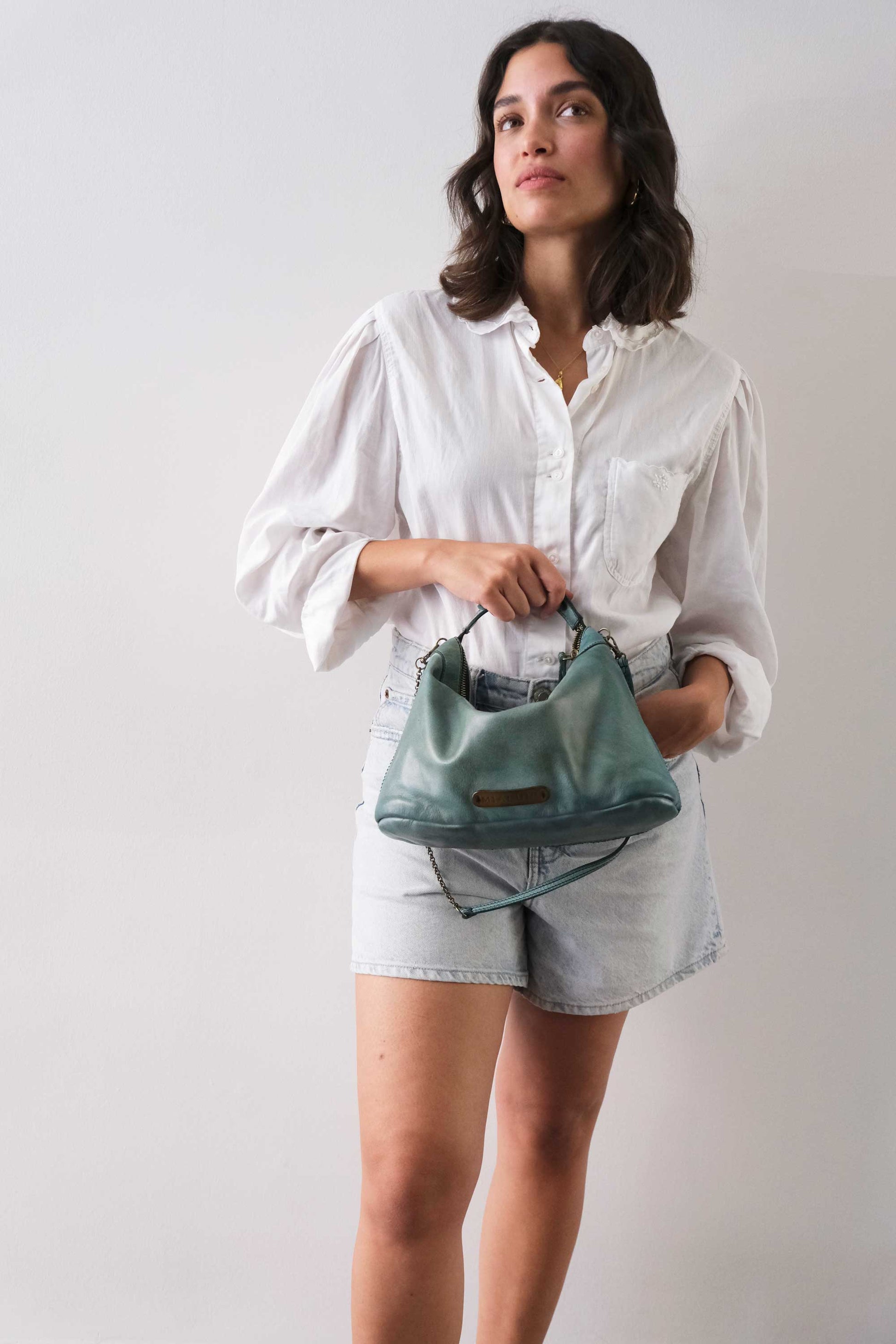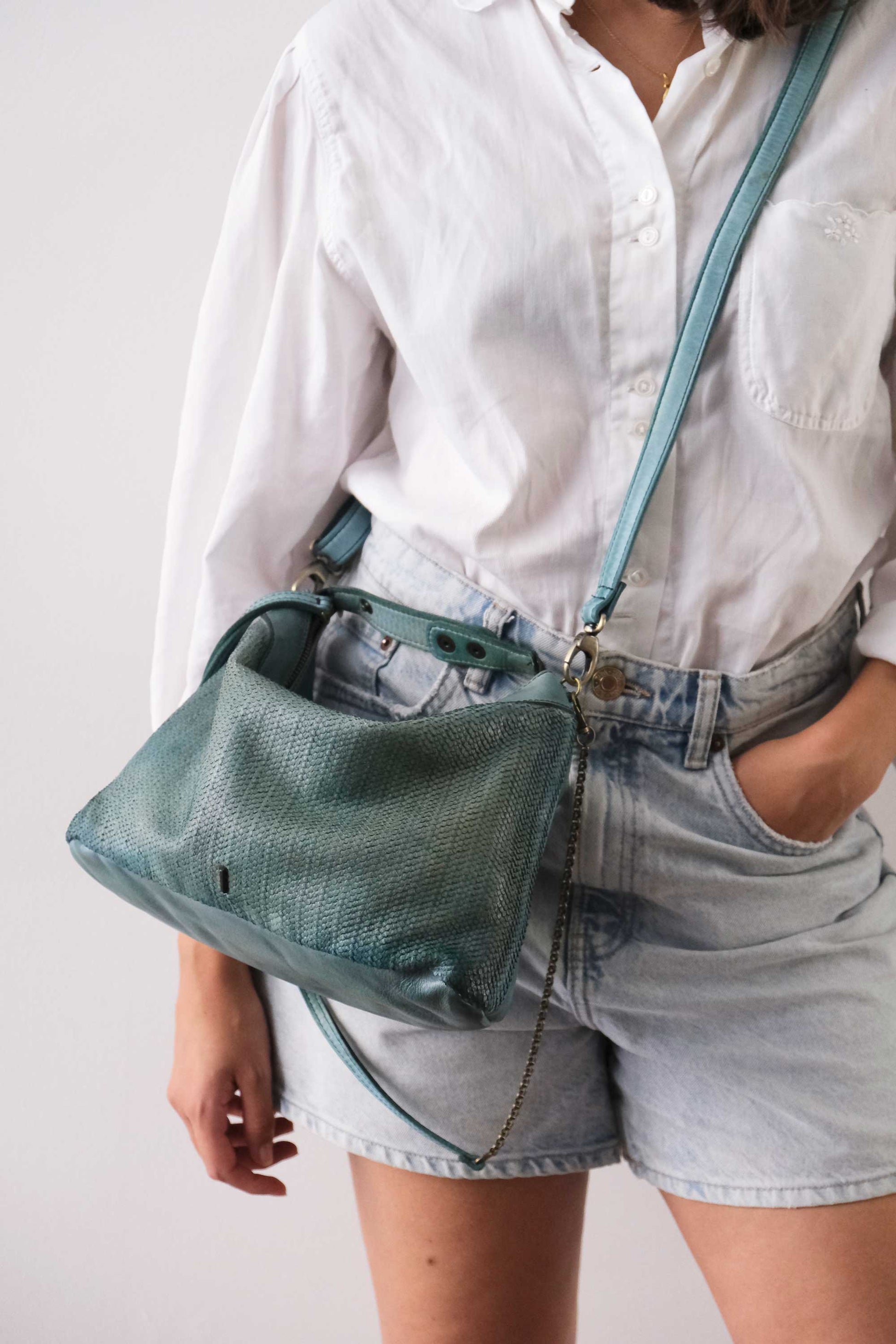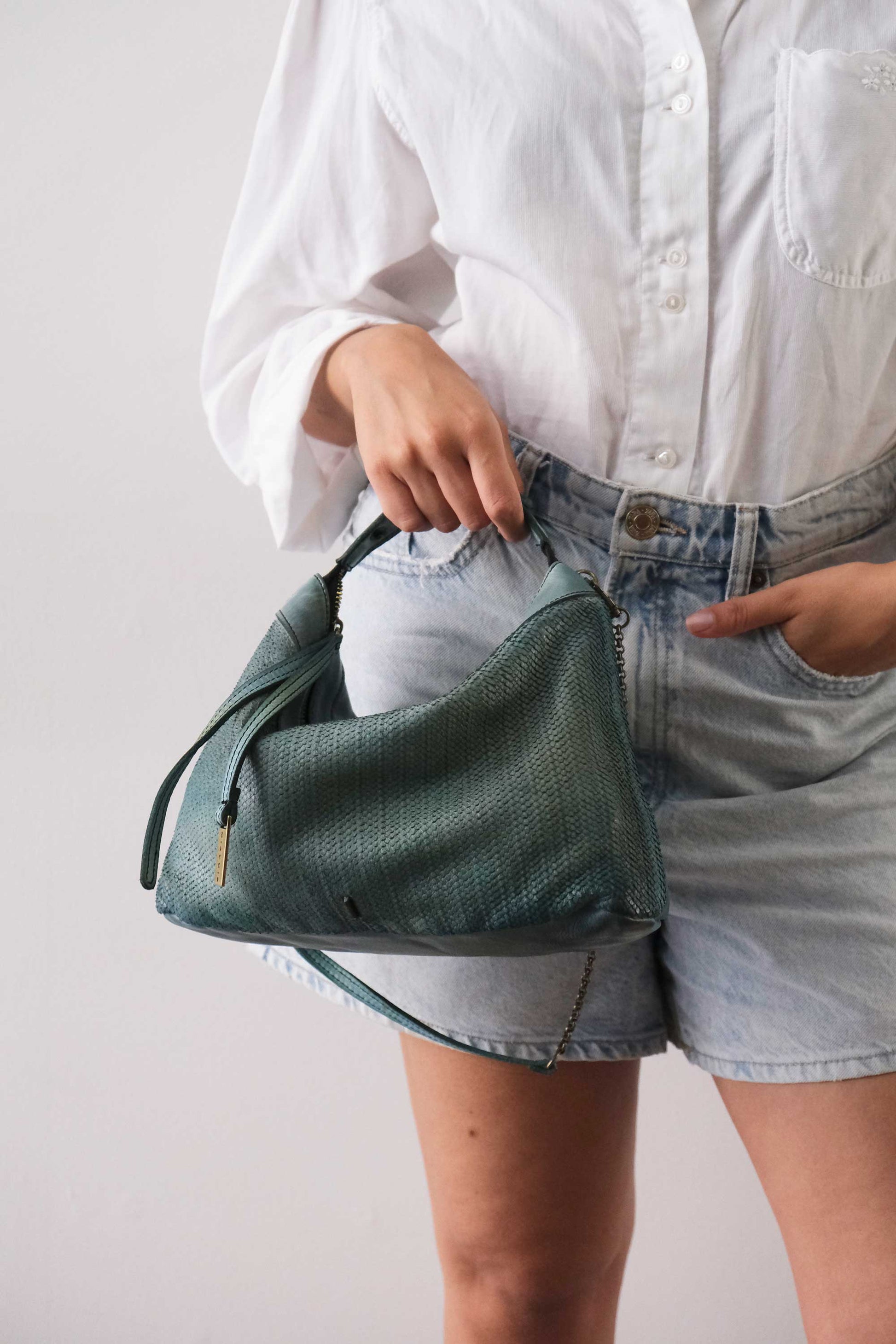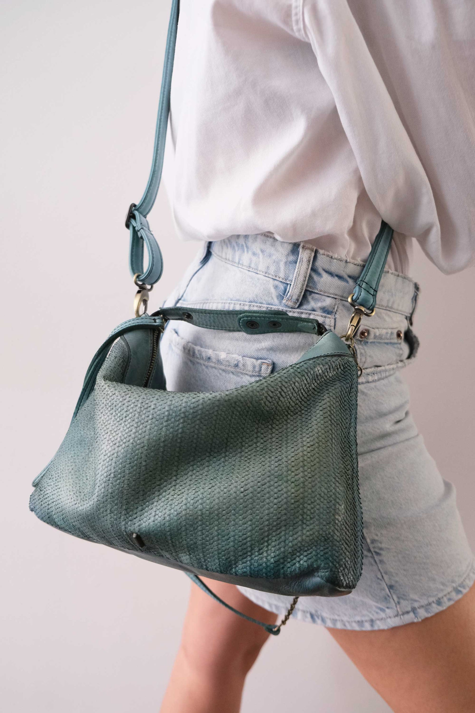 Chicca Media hobo bag in pelle verde acqua turner wips - Made in Italy -