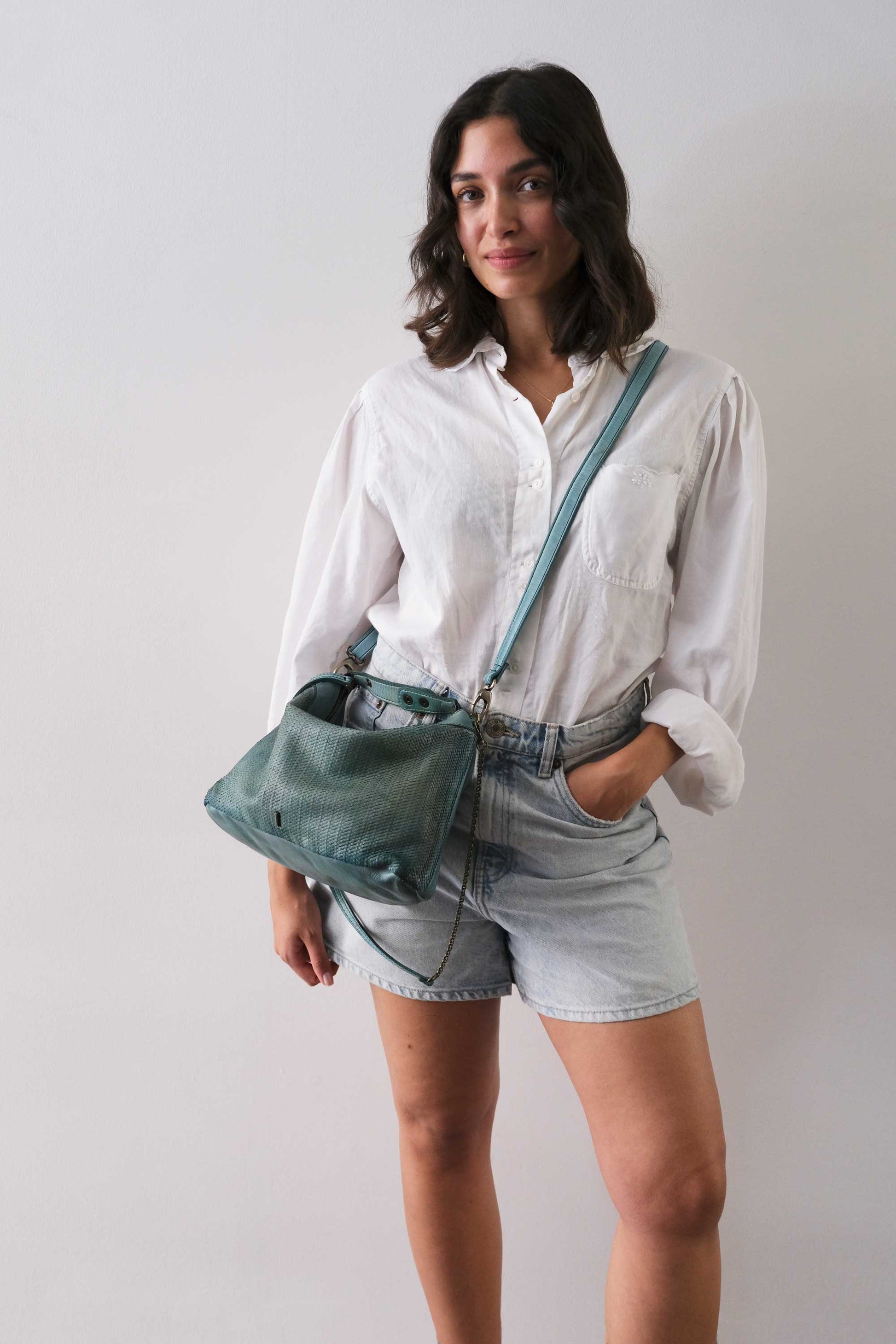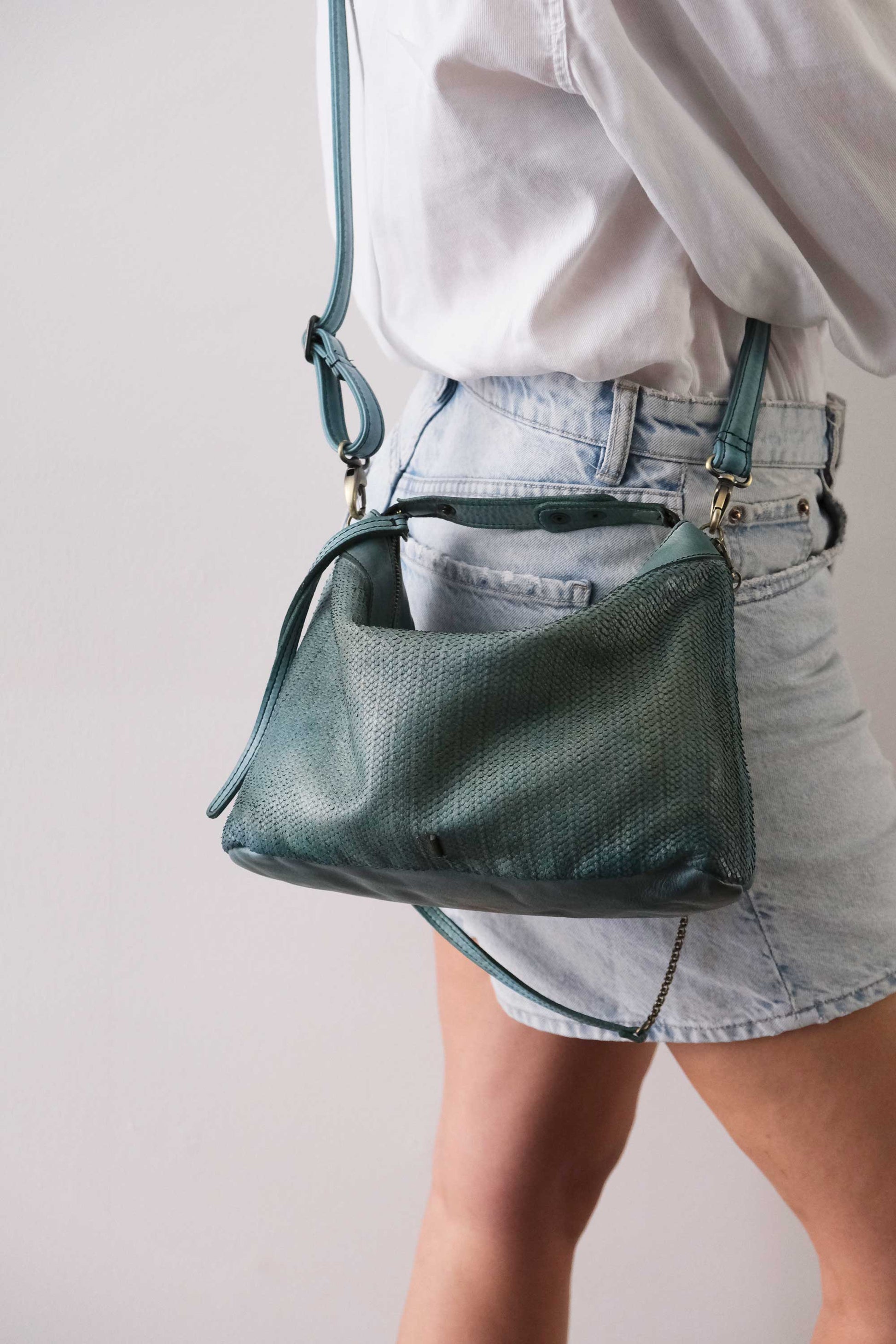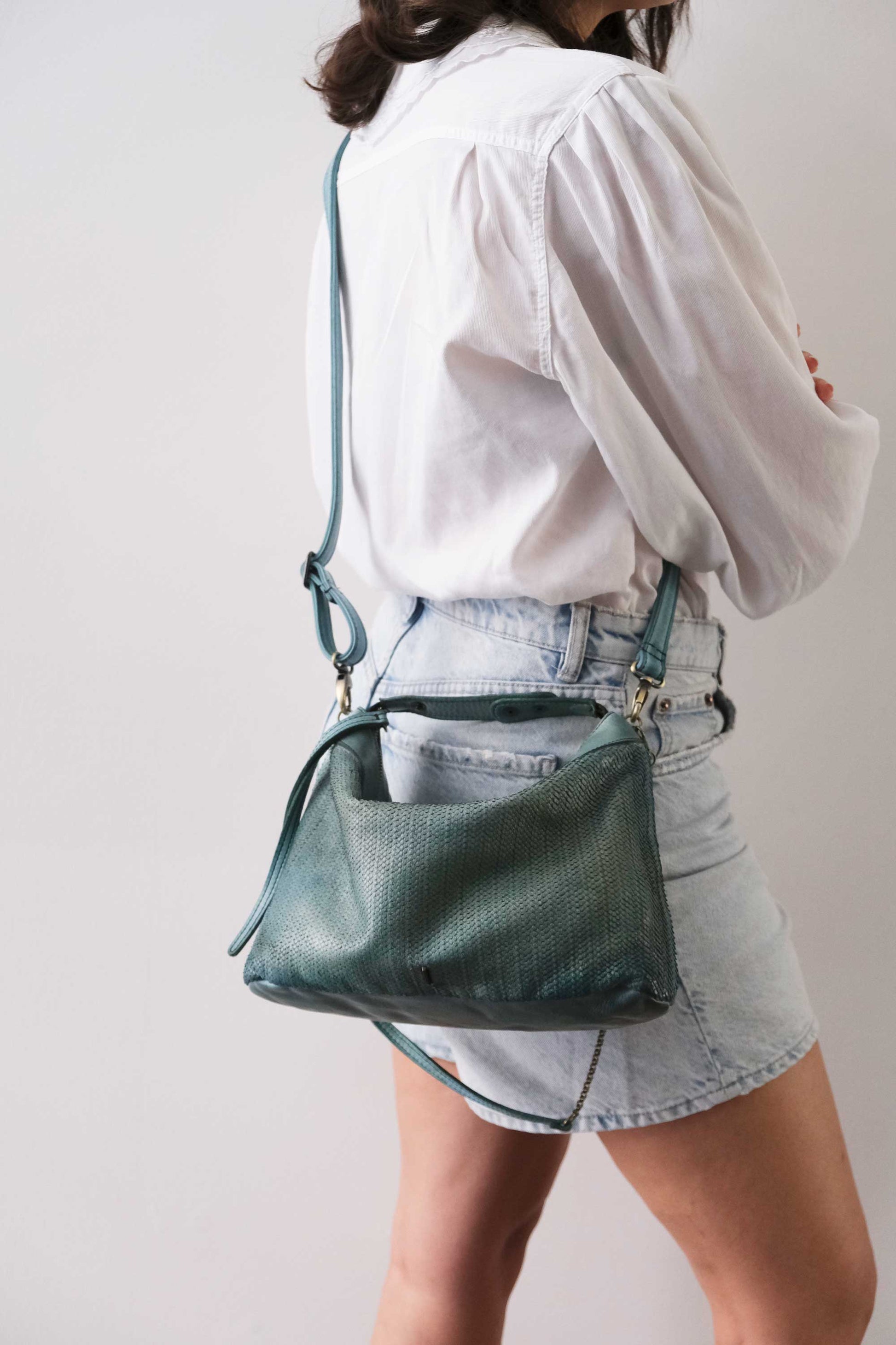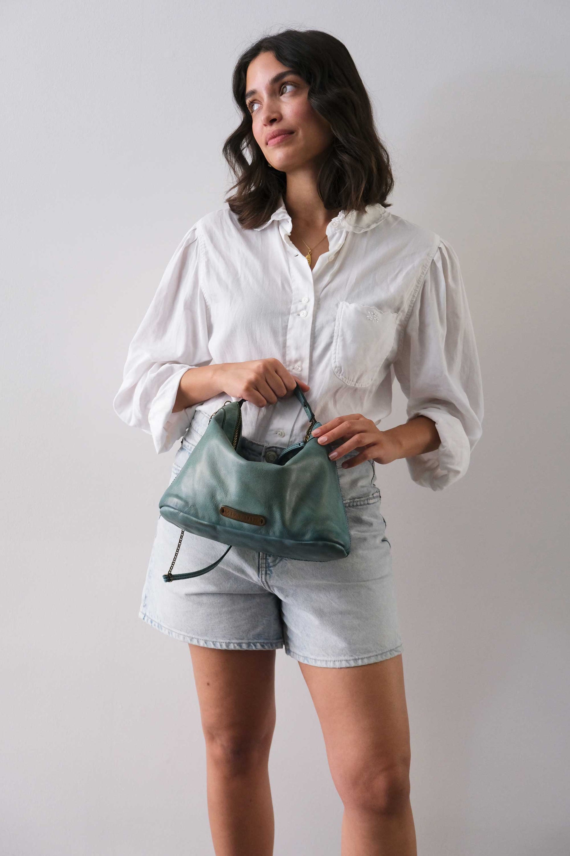Chicca Media hobo bag in pelle verde acqua turner wips - Made in Italy -