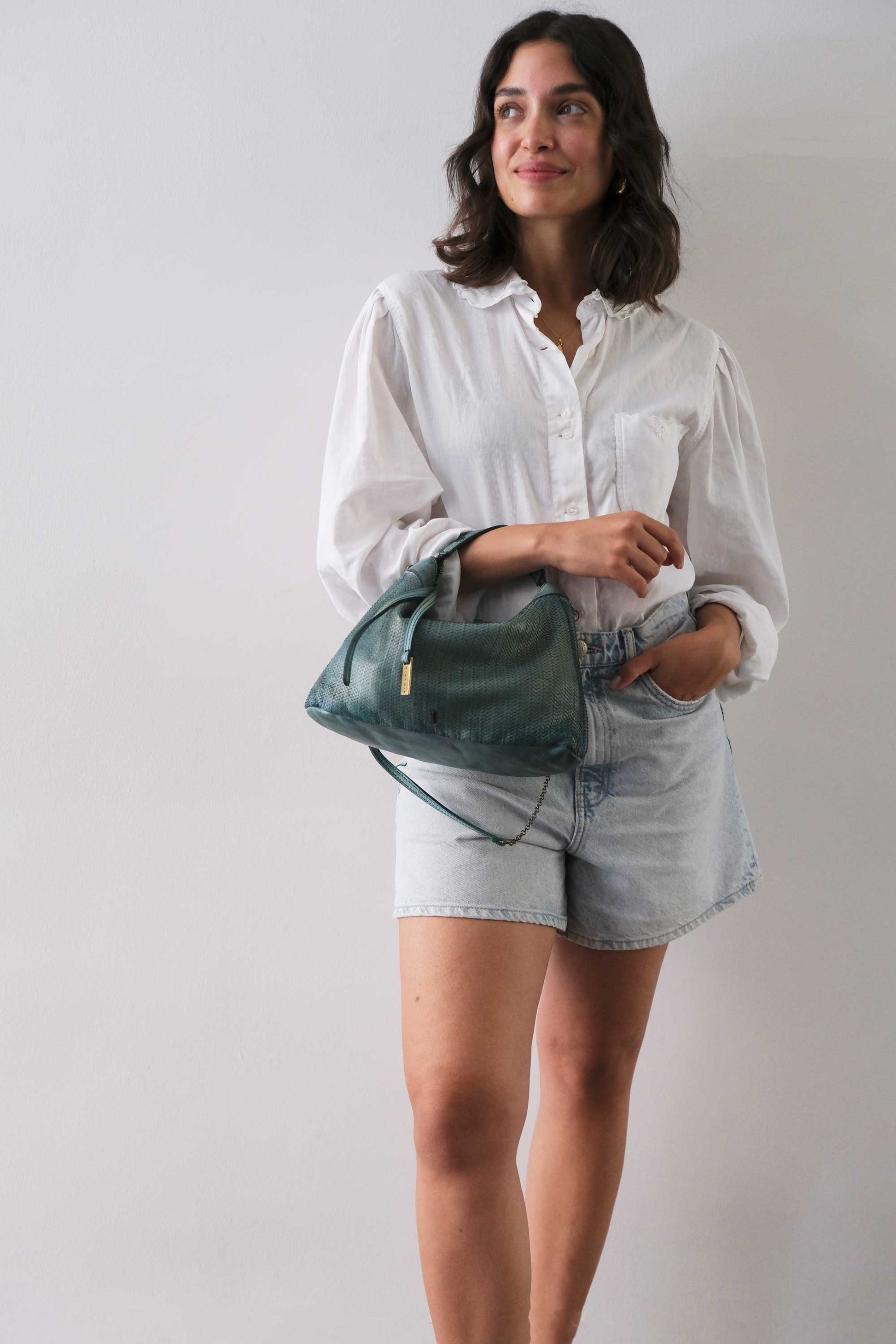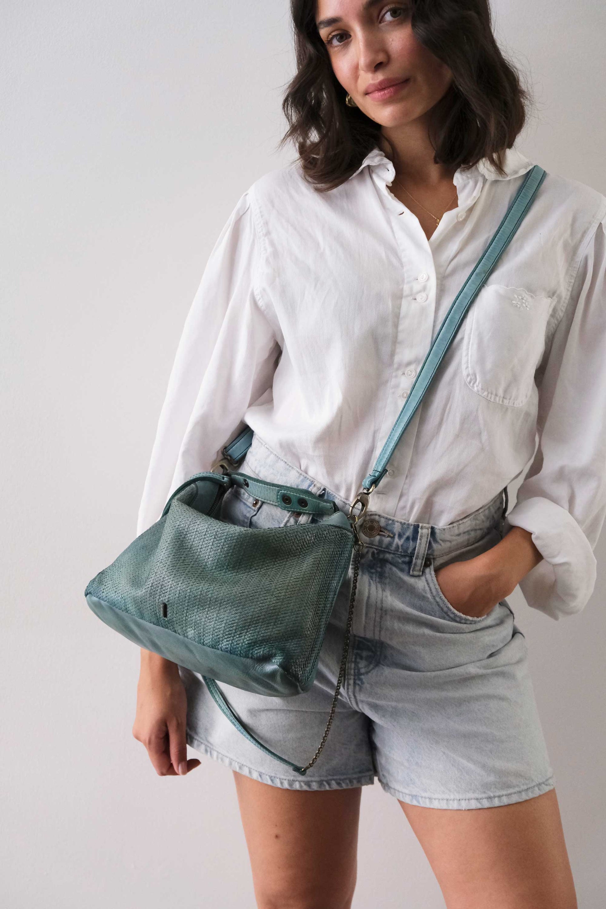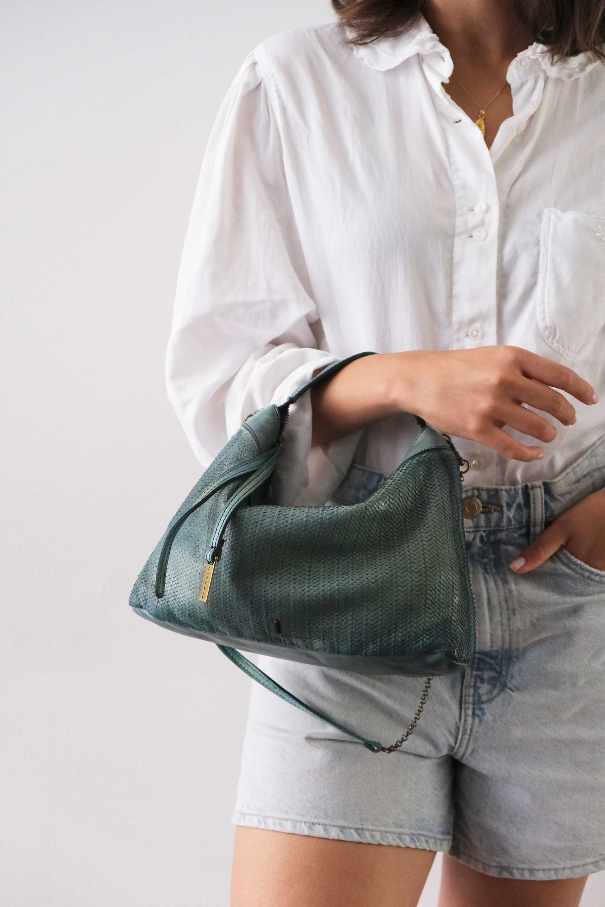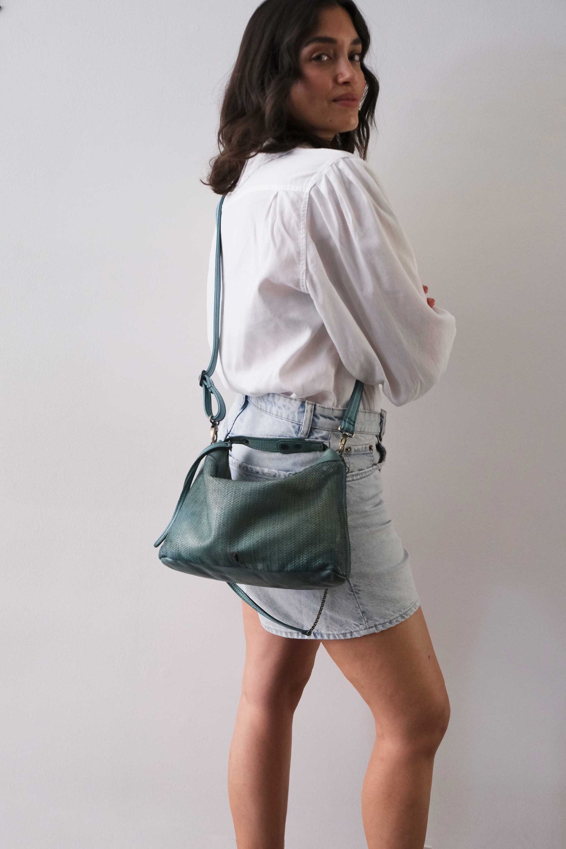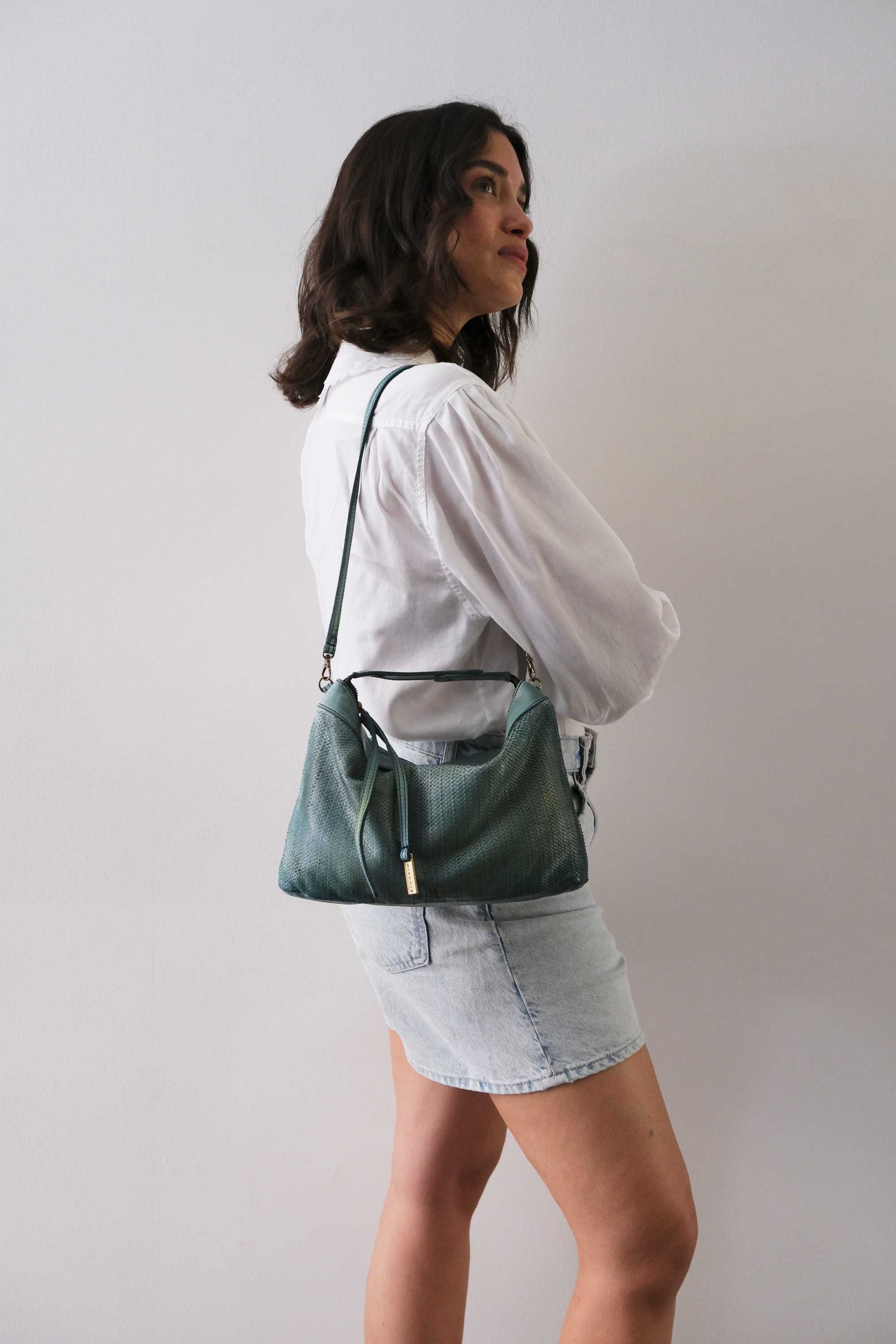 Chicca Media hobo bag in pelle verde acqua turner wips - Made in Italy -