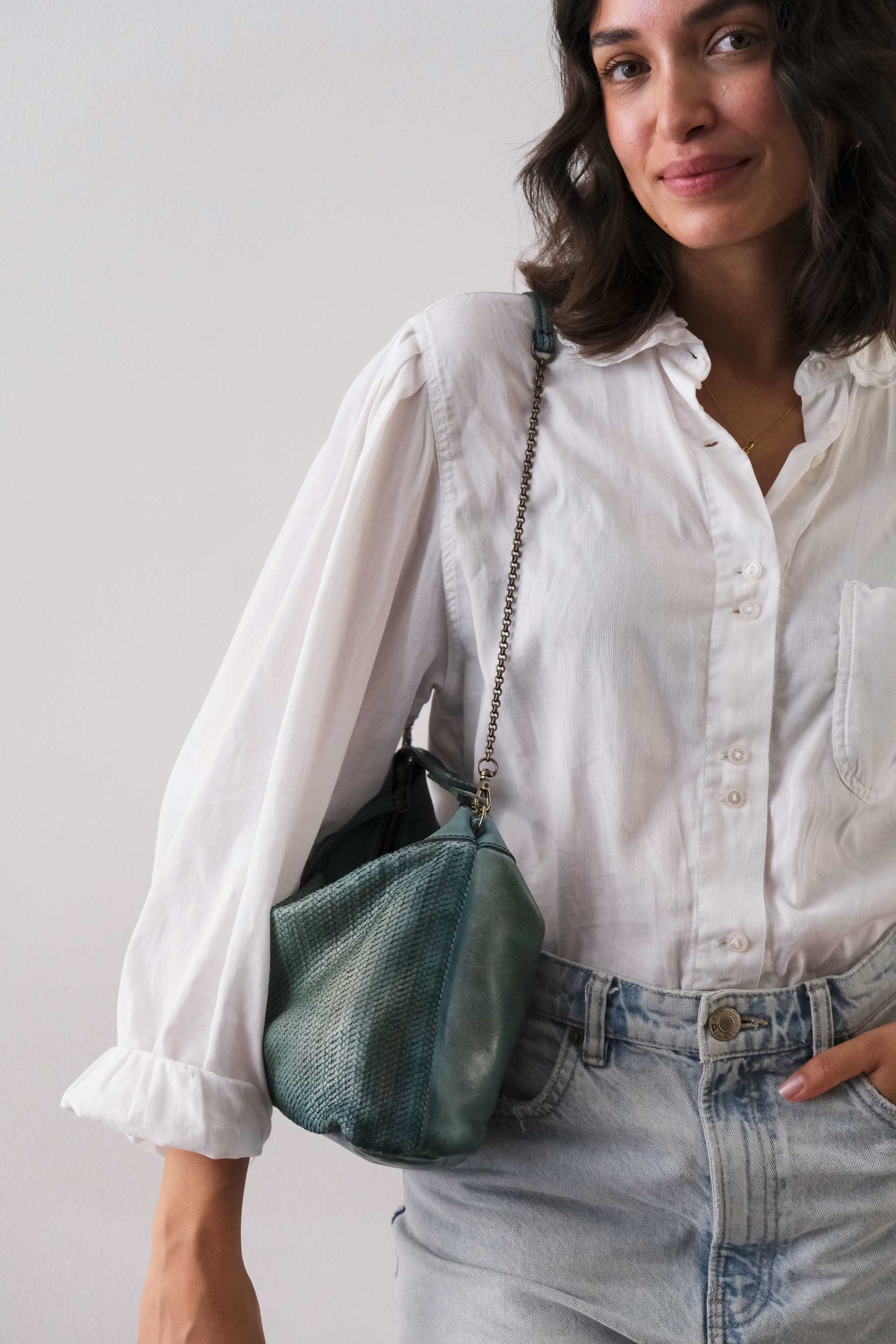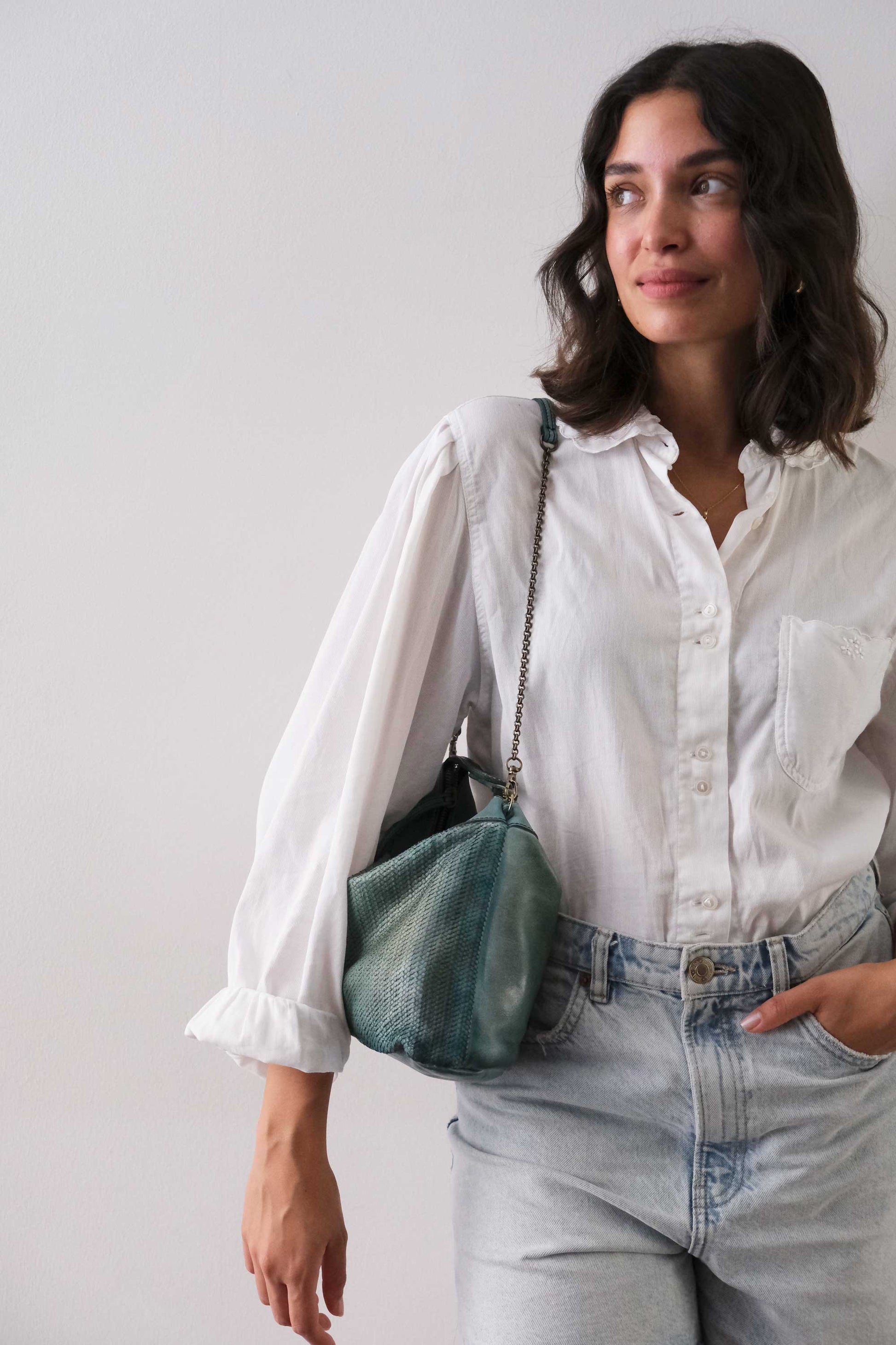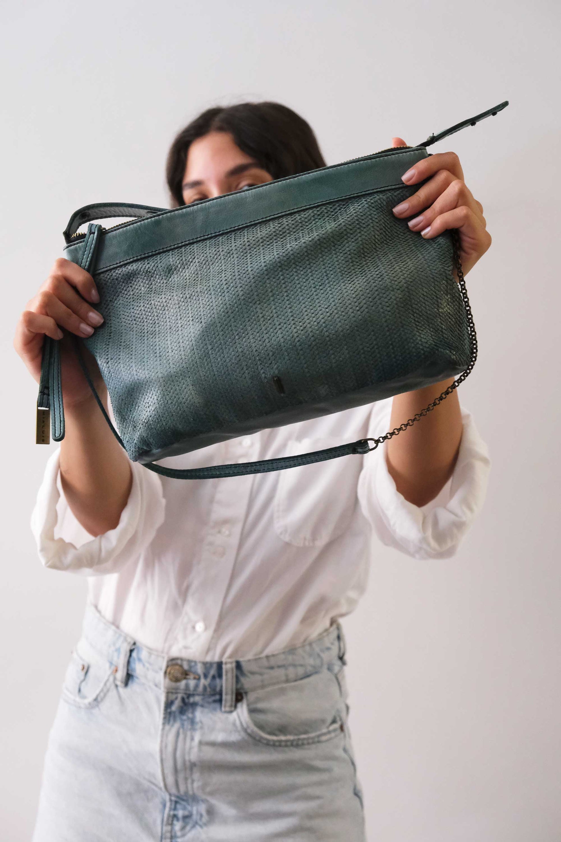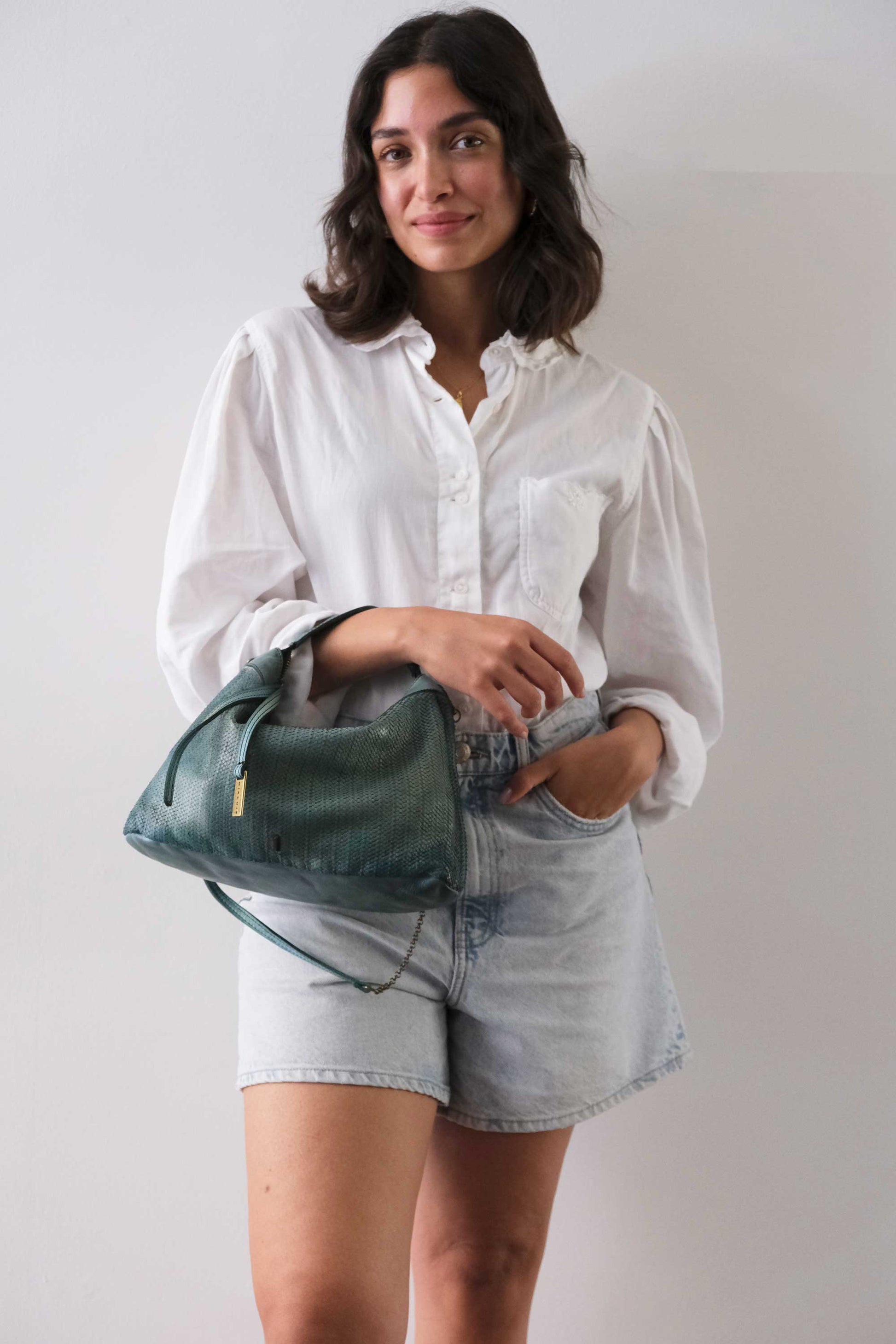 Chicca Media hobo bag in pelle verde acqua turner wips - Made in Italy -