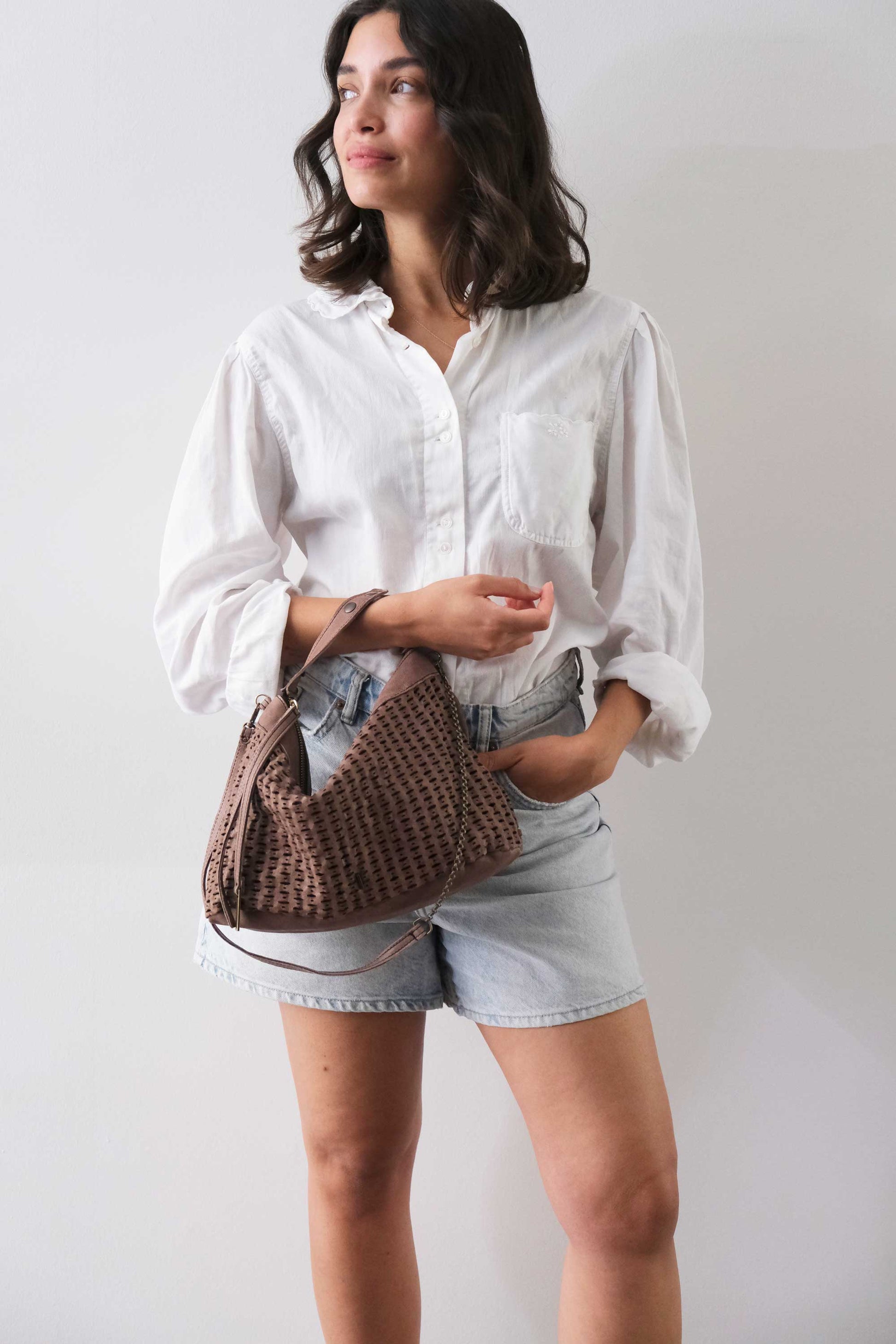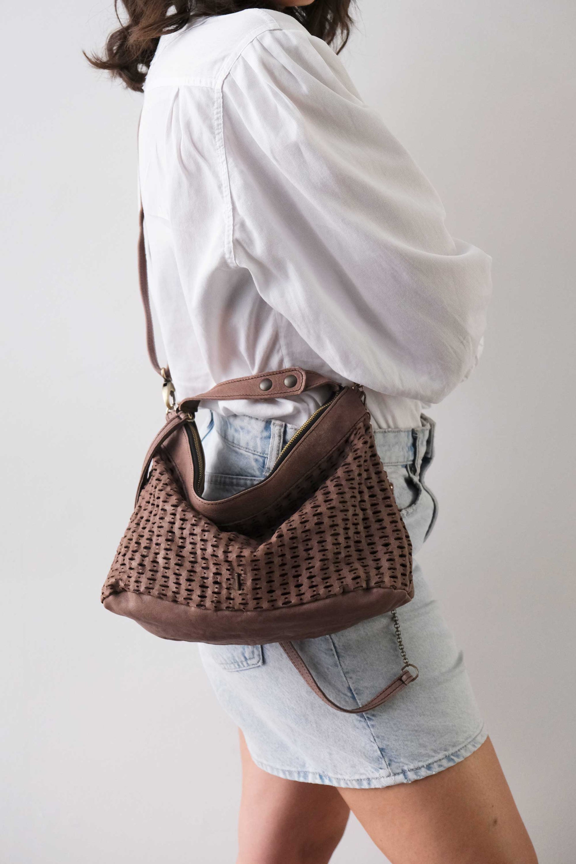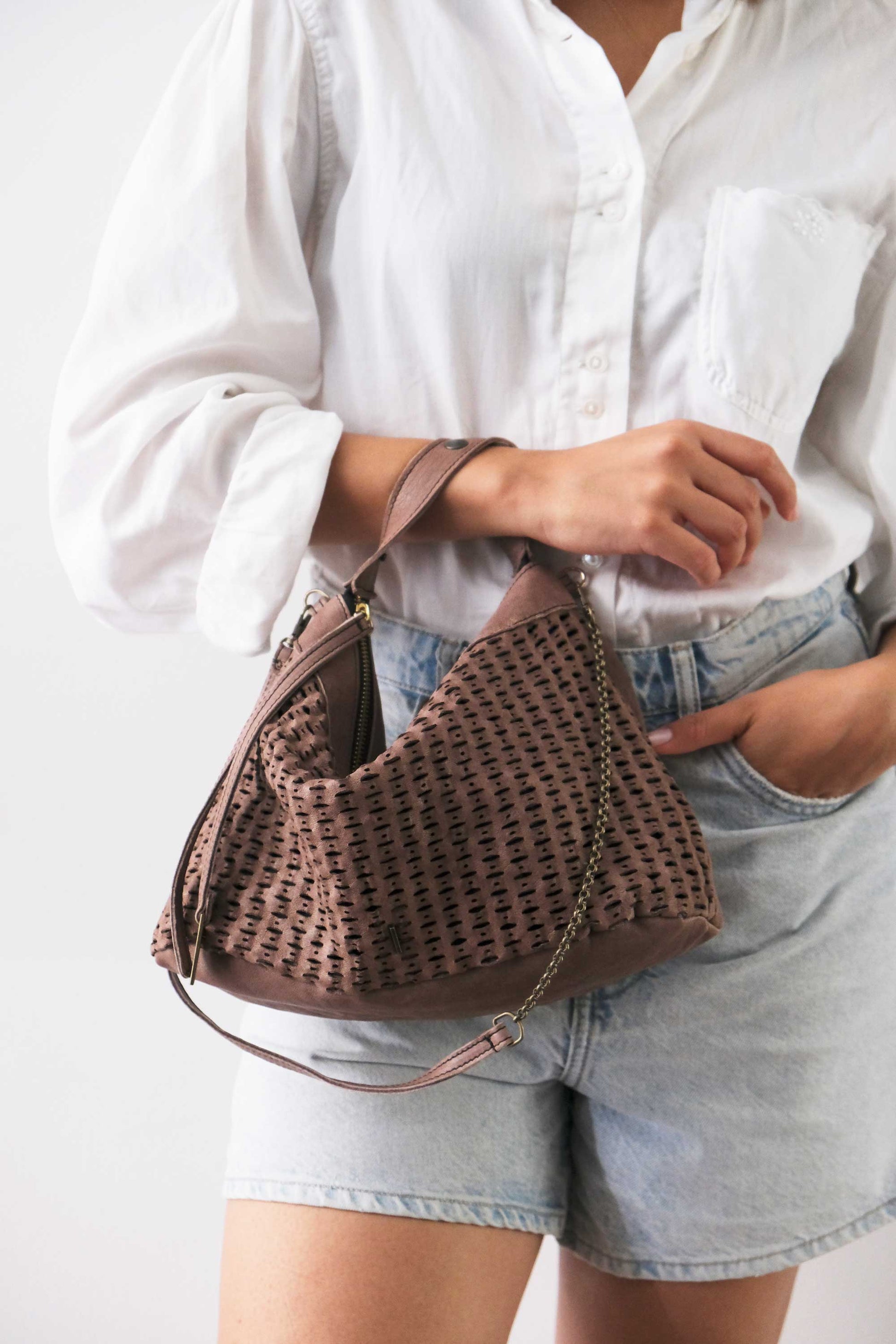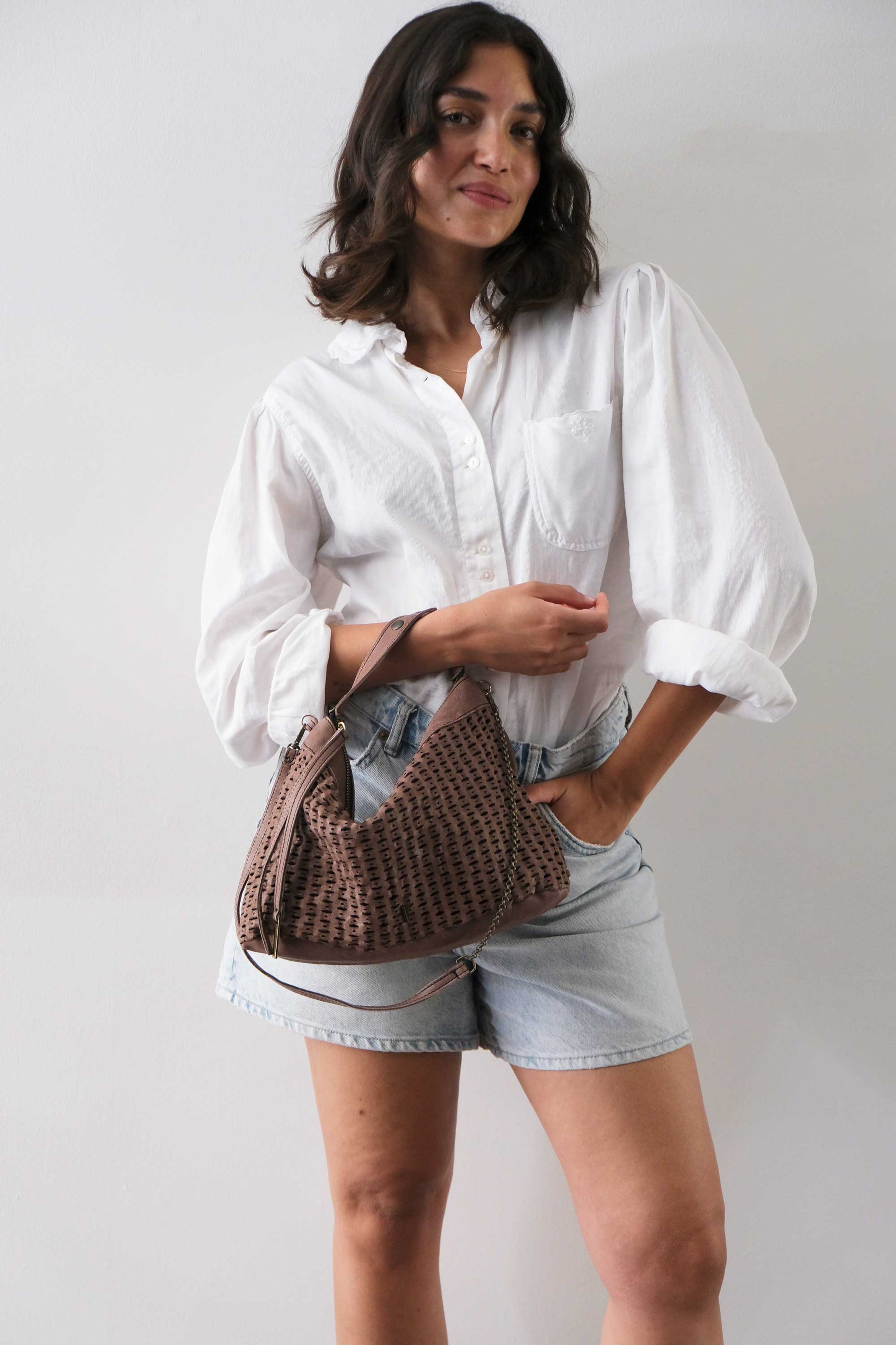 Chicca Medium è una mini hobo ispirata alla titolare di uno dei primi negozi che hanno creduto nelle borse Mialuis. Ne incarna la personalità coraggiosa e pratica, aperta al nuovo e all’insolito. Passare del tempo con lei è un’esperienza sensoriale vera, fatta di colore ed energia.
