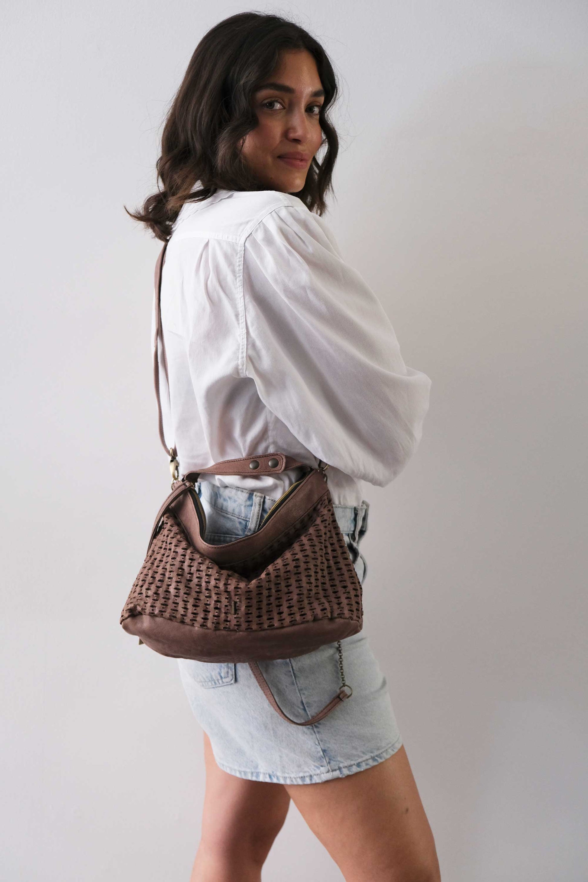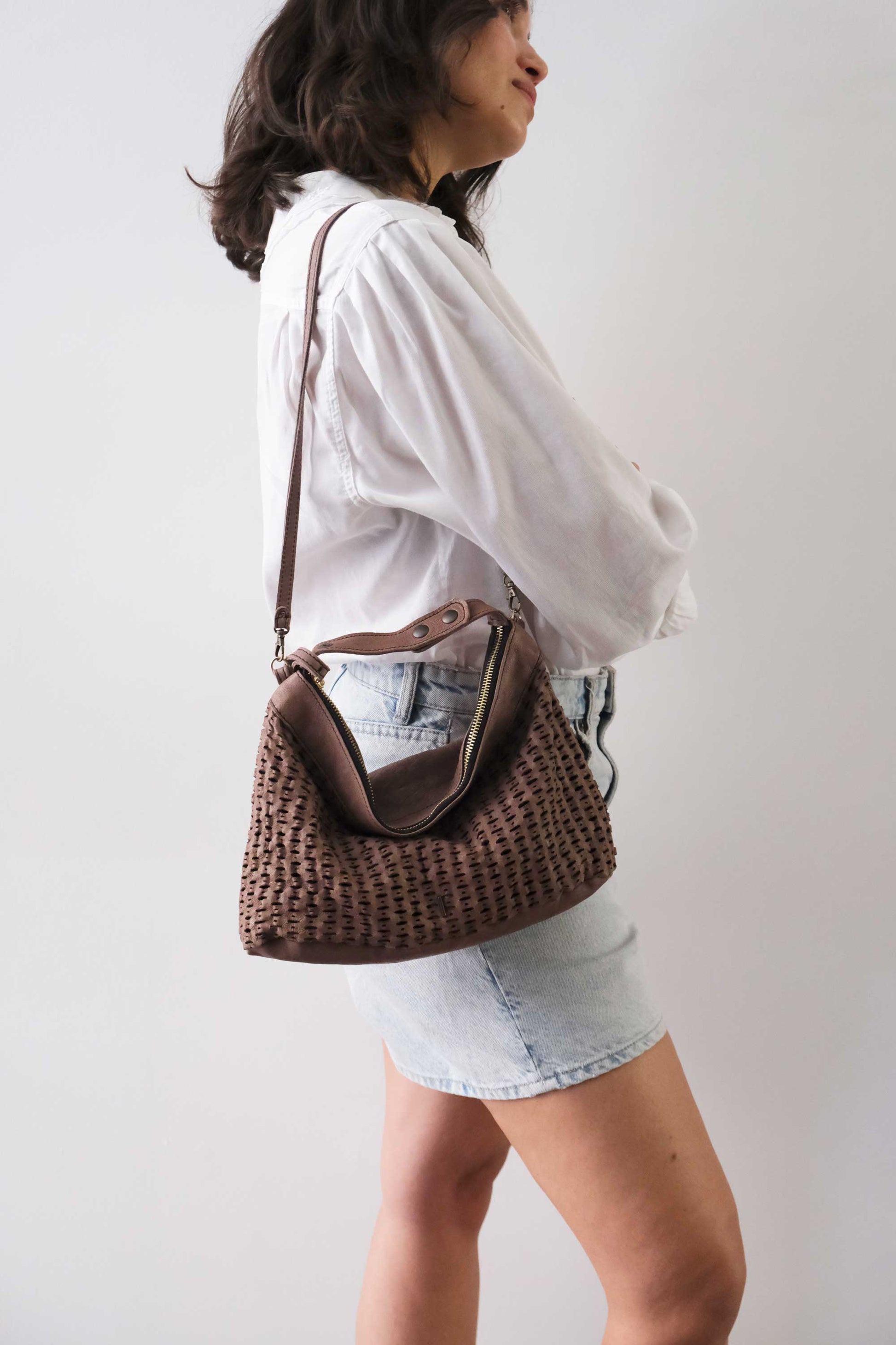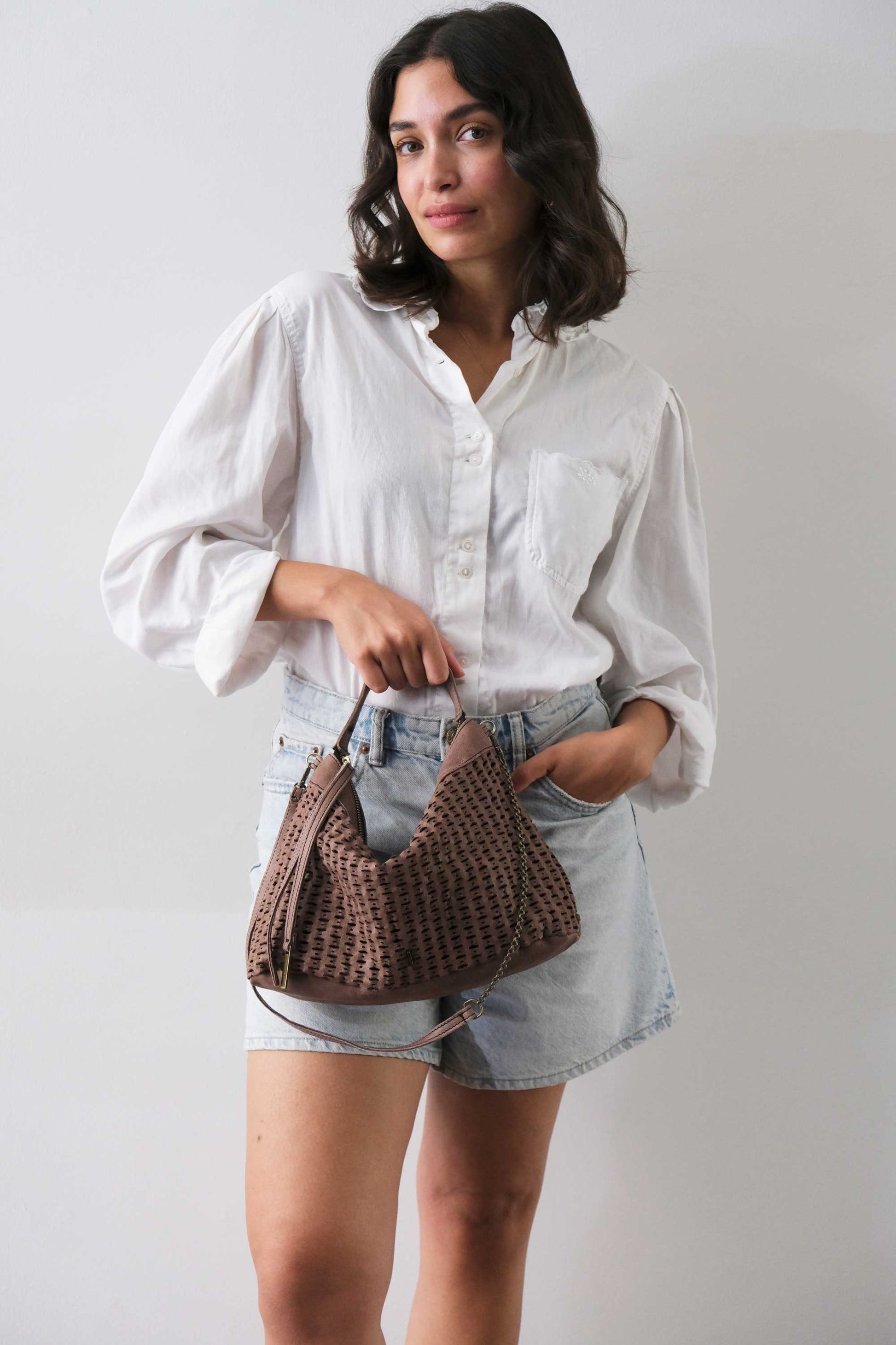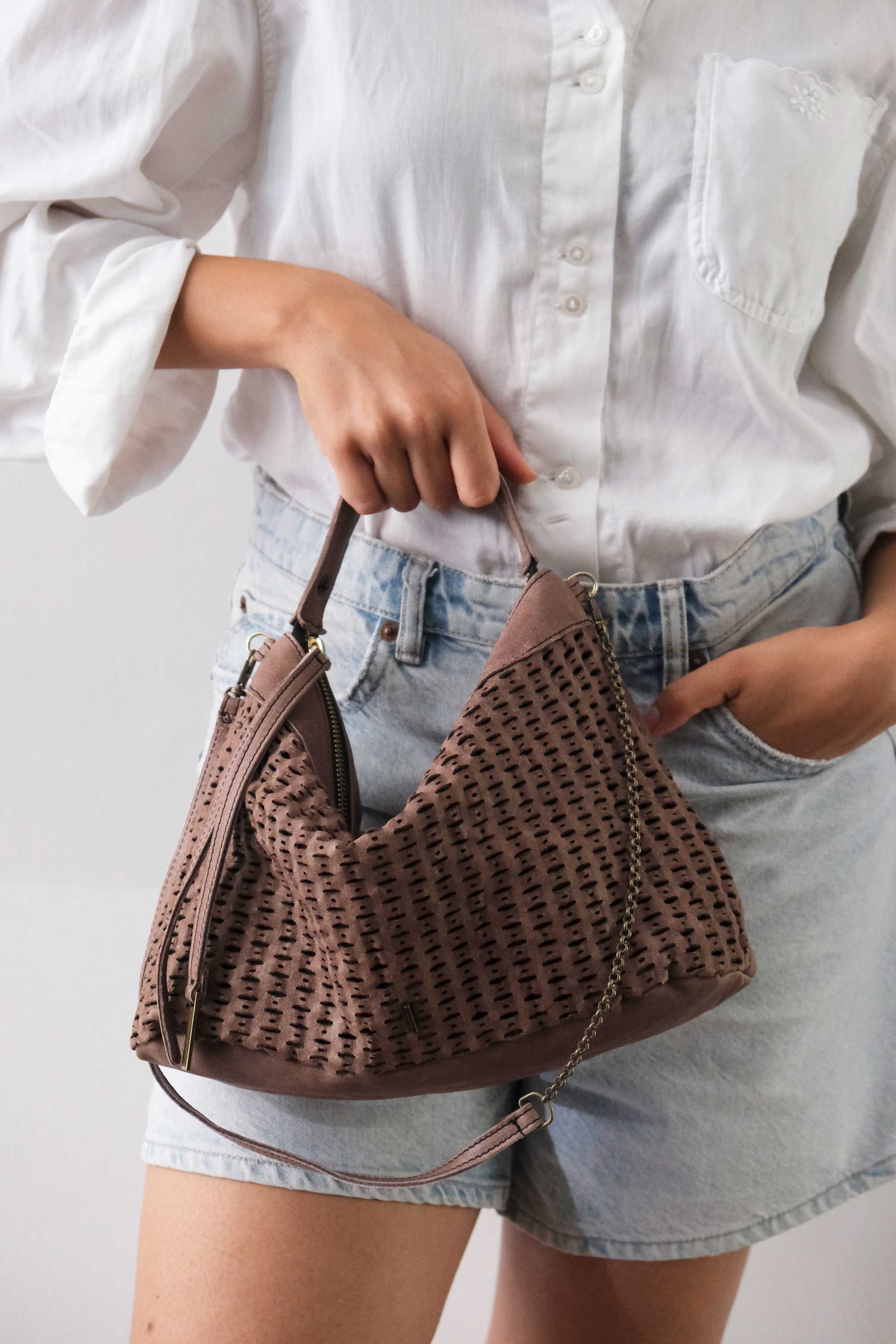 Chicca Medium è una mini hobo ispirata alla titolare di uno dei primi negozi che hanno creduto nelle borse Mialuis. Ne incarna la personalità coraggiosa e pratica, aperta al nuovo e all’insolito. Passare del tempo con lei è un’esperienza sensoriale vera, fatta di colore ed energia.