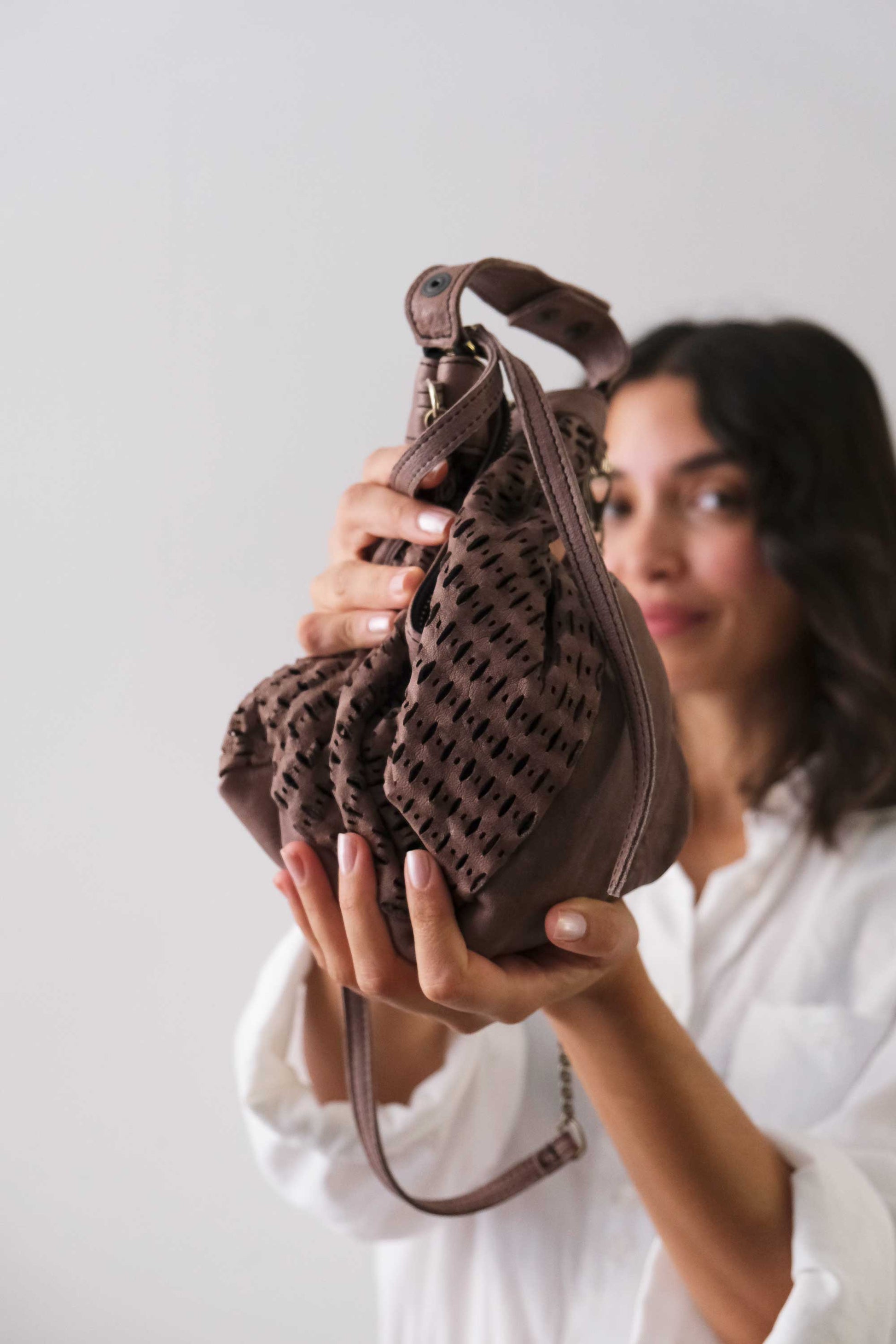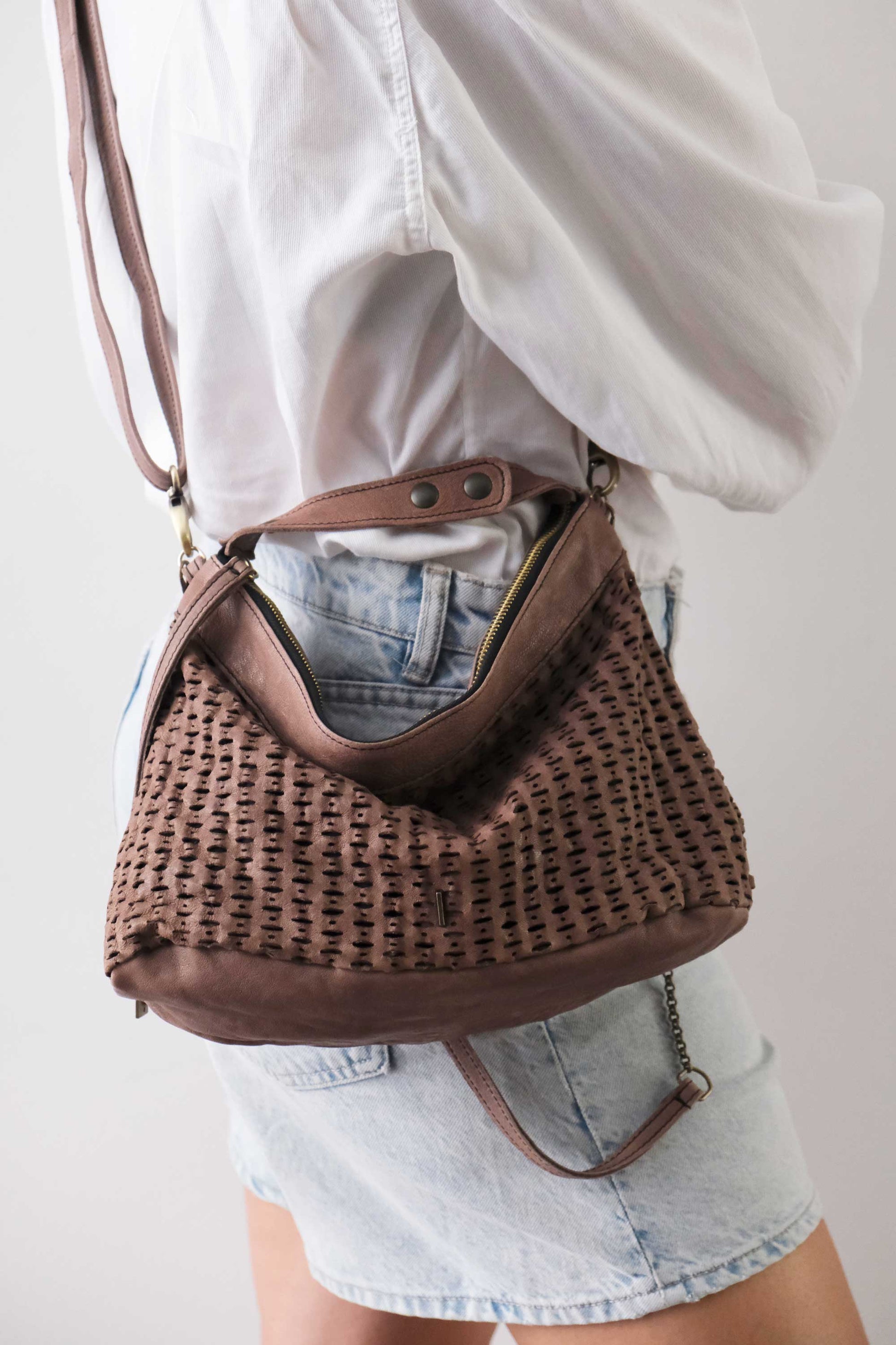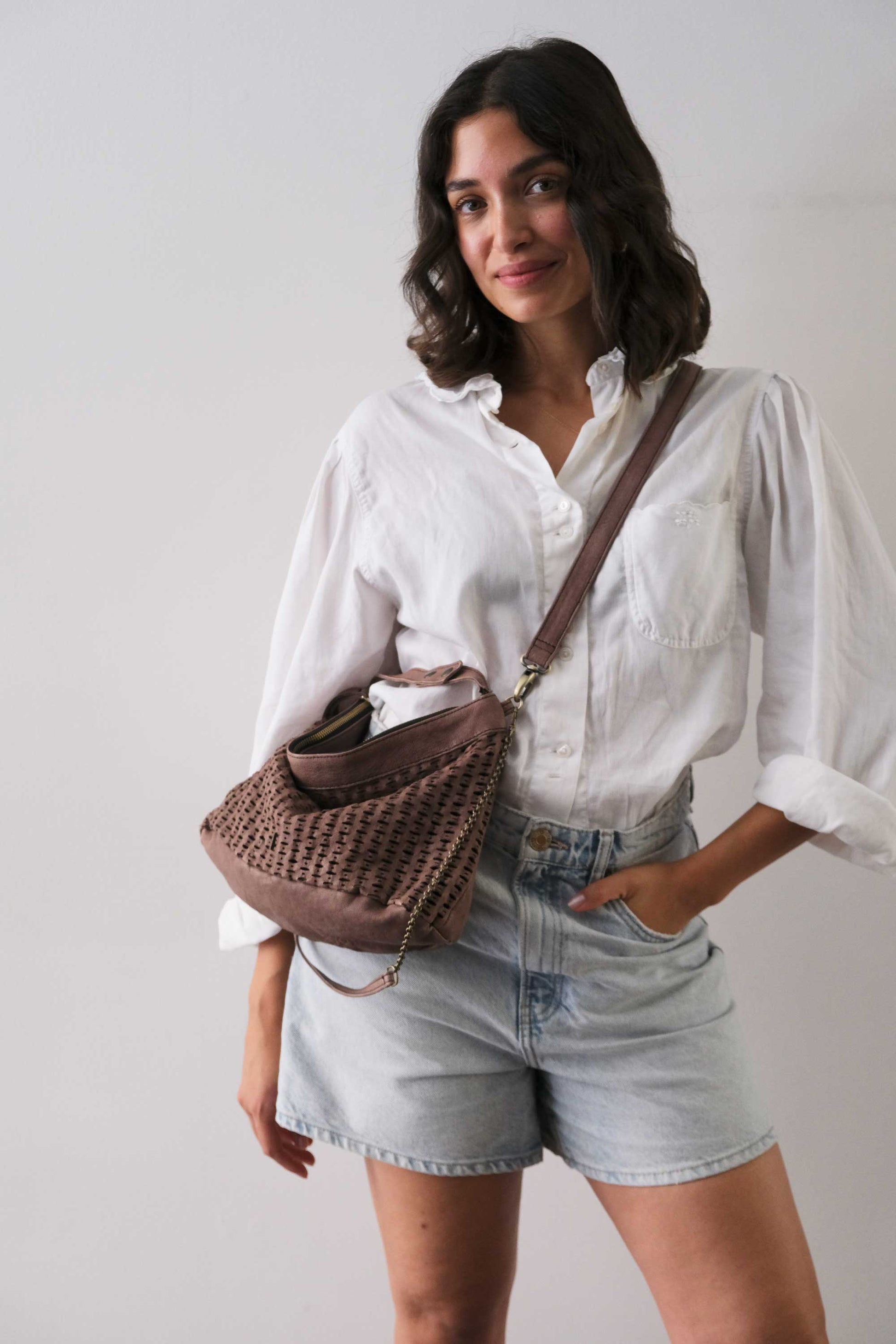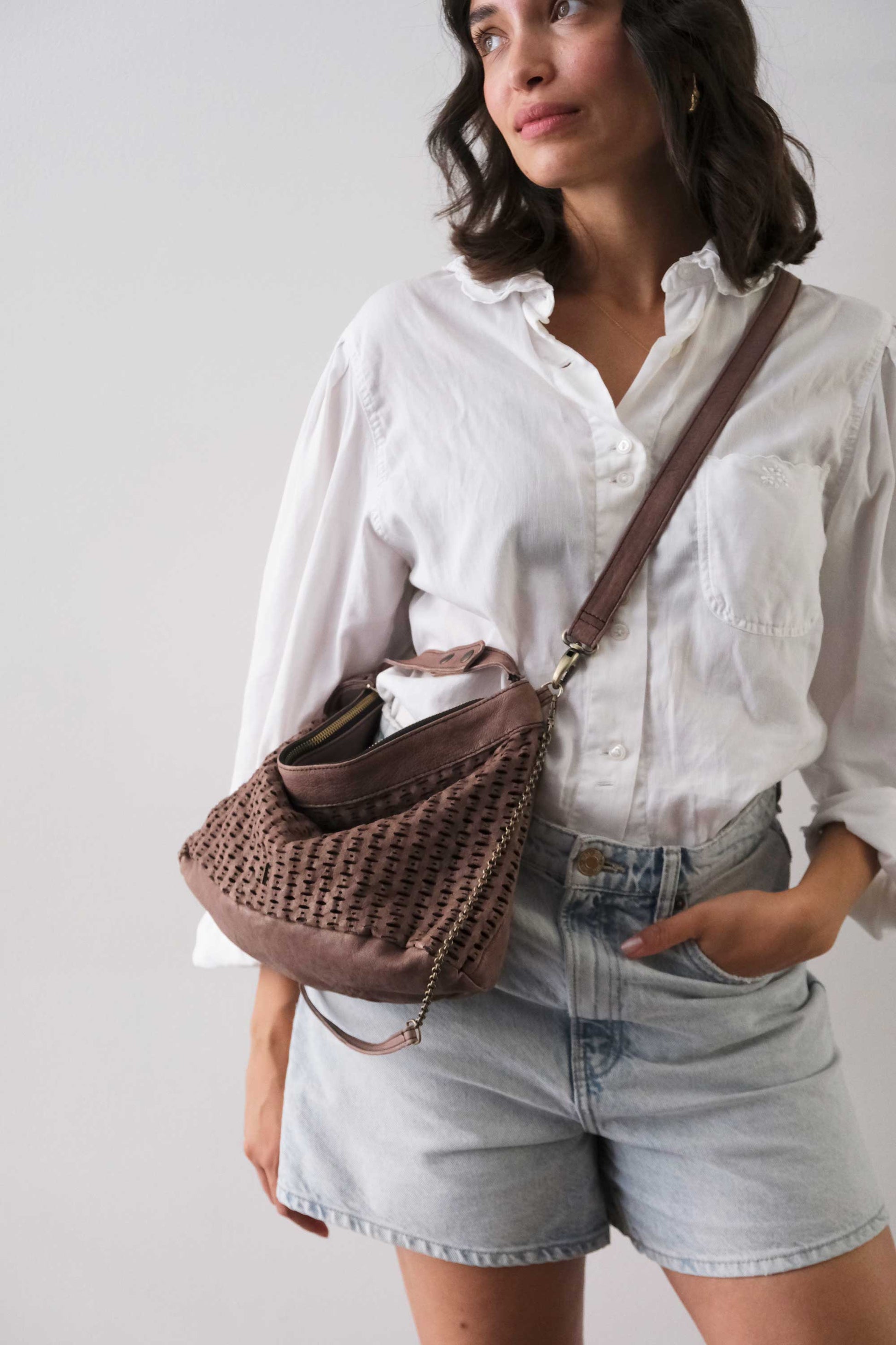 Chicca Medium è una mini hobo ispirata alla titolare di uno dei primi negozi che hanno creduto nelle borse Mialuis. Ne incarna la personalità coraggiosa e pratica, aperta al nuovo e all’insolito. Passare del tempo con lei è un’esperienza sensoriale vera, fatta di colore ed energia.