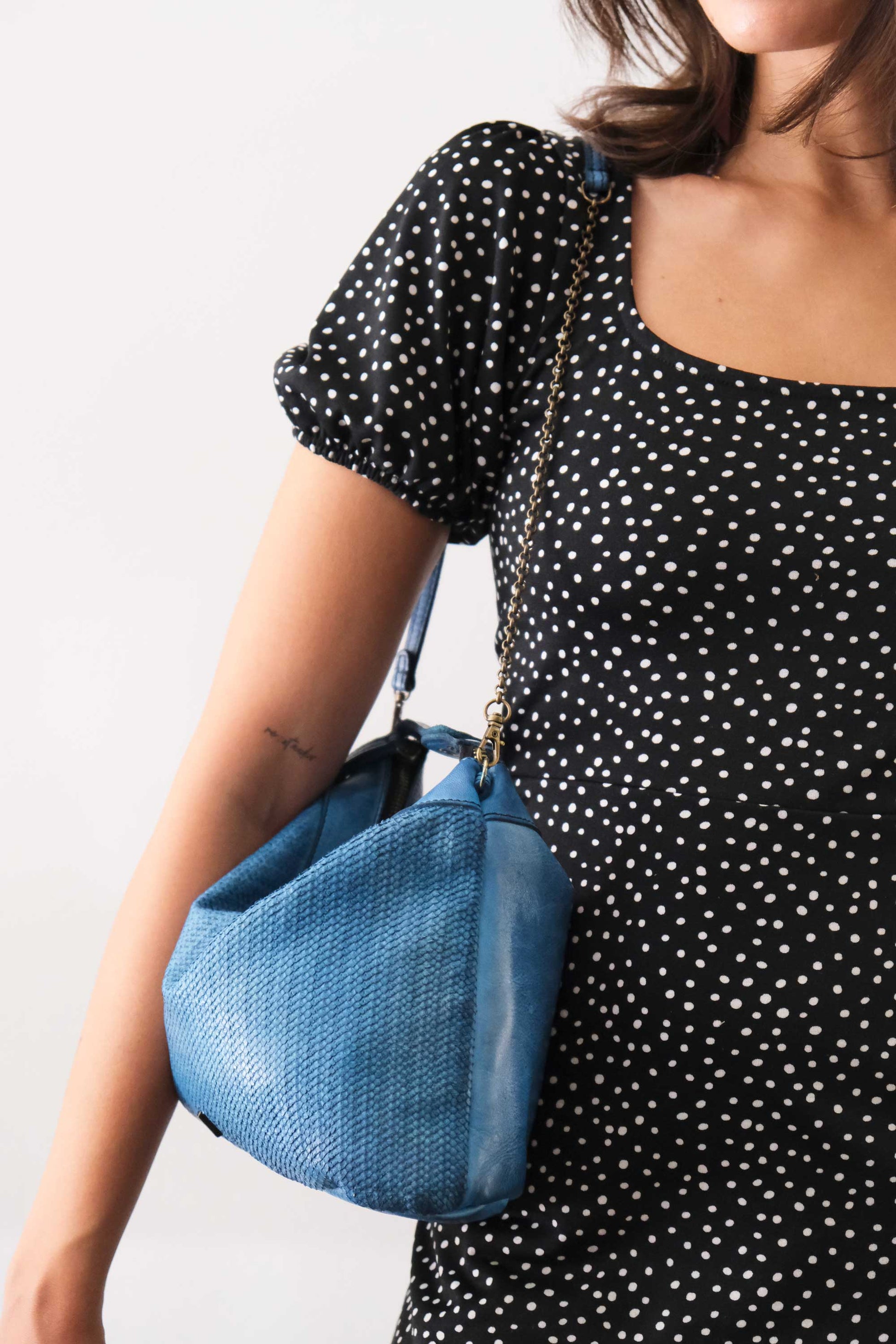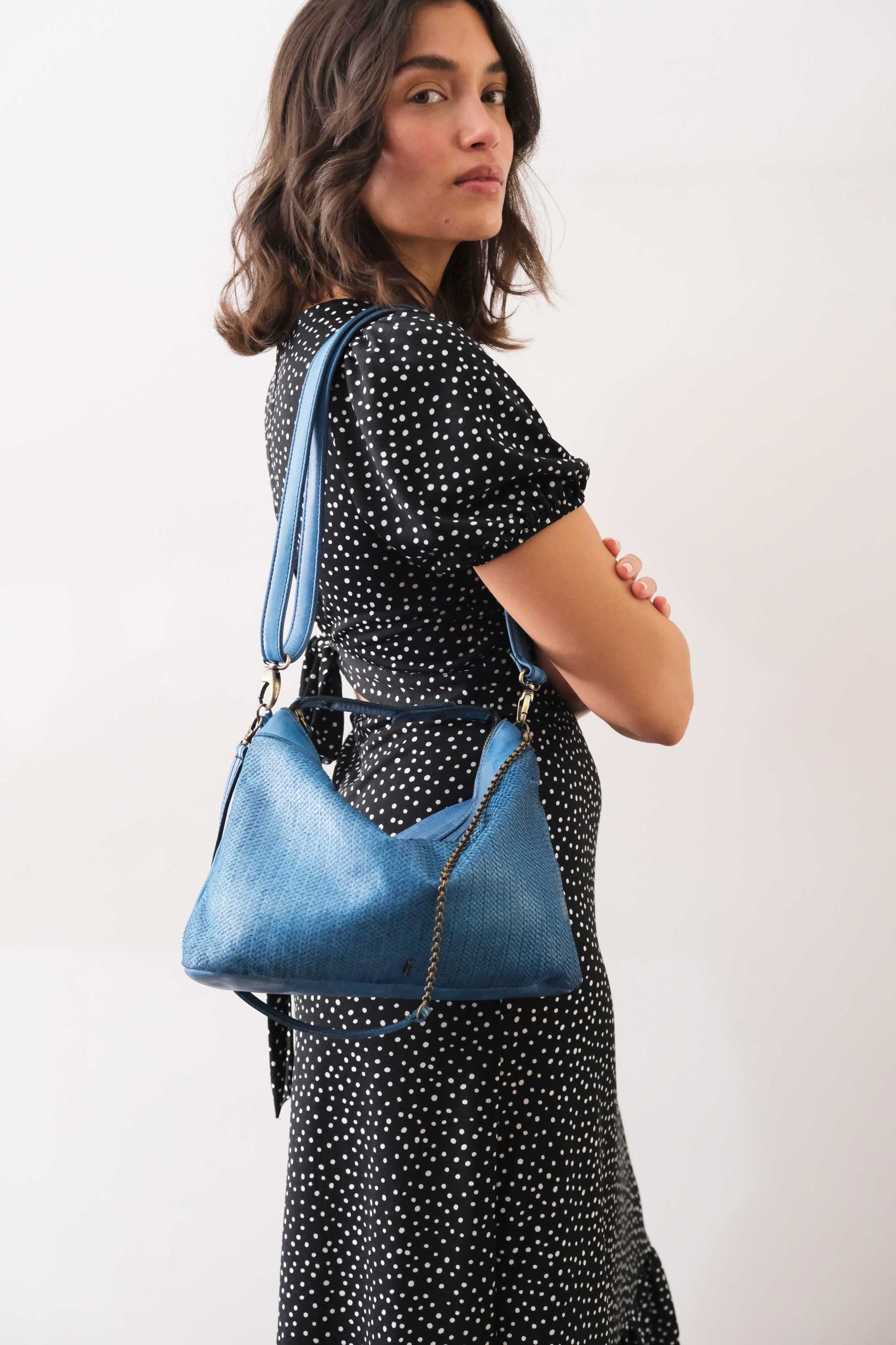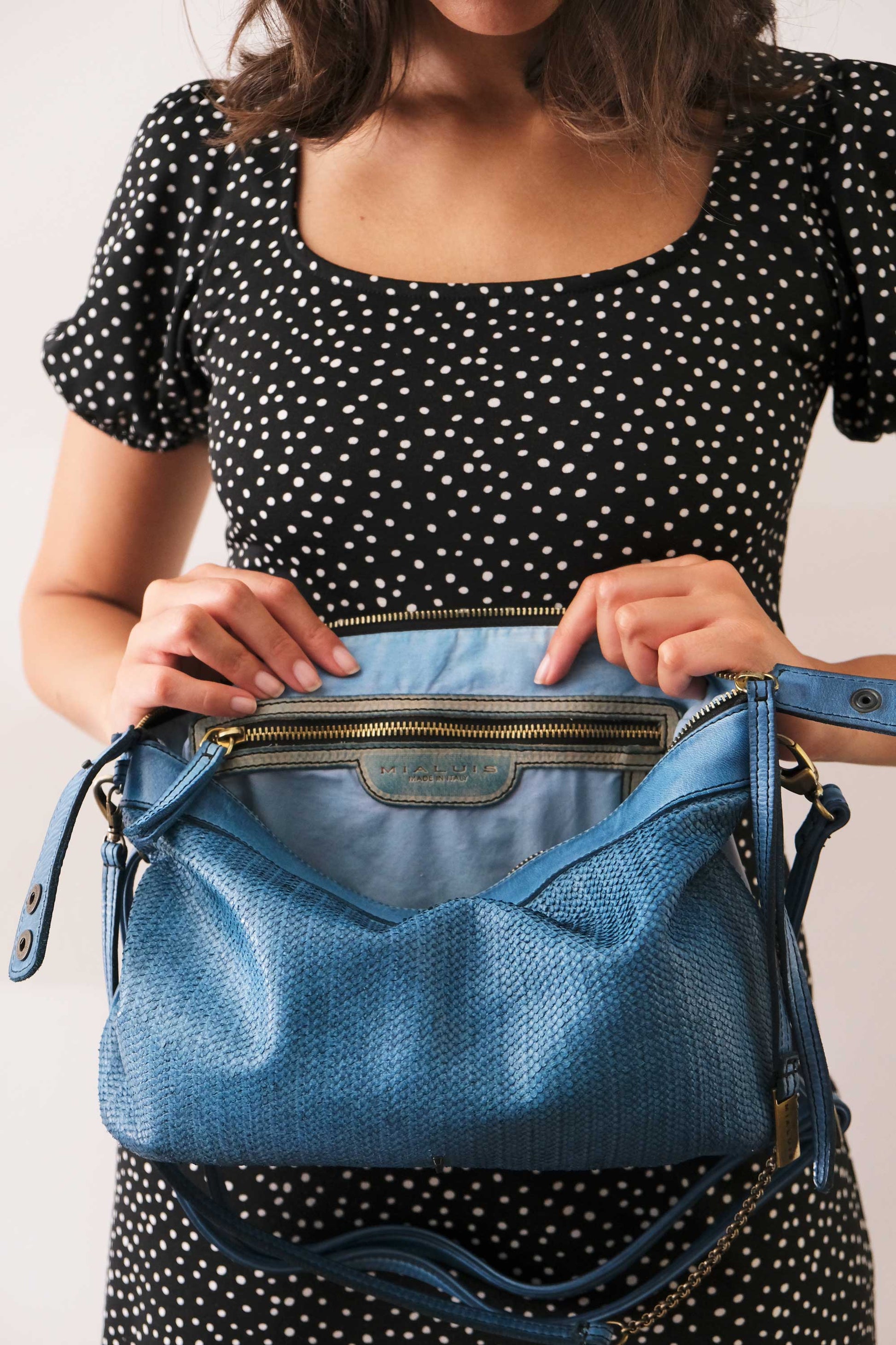 Chicca Medium è una mini hobo ispirata alla proprietaria di uno dei primi negozi ad aver acquistato le borse Mialuis. Incarna il suo modo di essere: coraggiosa, pratica, aperta a ciò che è nuovo e insolito. Trascorrere del tempo con lei è una vera esperienza sensoriale, piena di colore ed energia.