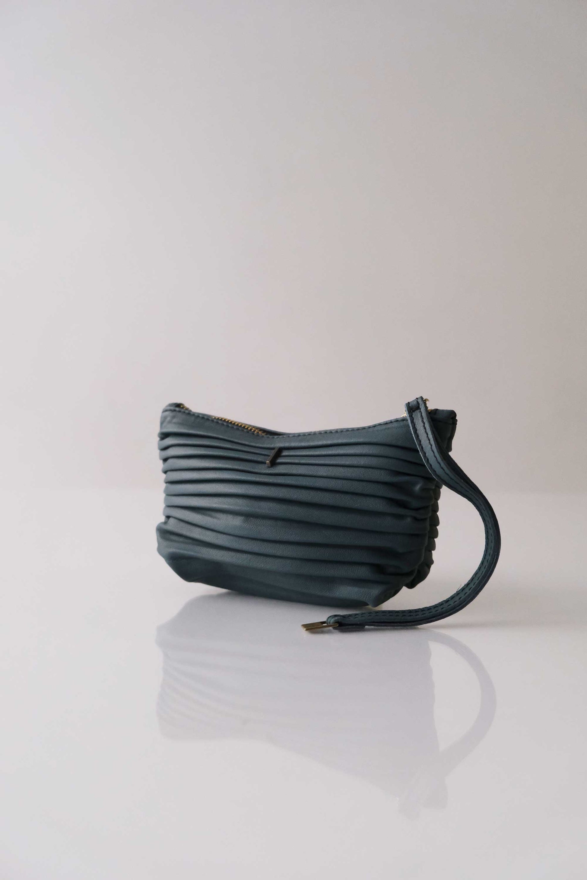 Dream stretch pochette in teal pleated leather - Made in Italy -