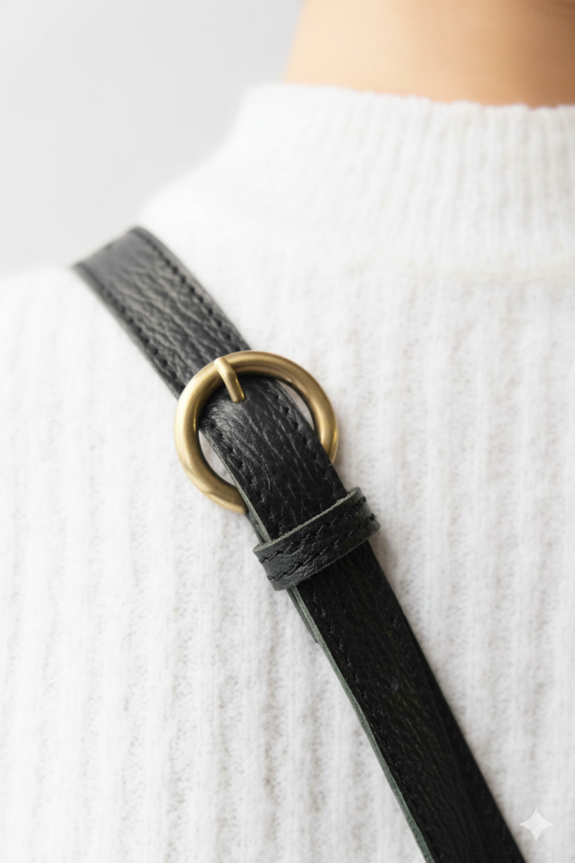 Mikin black pochette in vegetable-tanned leather – Made in Italy -