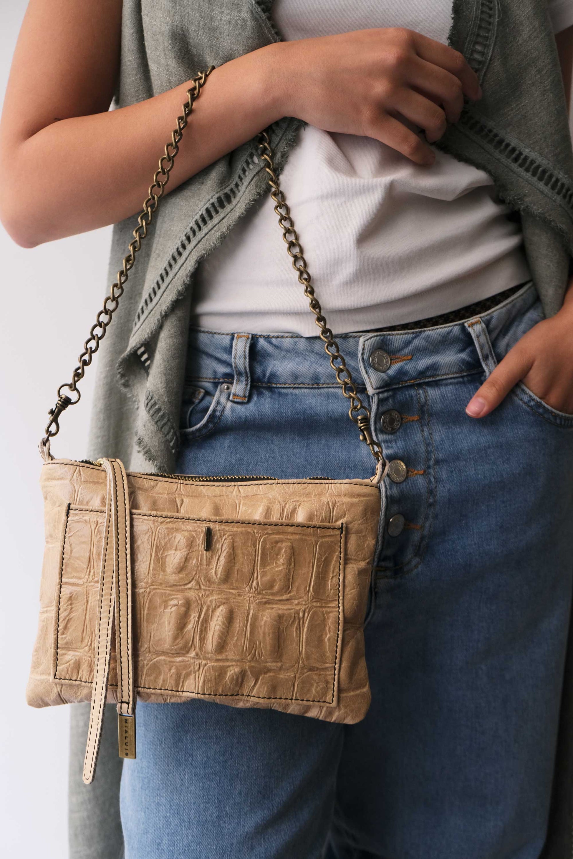 Pochette Mikin in vitello nocciola - Made in Italy-