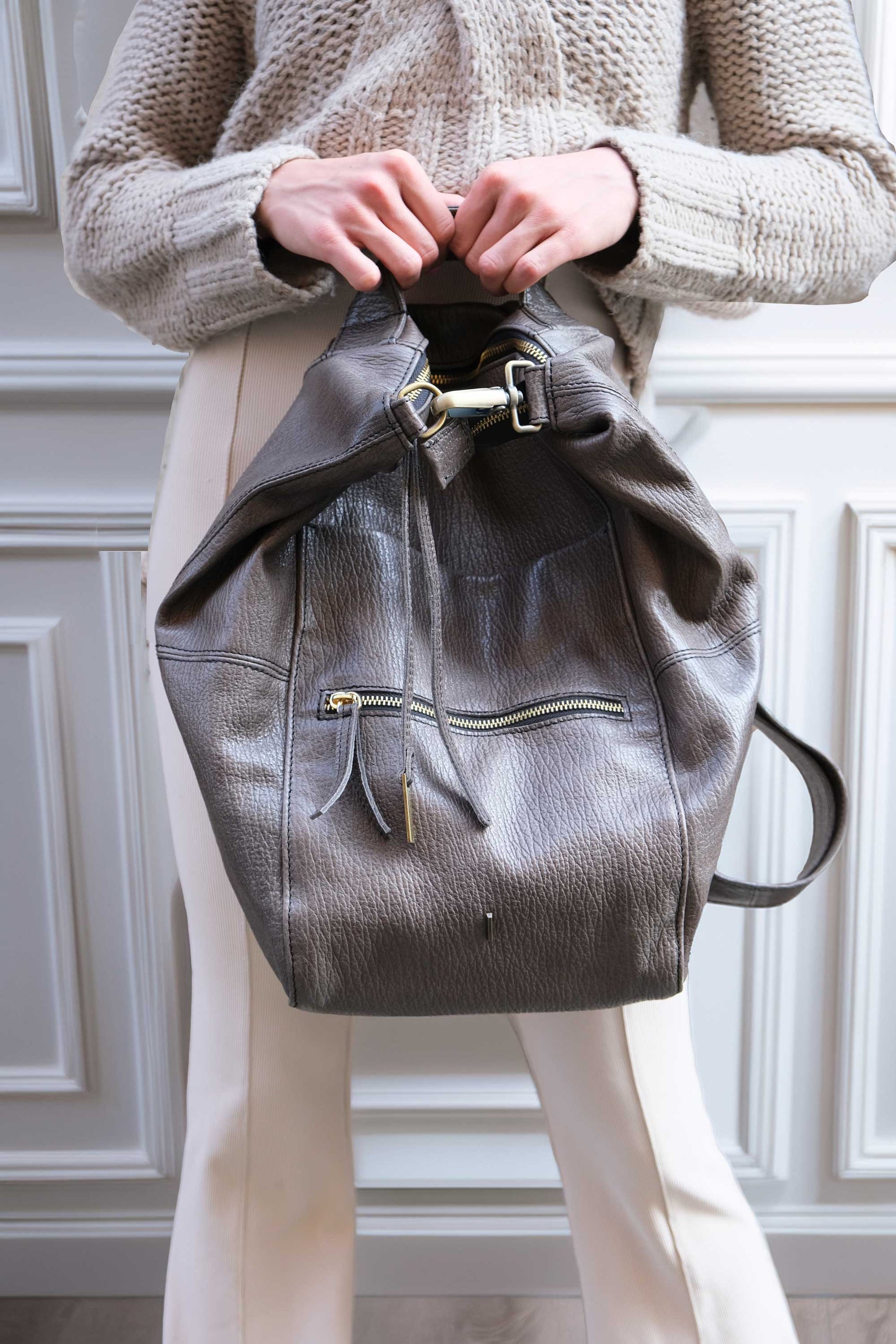 Alternatively, you can fold it onto itself using the side clasp — this not only provides extra security but also gives the backpack a softer, more fluid silhouette.
