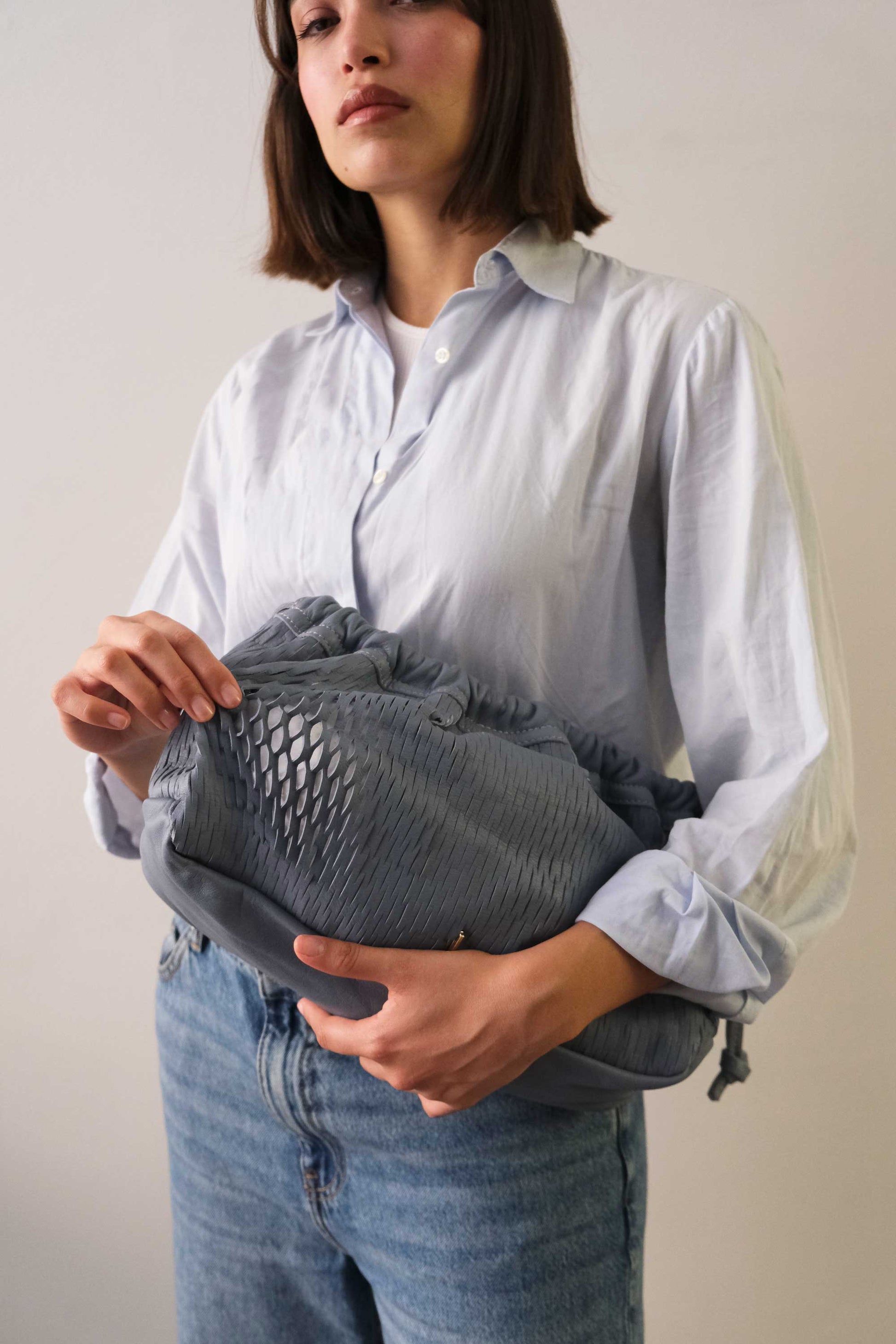 Introducing the Agnes bucket, a versatile choice to face with elegance and lightness the modern woman's daily routine. Agnes in perforated leather. You can wear it on the shoulder or by hand. In this version, it is made from mineral-tanned leather and then perforated with a plate, creating a mesh texture that adds depth to the design. The entire manufacturing process is carried out in Italy at a company that is 66% female-owned.