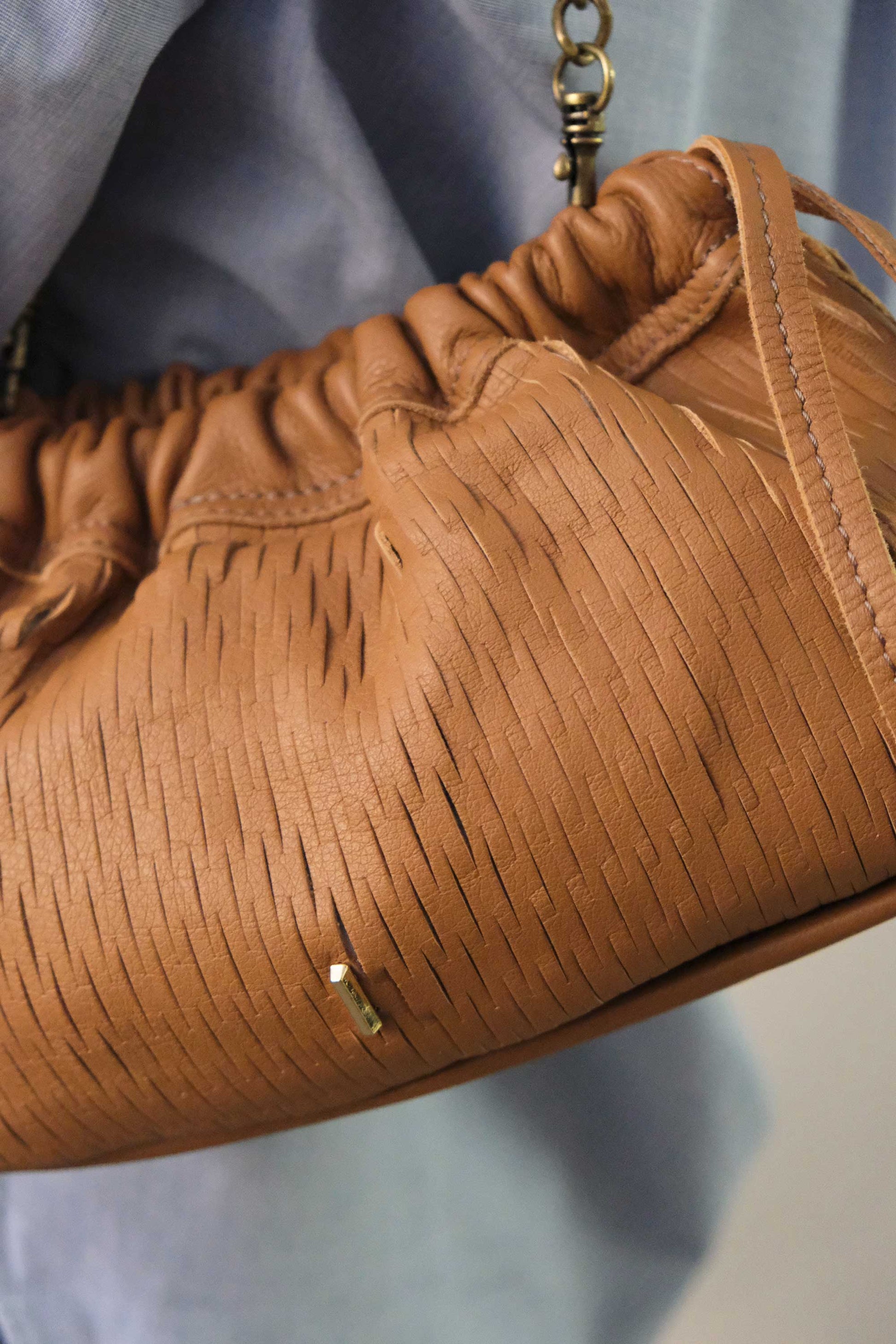 Agnes mini pochette in cognac perforated leather -Made in Italy -