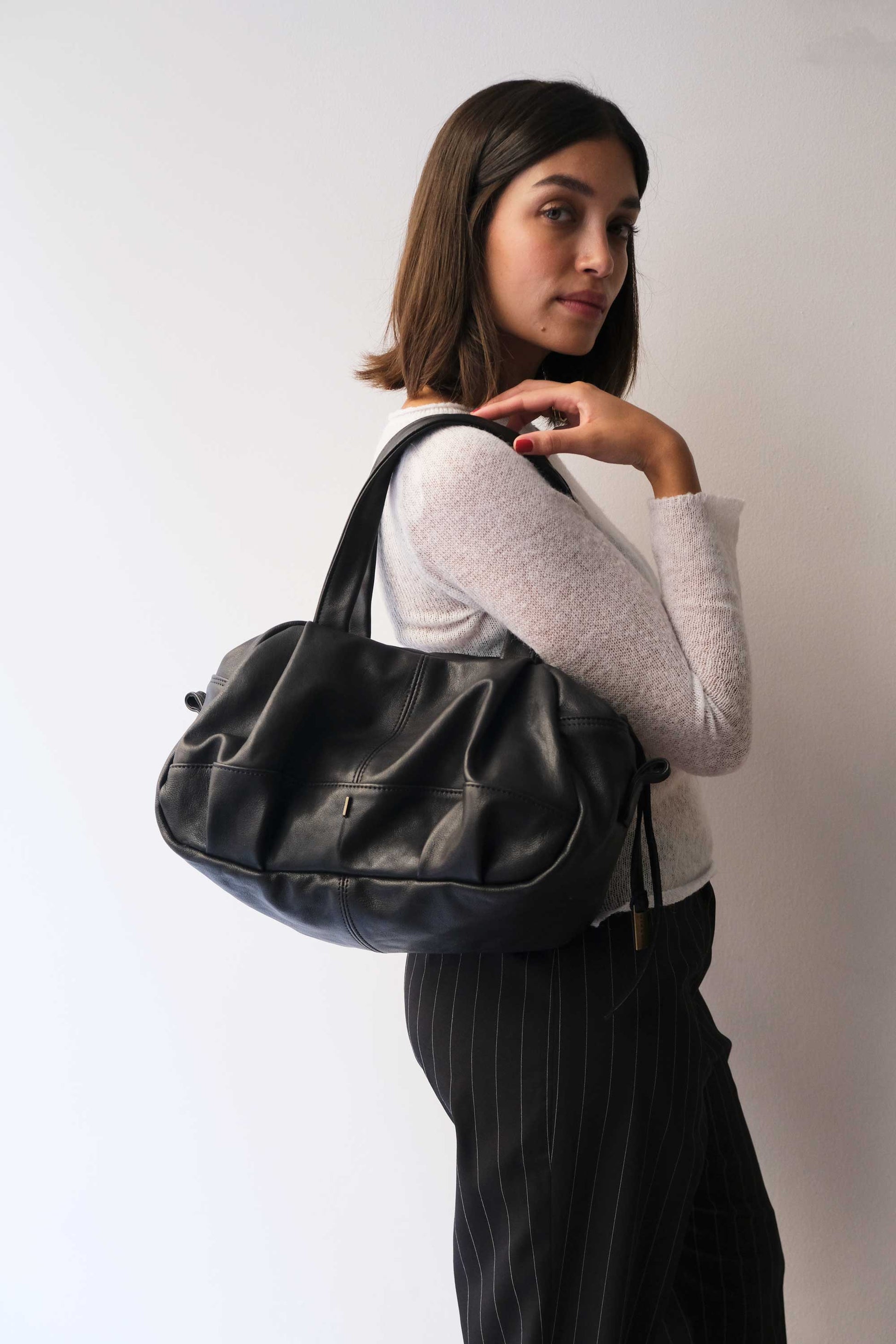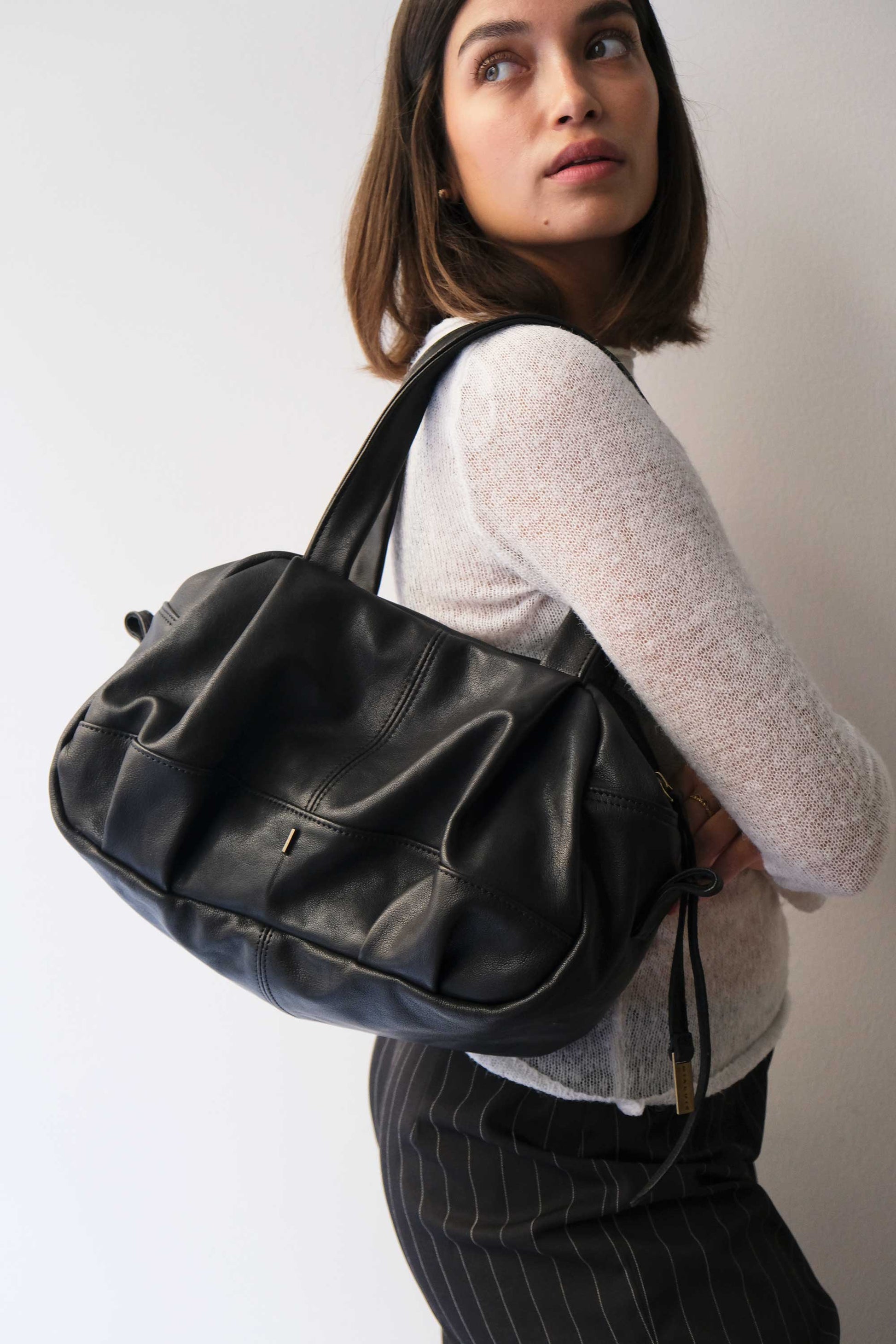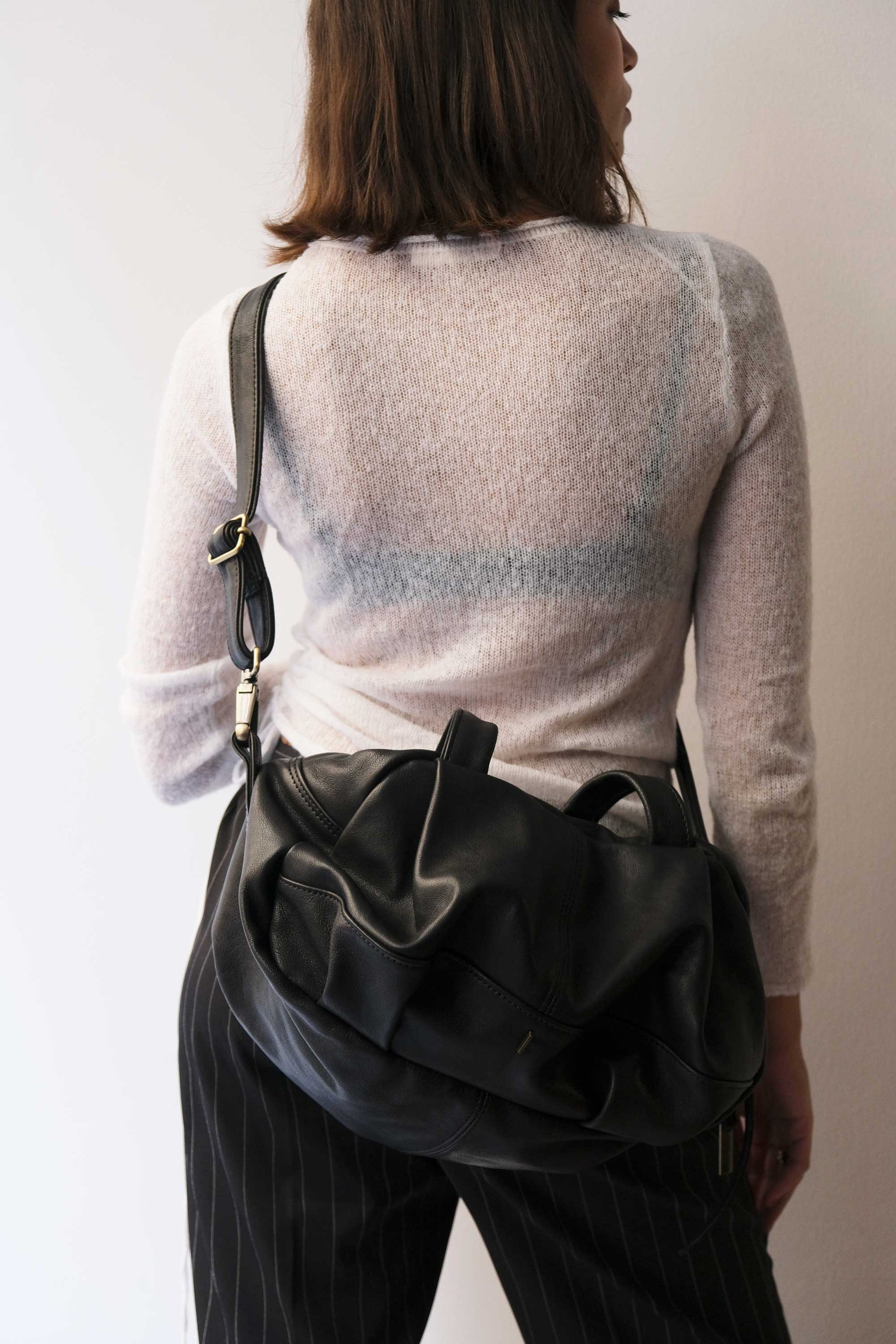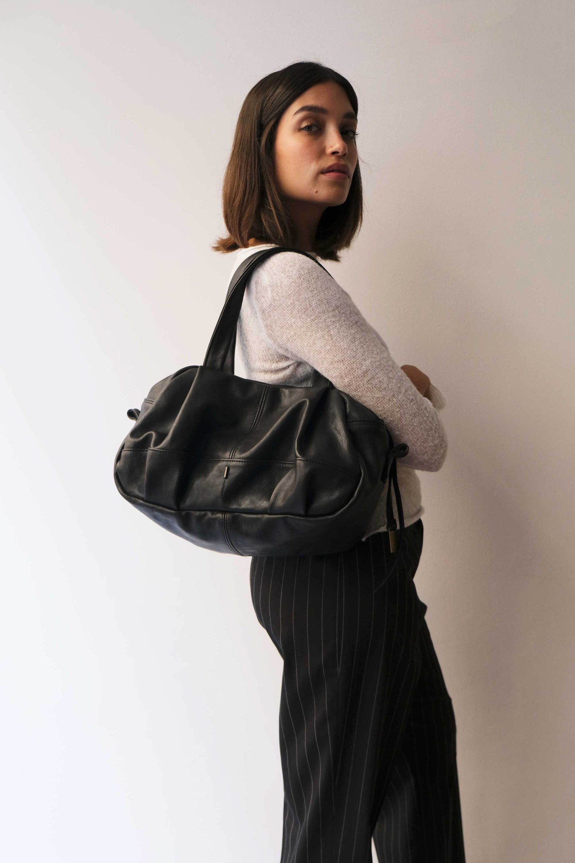 Betty is an interpretation of the Barrel bag. Extremely lightweight, as like all the brand's bags, it is made with very thin leather. It can be worn on the shoulder or crossbody. Very spacious due to the size of the base, but thanks to its softness, if not fully packed, the base contracts, allowing for comfortable portability.