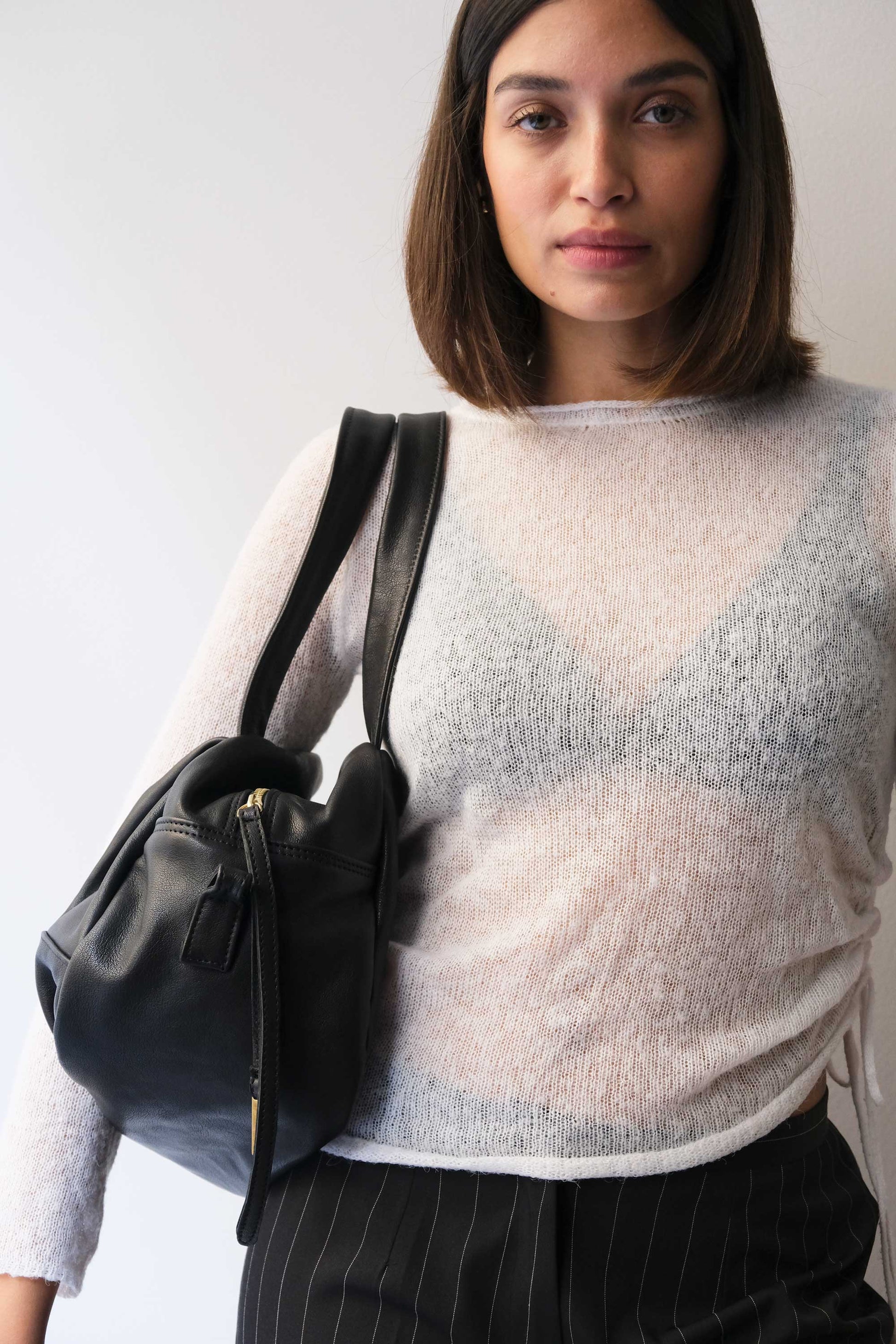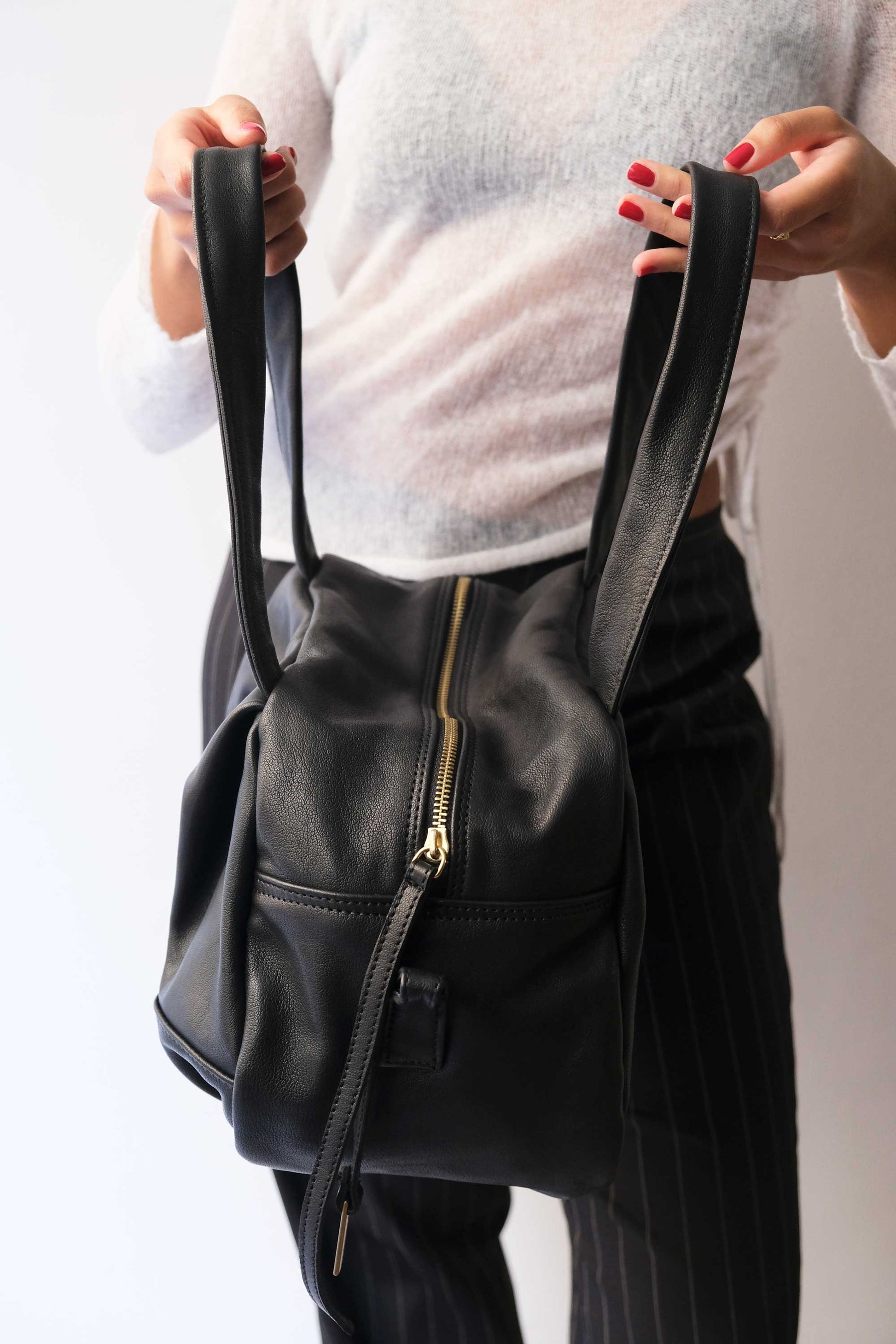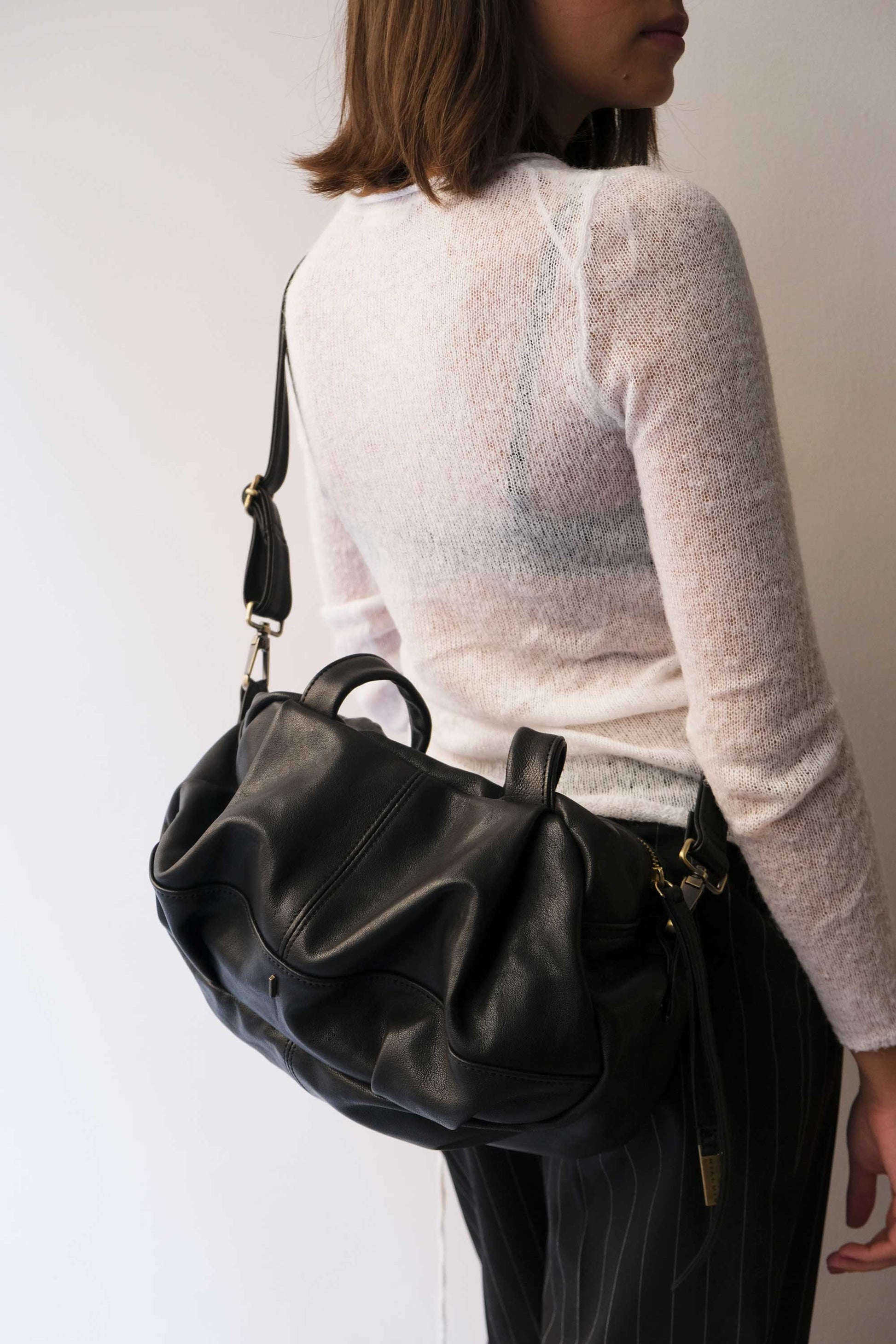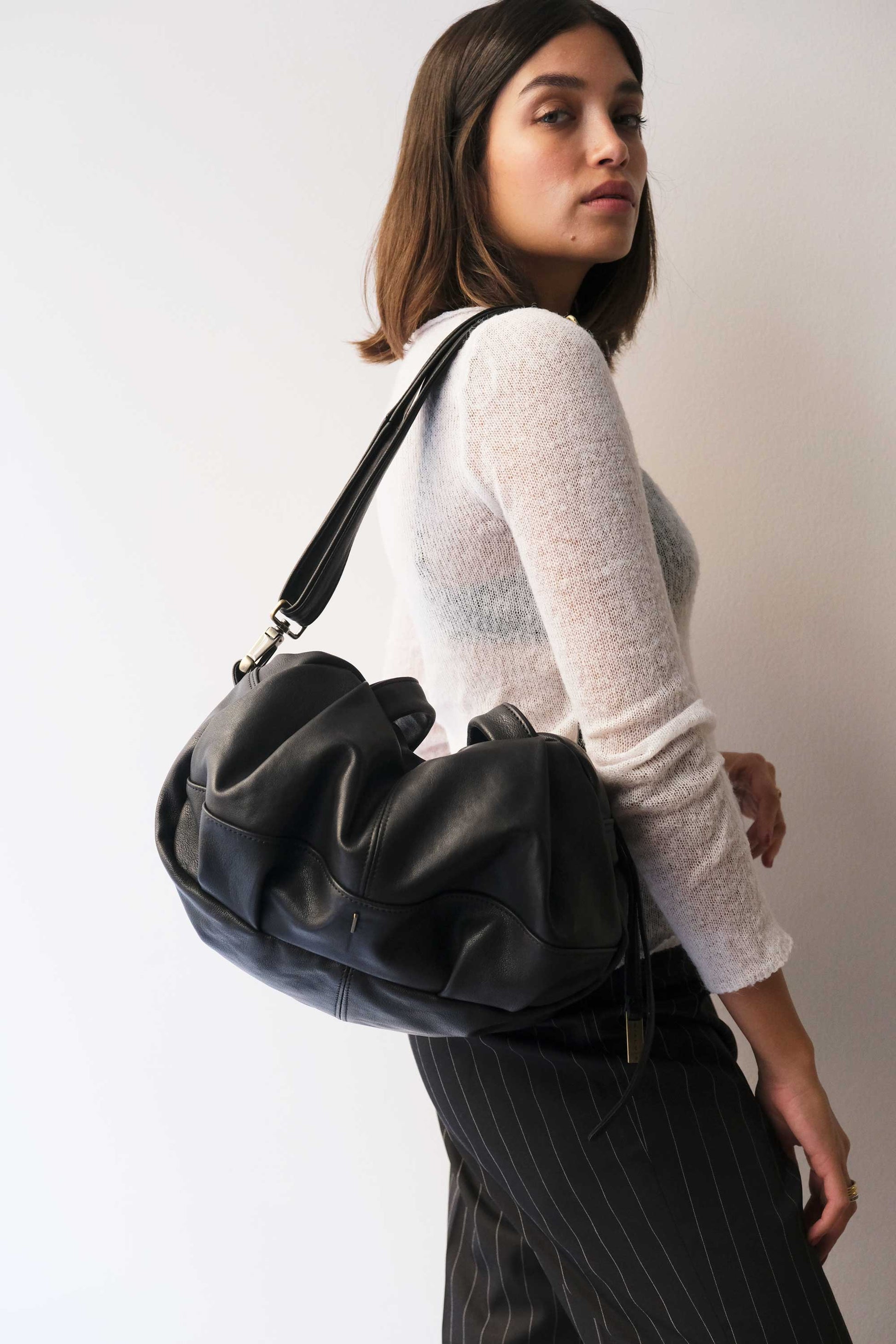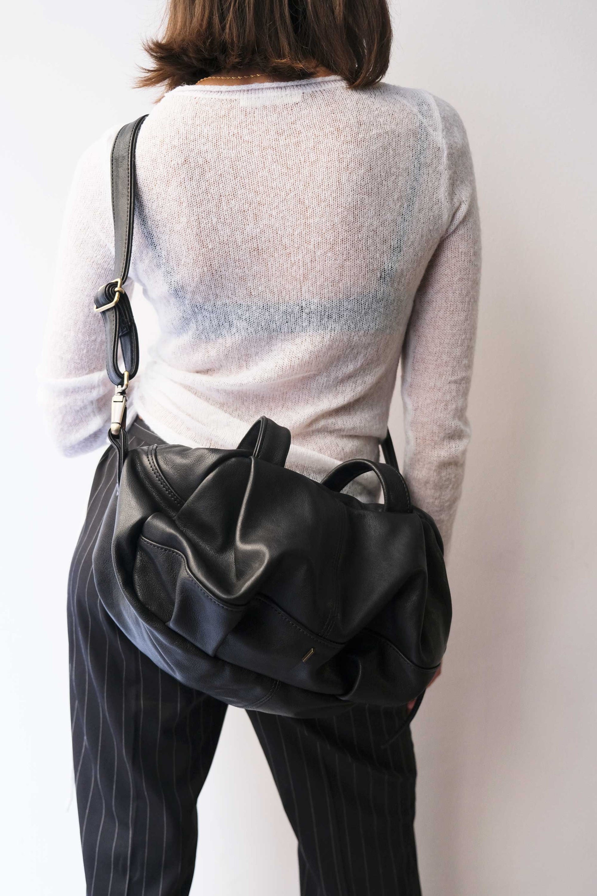 Betty is an interpretation of the Barrel bag. Extremely lightweight, as like all the brand's bags, it is made with very thin leather. It can be worn on the shoulder or crossbody. Very spacious due to the size of the base, but thanks to its softness, if not fully packed, the base contracts, allowing for comfortable portability.