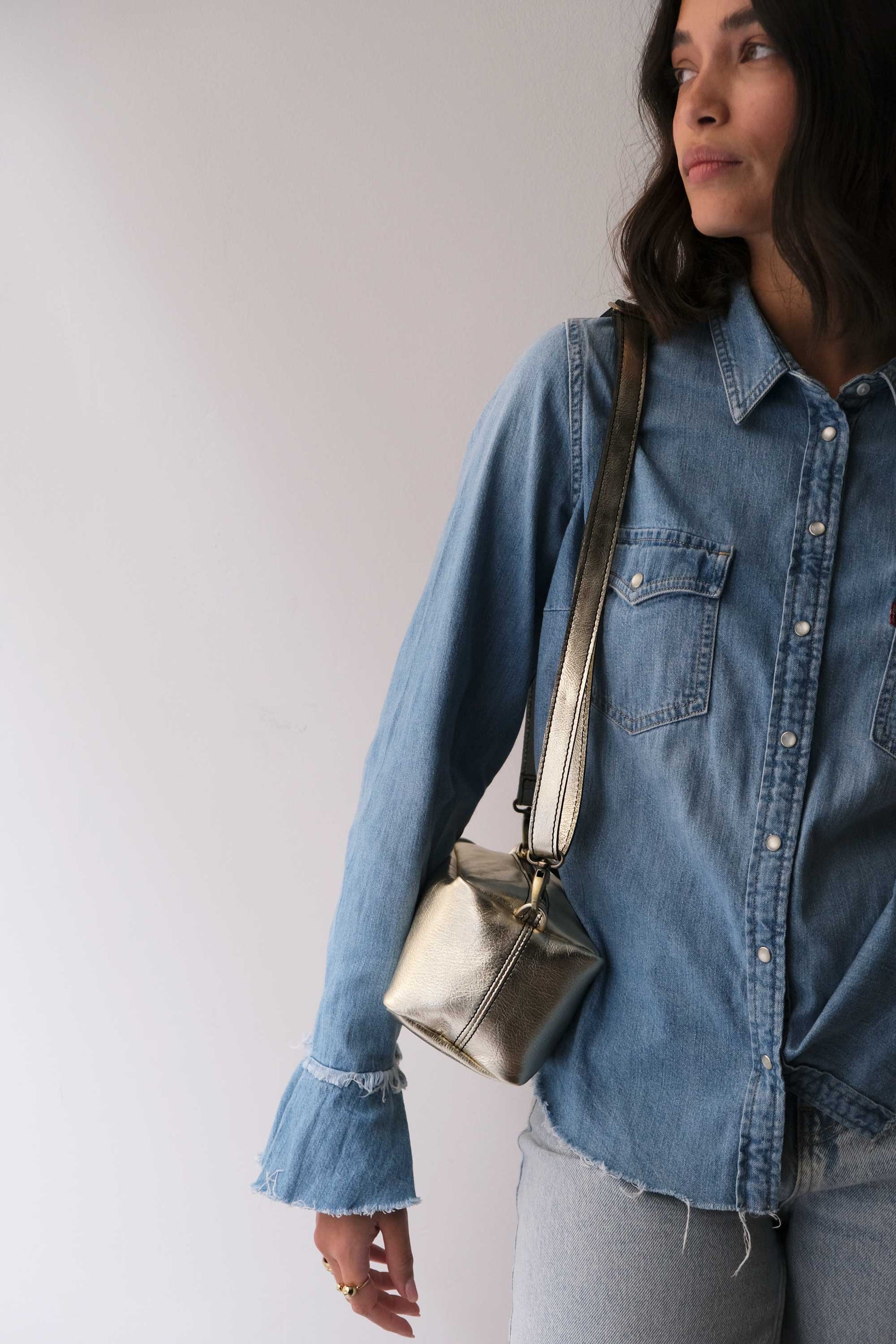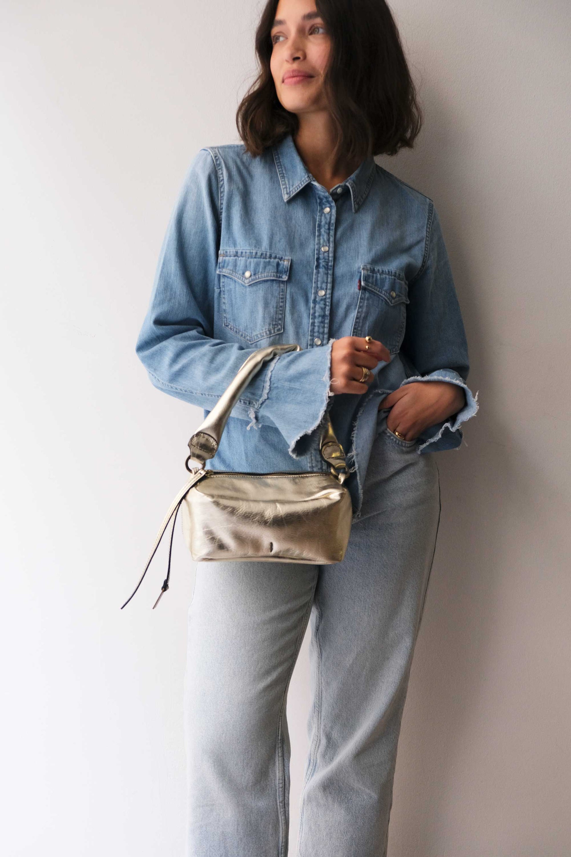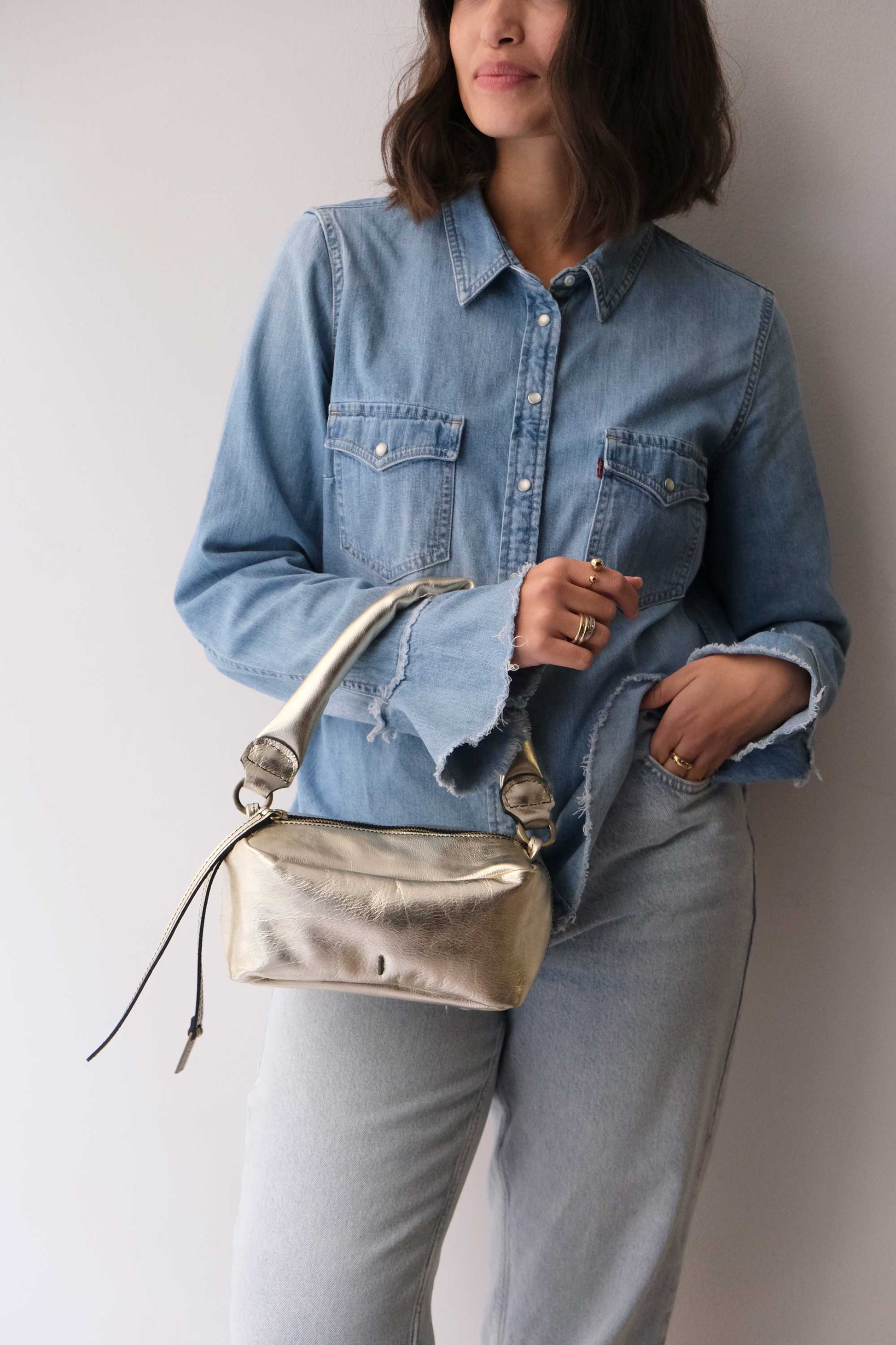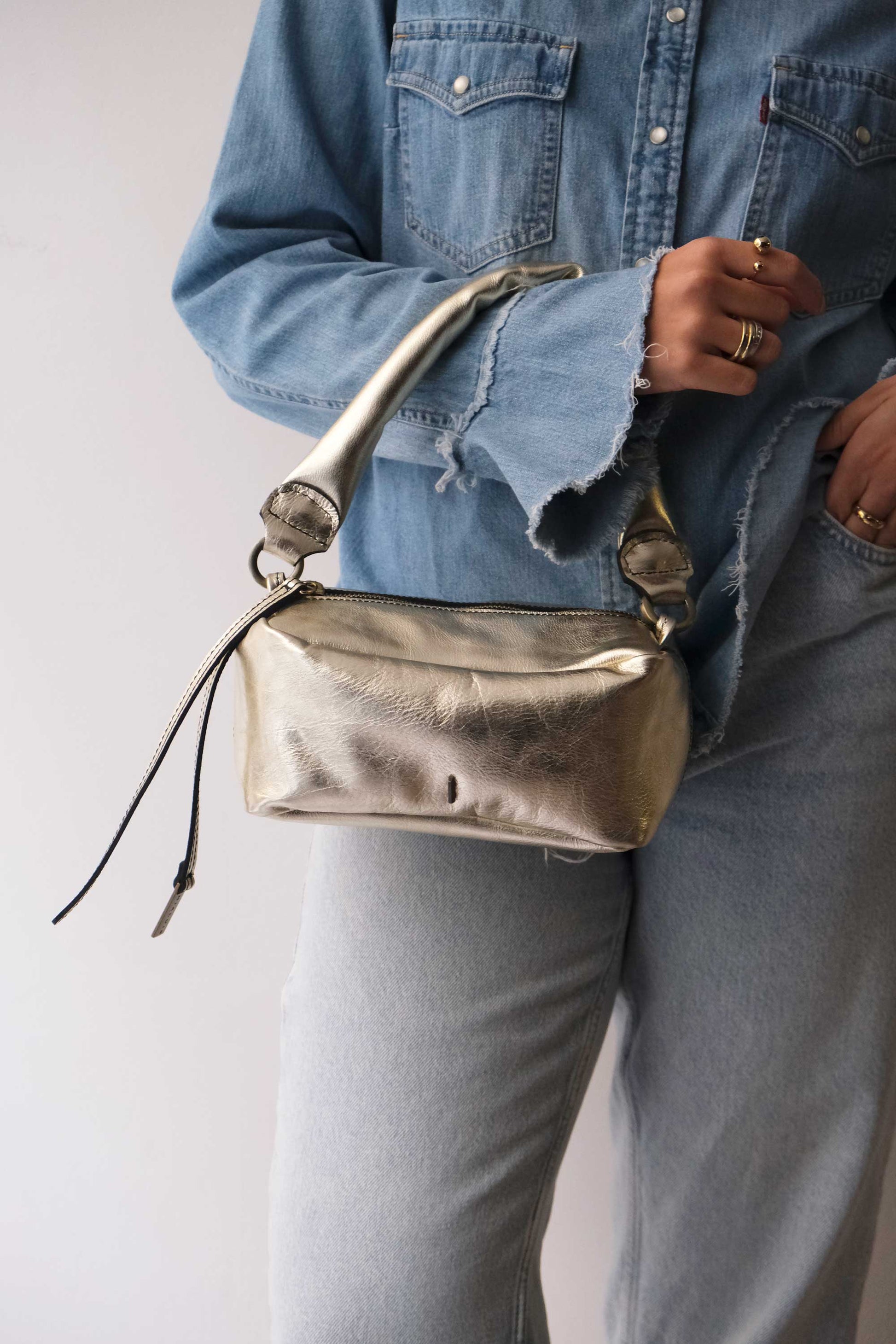 Bobo mini in laminated gold leather nappa - Made in Italy -
