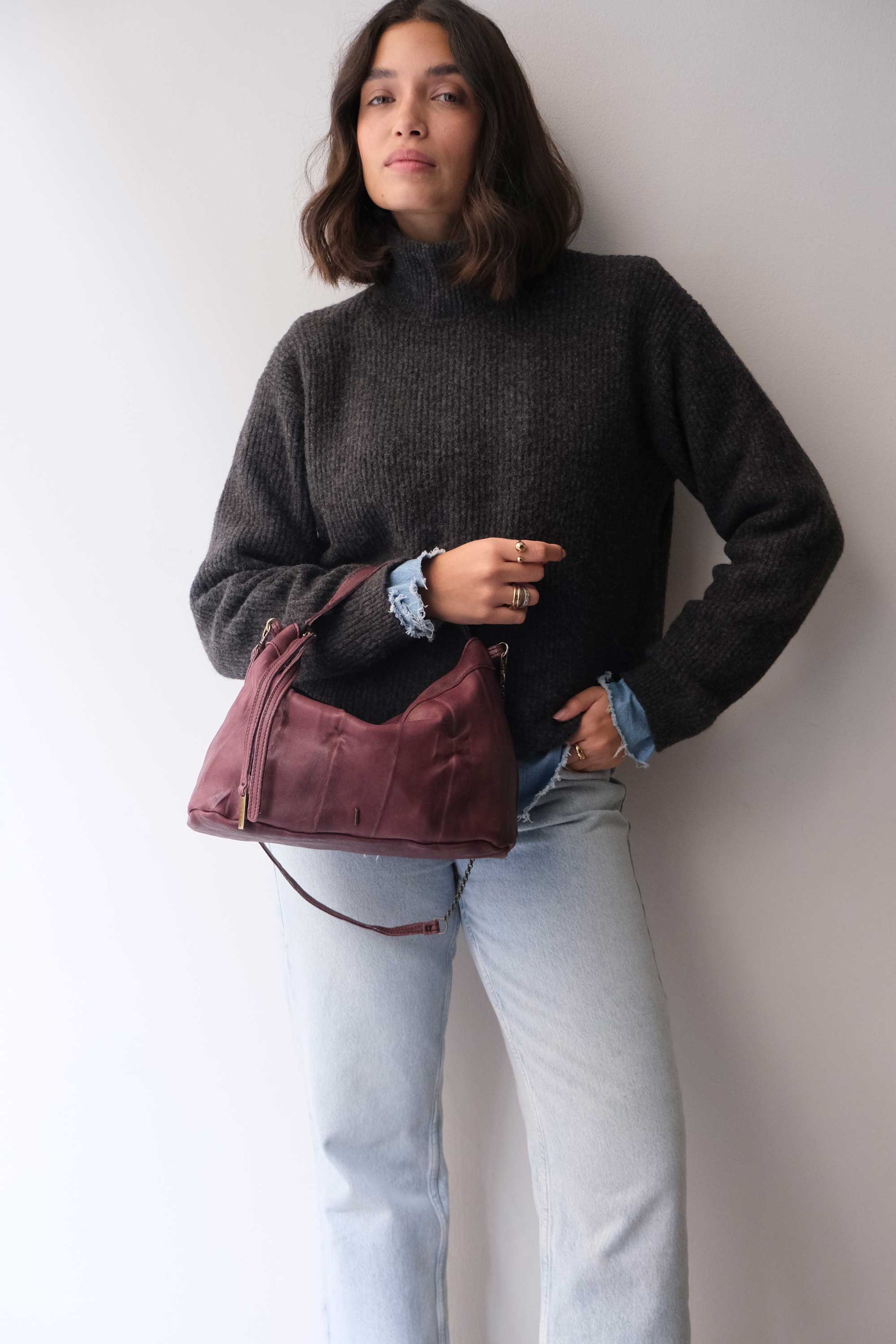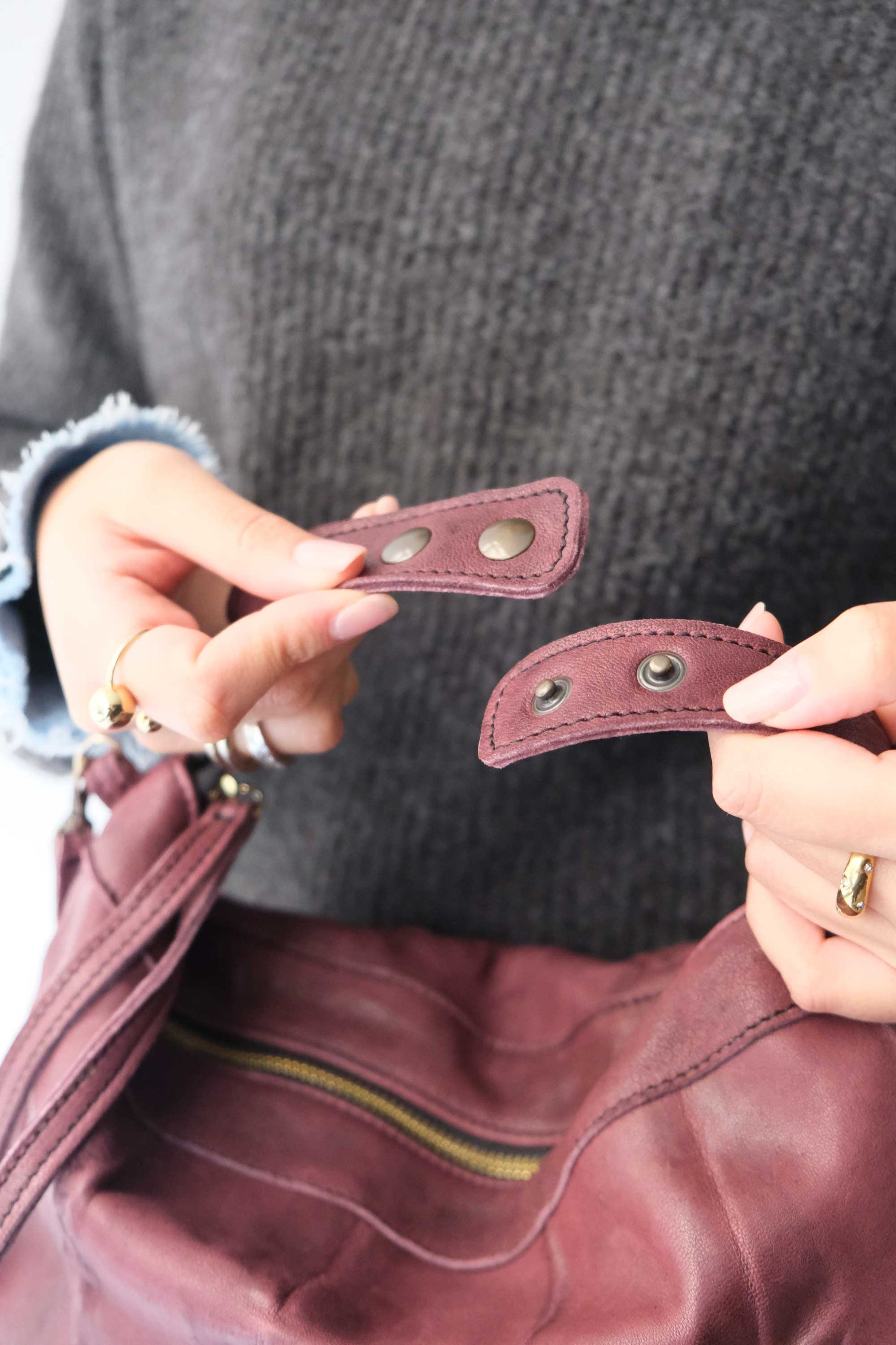 Chicca Media hobo bag in plum lomé nappa - Made in Italy -