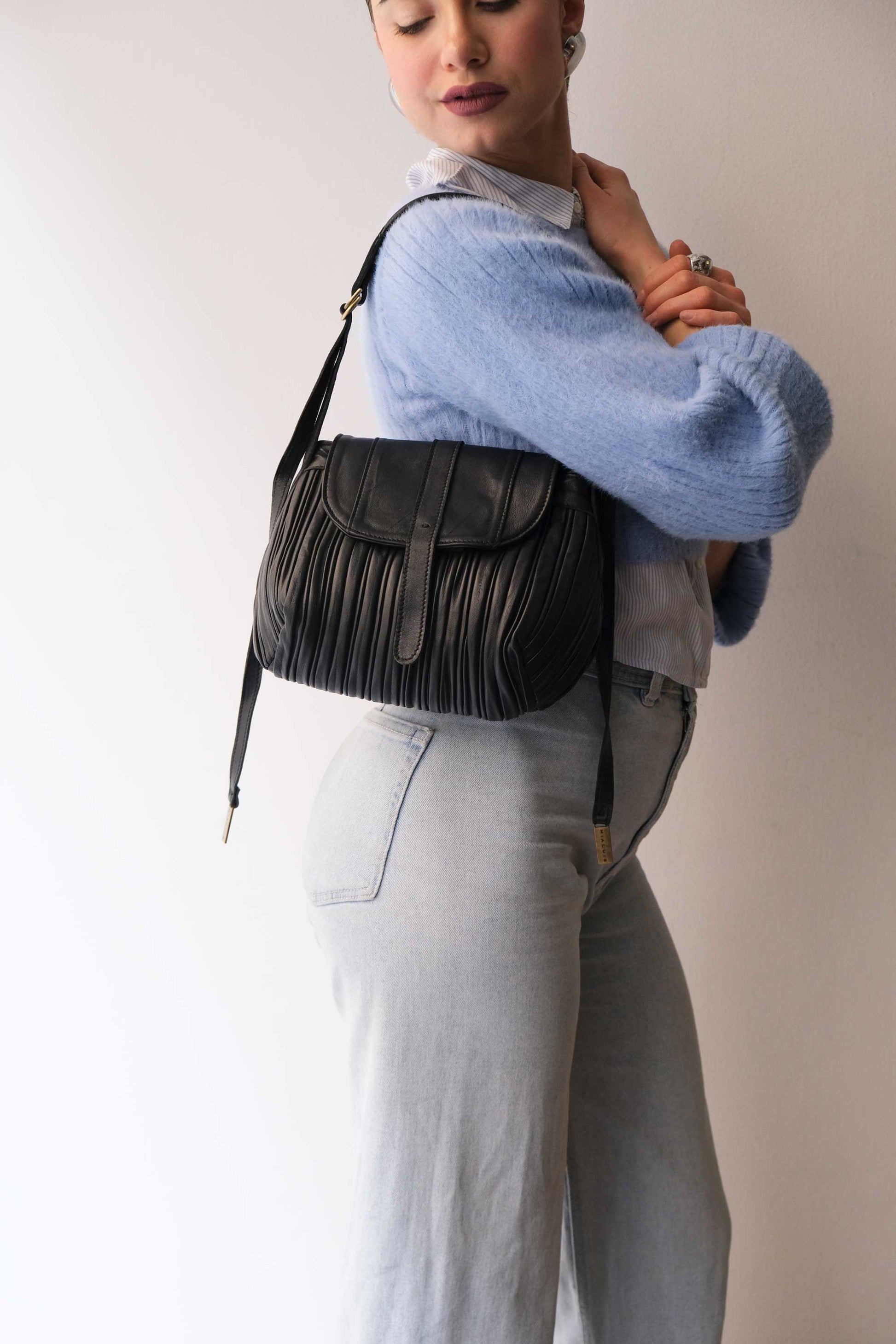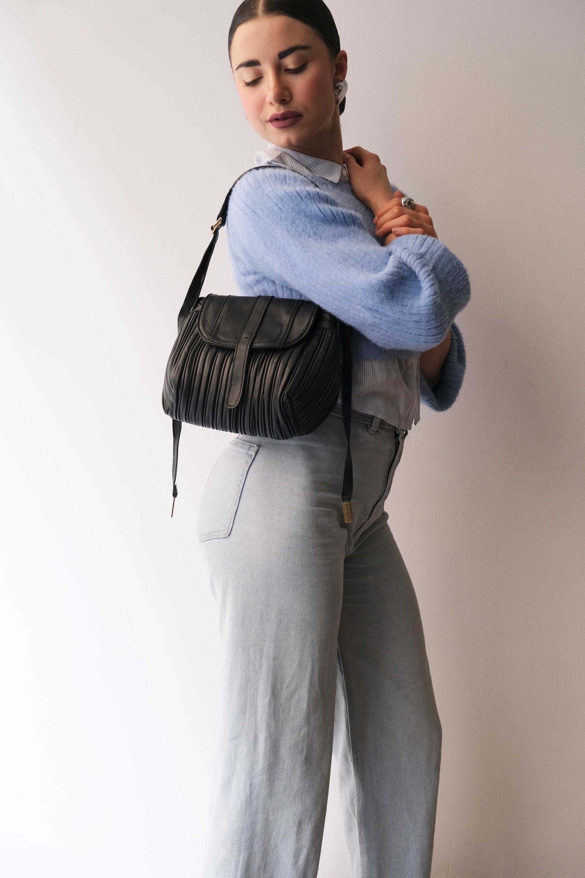 Do mini saddle bag in pleated black colour nappa leather - Made in Italy -