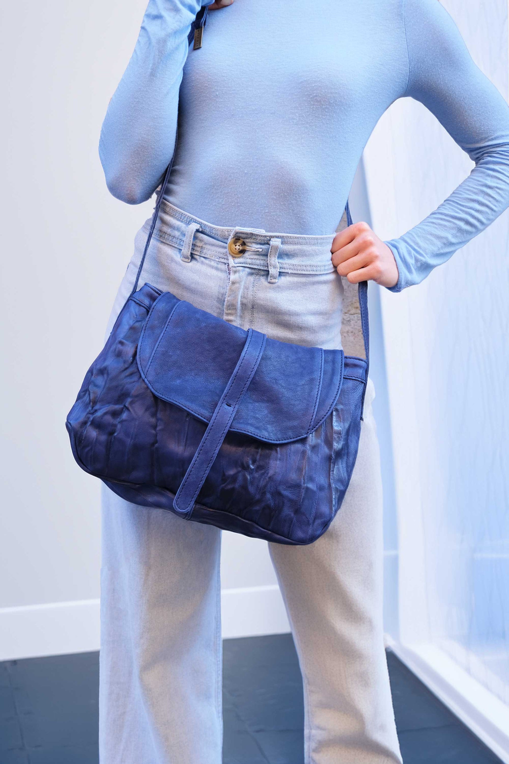 Do saddle bag cobalt in soft nappa lomé - Made in Italy -