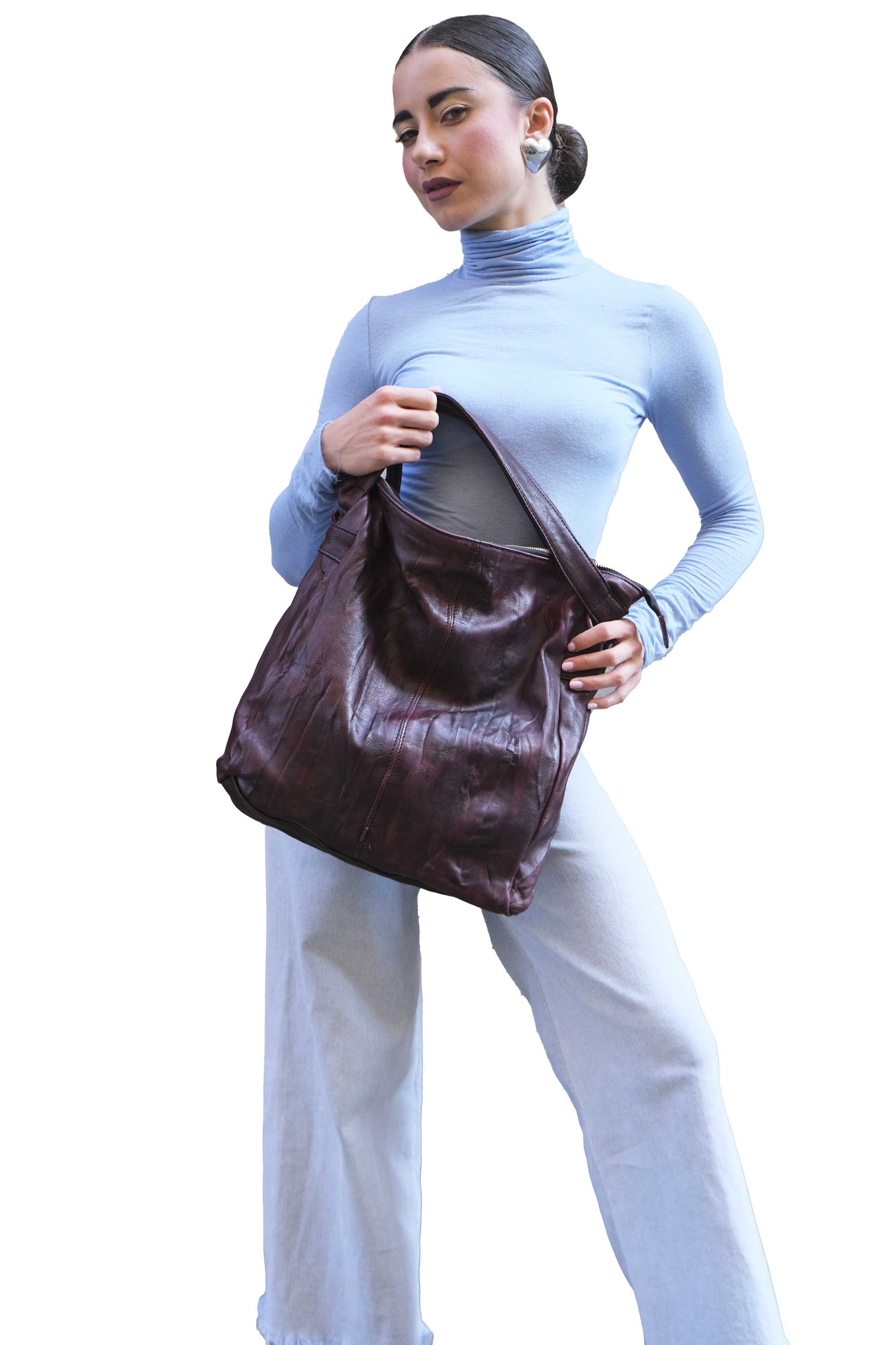 Valy is a versatile shopper bag, designed to be worn comfortably on the shoulder or crossbody. Its essential lines reflect the simplicity of Valeria, the woman who inspired it: practical, genuine, and perfectly suited for everyday life. Like all Mialuis bags, Valy naturally adapts to the needs of the person wearing it.