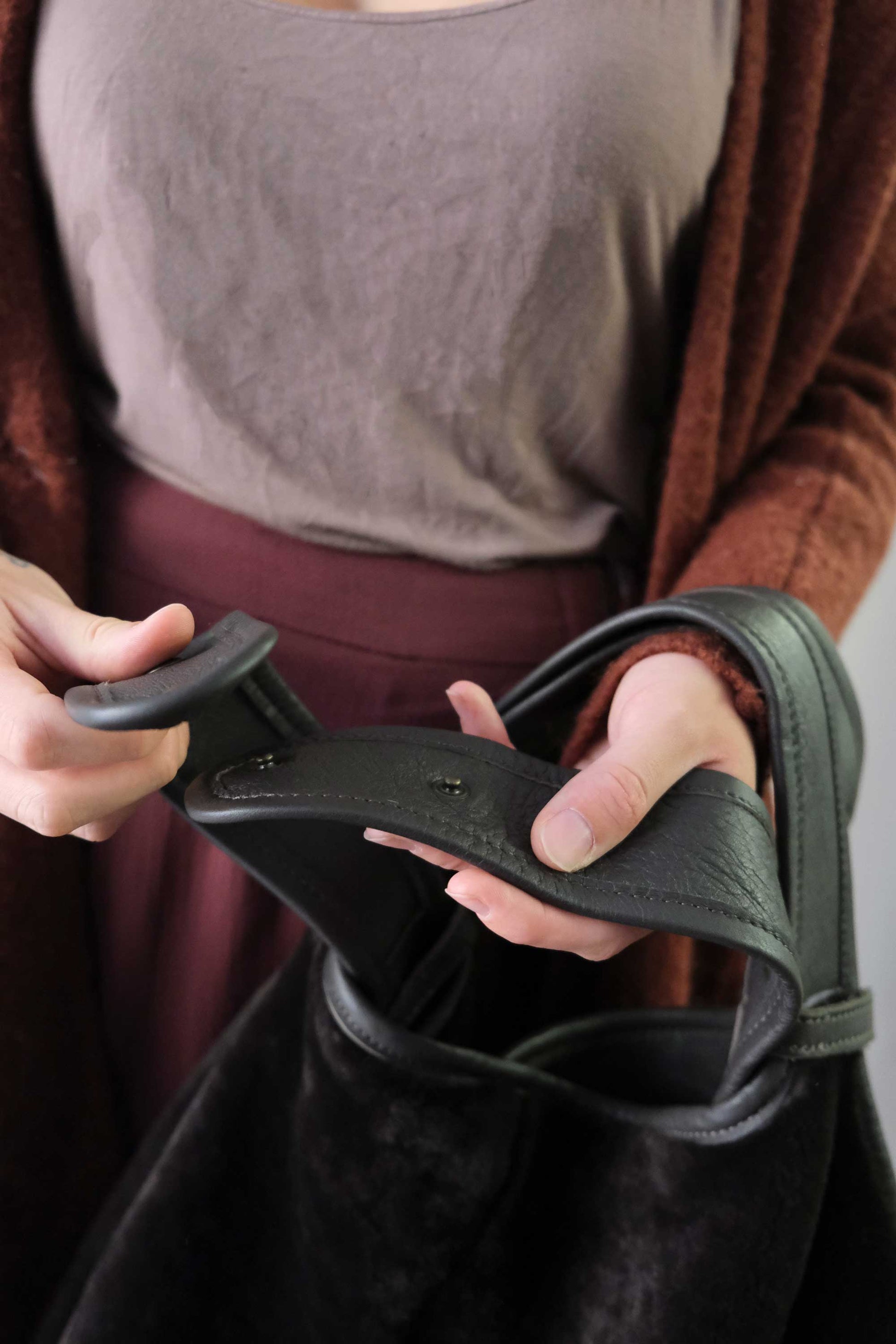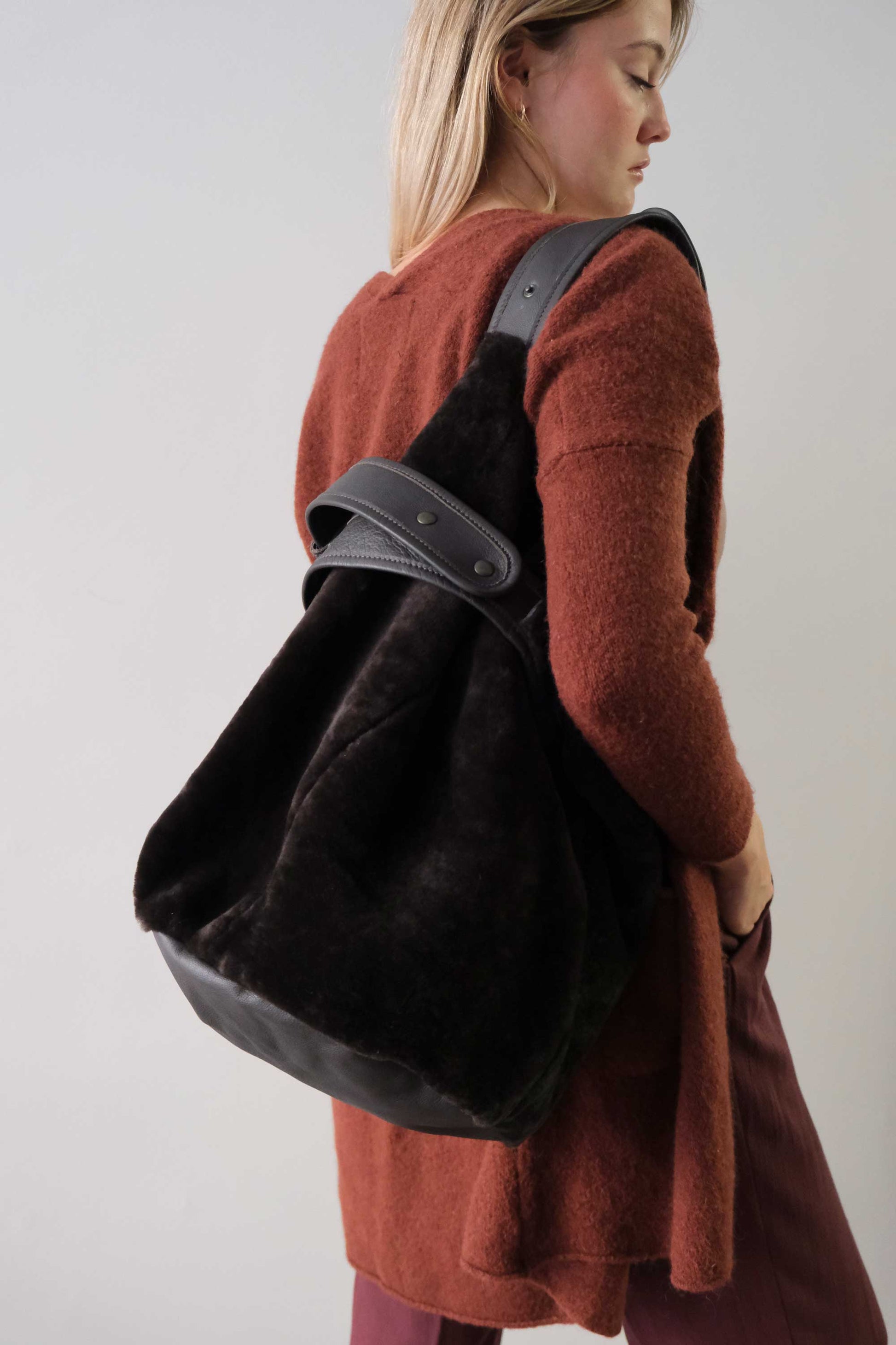 Lena is a roomy and light tote bag. Made with certified sheepskin paired with mineral tanned calf leather.