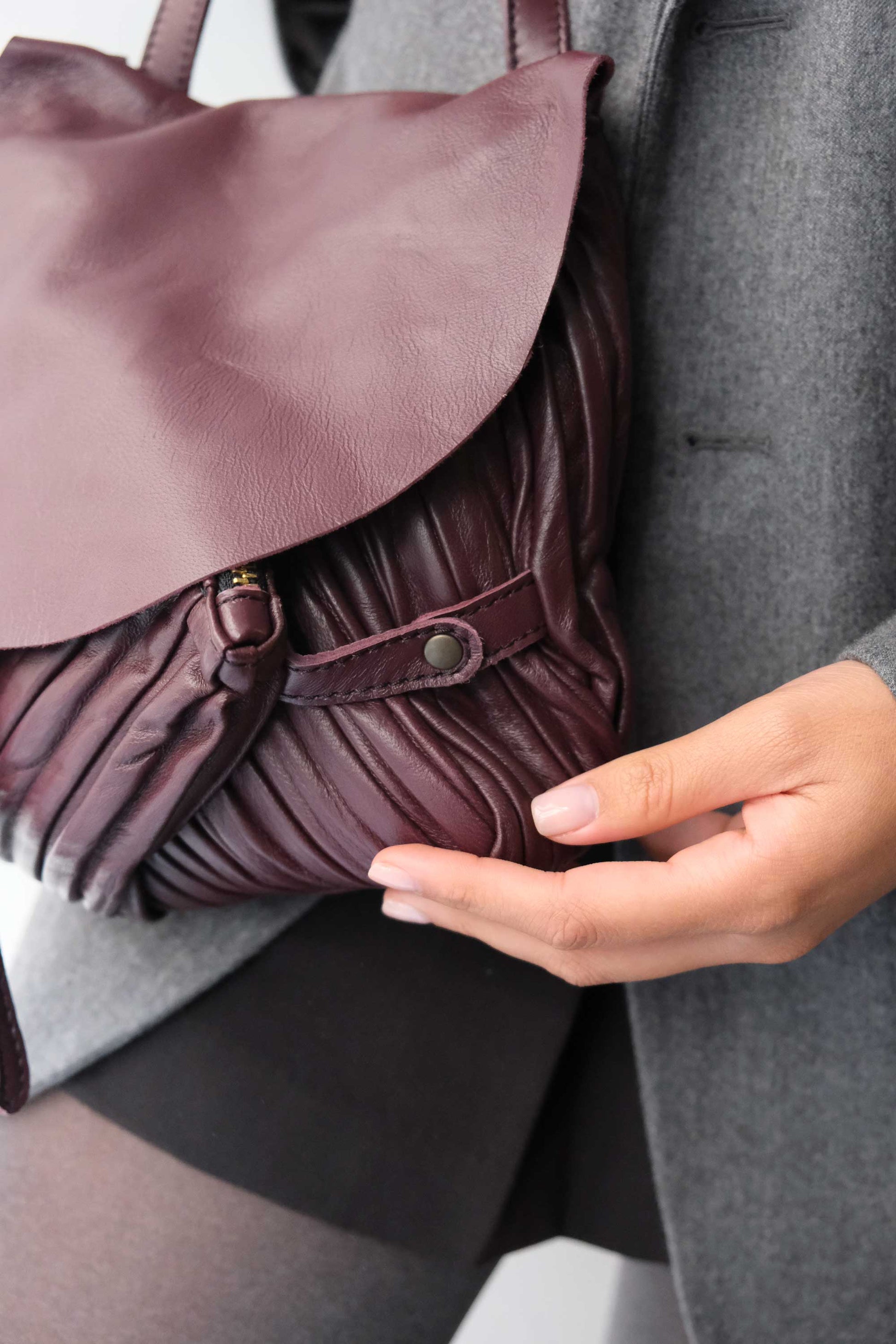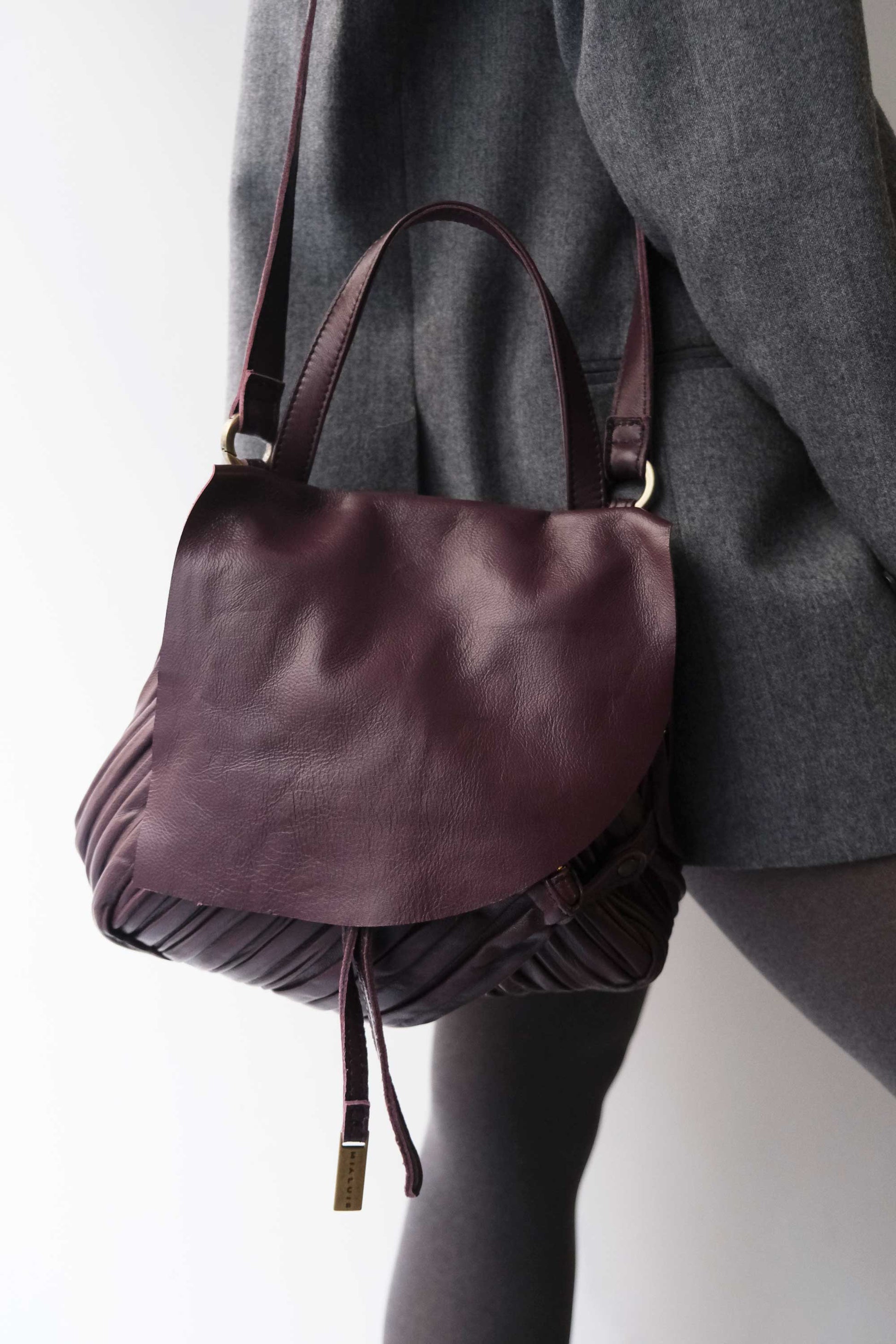 PRE ORDER discount 15%- Minu in pleated plum colour leather - use code PREORDER15 - DELIVERY IS ESTIMATED WITHIN APPROXIMATELY 30 DAYS FROM THE ORDER DATE- Made in Italy -
